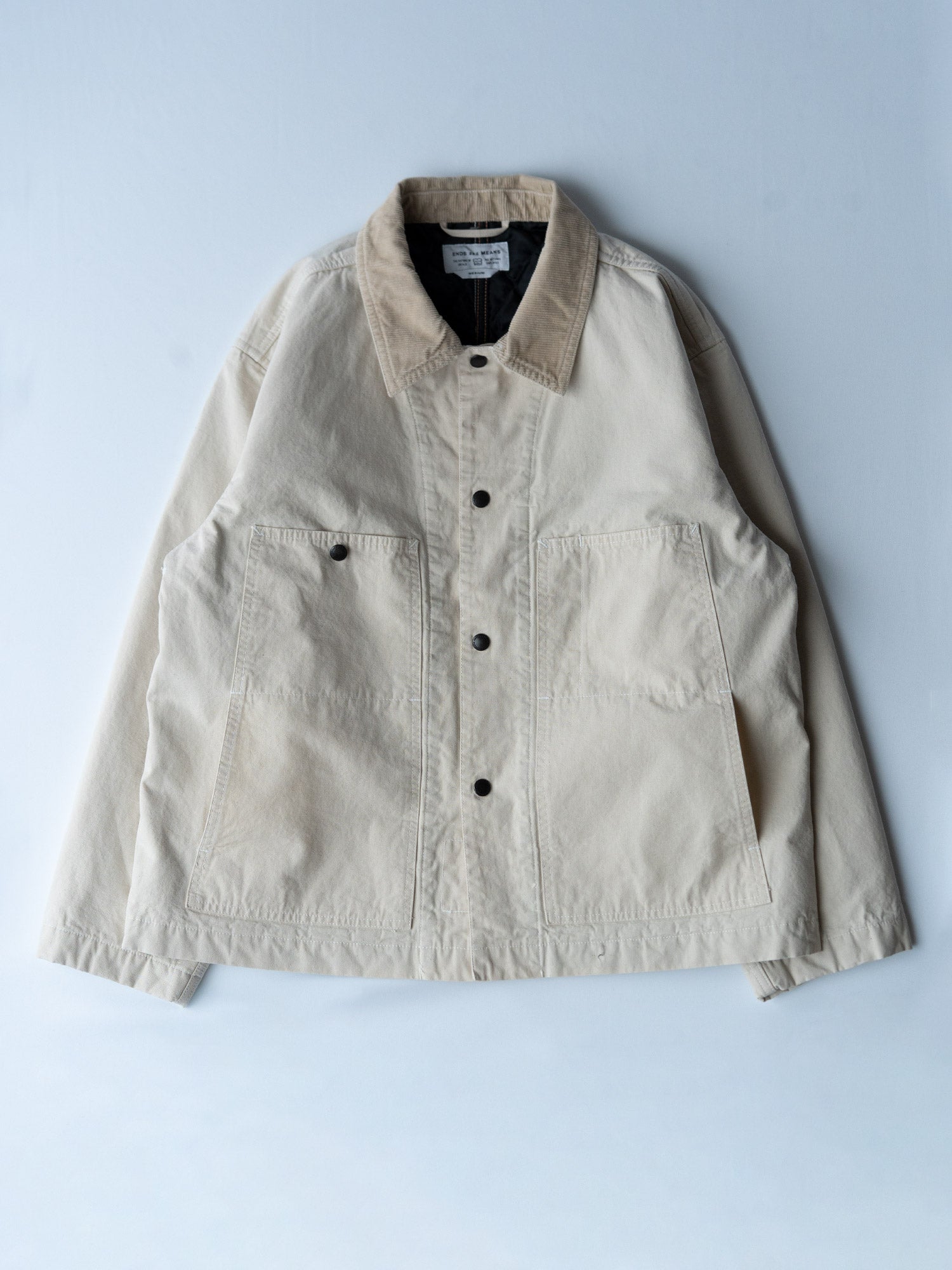 短めの着丈がバランス良く、小慣れた雰囲気を醸し出し、秋はロンTやスエット、真冬はセーターなどの上から羽織ったりと秋冬では1番使いやすいアイテムかもしれません。着込むほどに味が出るので、ボロボロになってもカッコ良いのがキャンバス地。
