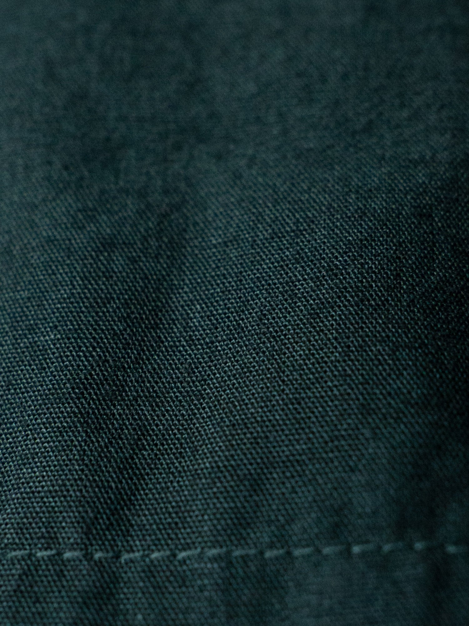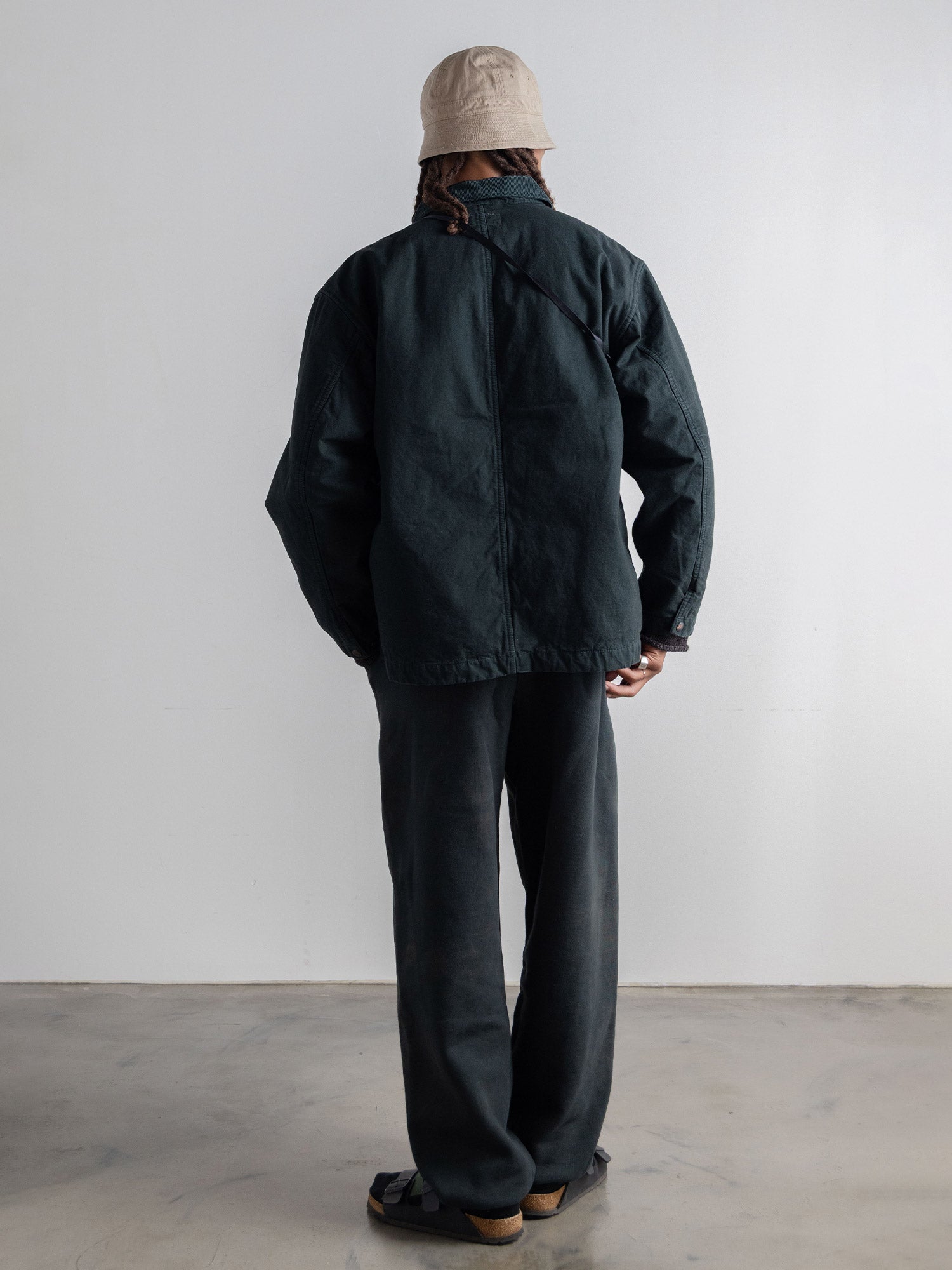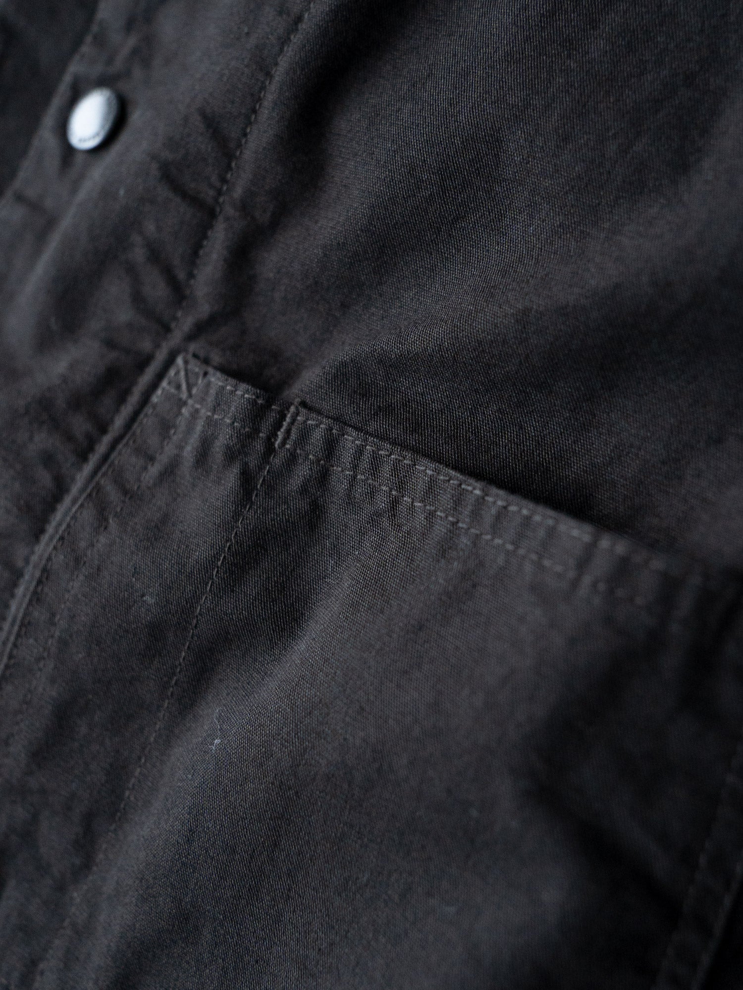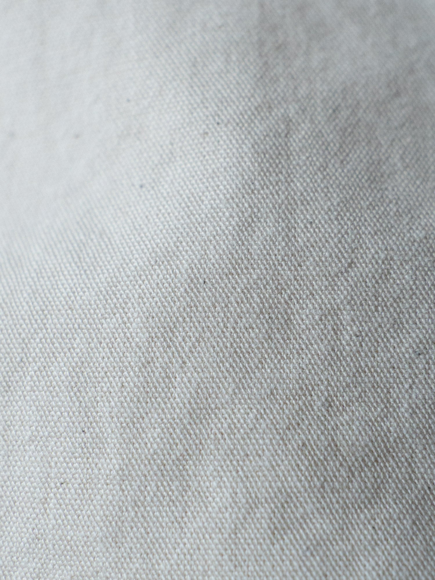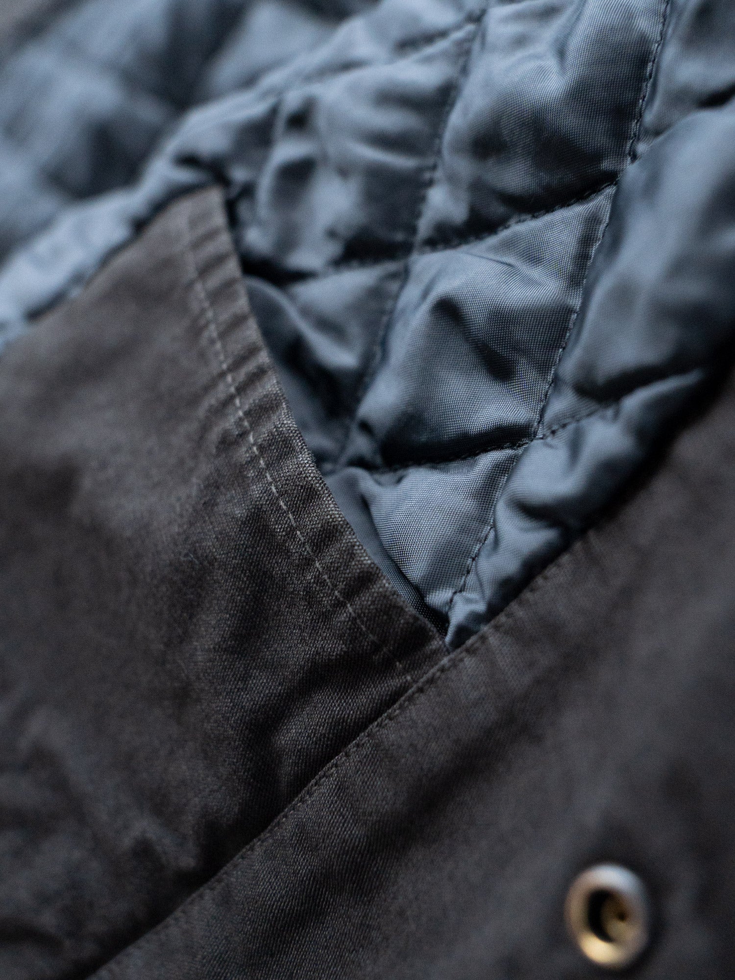 通常のキャンバス生地よりもしなやかで品がある強撚オーガニックコットン糸で折り上げたキャンバス生地を使用。襟はコーデュロイ生地。内側には程よい厚さのキルティングライニング。