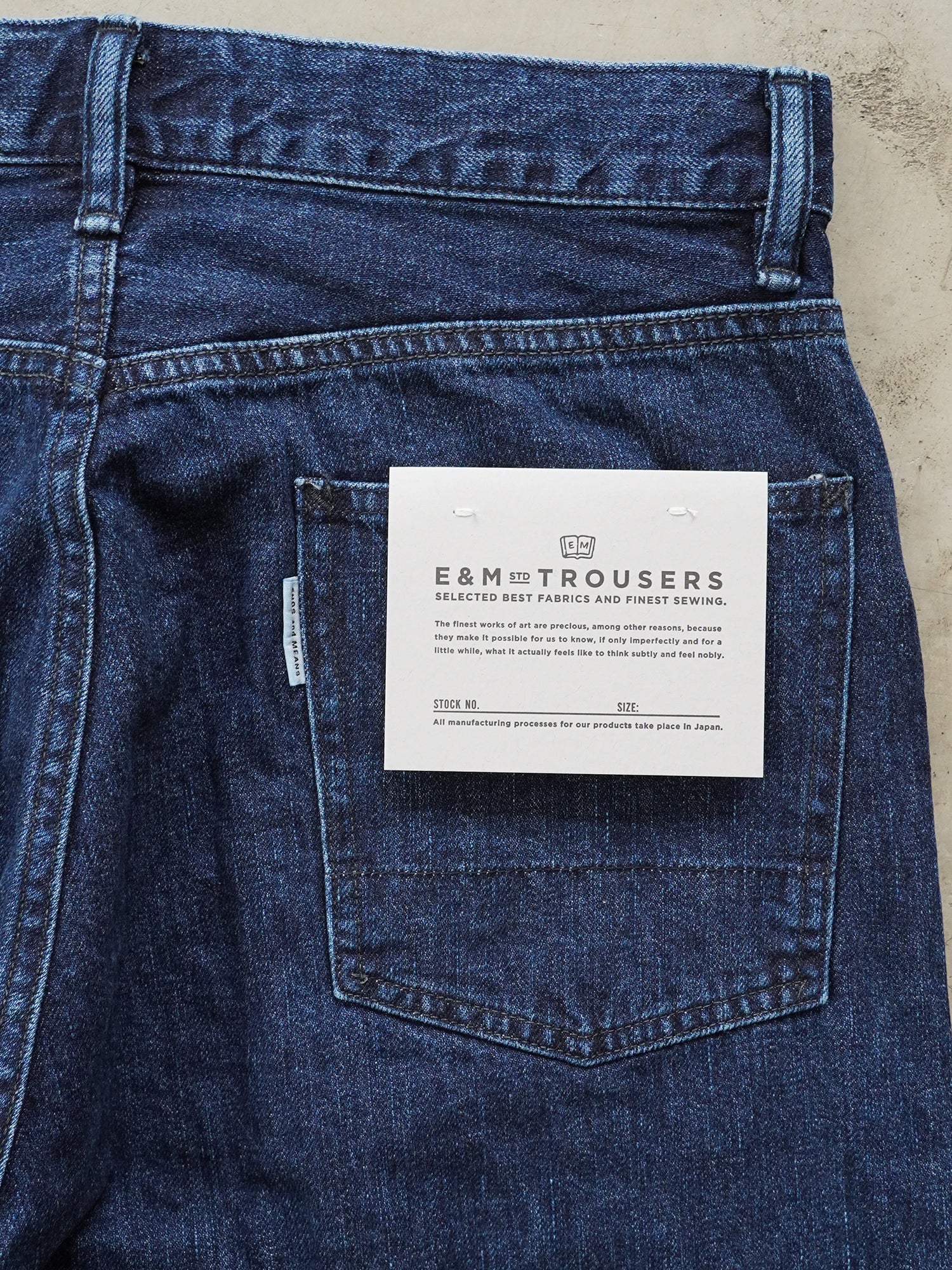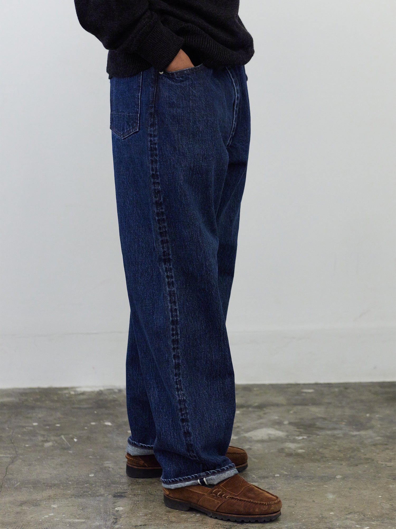 洗い加工をした定番デニム。エイジド加工ではなく全体的に色を落としたものとなります。バイオウォッシュをかけることにより生地が柔らかくなり、履き始めから馴染むのでより形の良さを実感して頂けます。