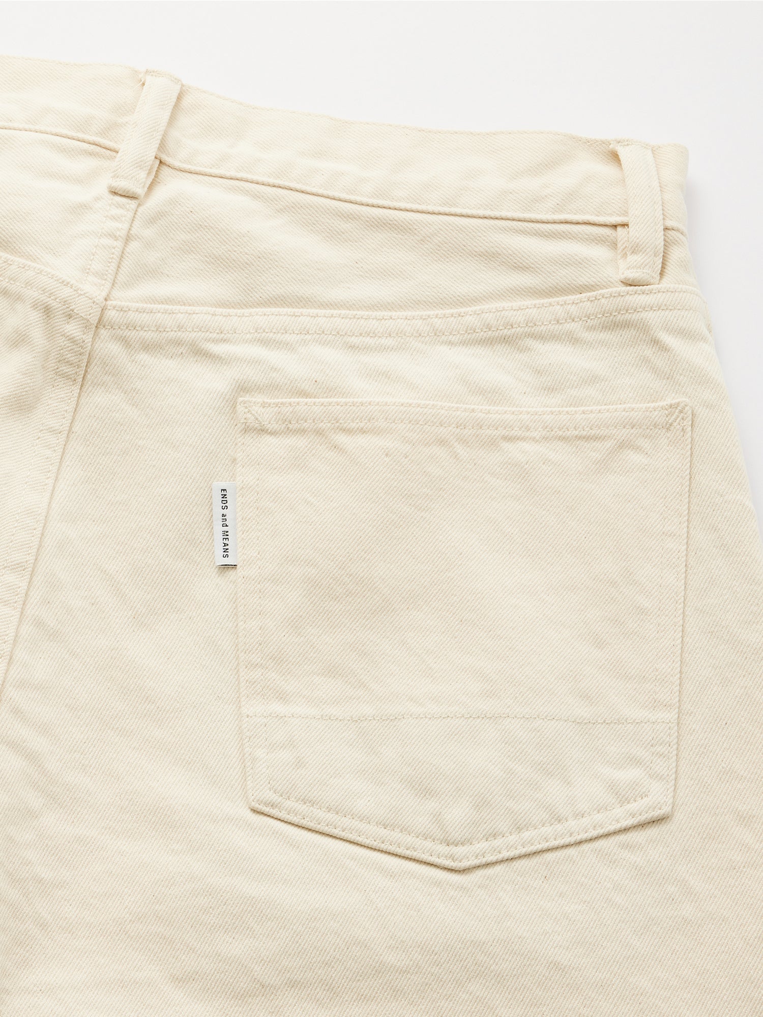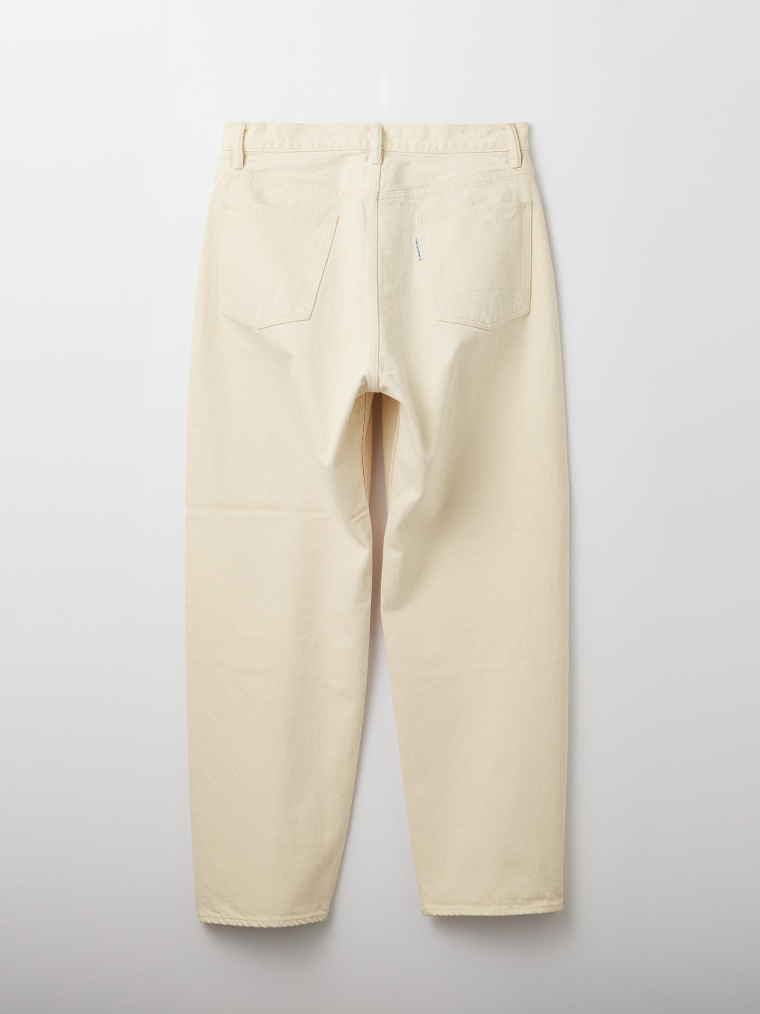 Genuine denim using 13.5oz selvedge denim. Bio-washed to make the fabric soft and easy to wear. It will be the original shape created by fine-tuning the pattern many times. It will be a modern denim that follows the details from the vintage and is subtracted as simply as possible. A versatile denim that is easy to match with both leather shoes and sneakers.