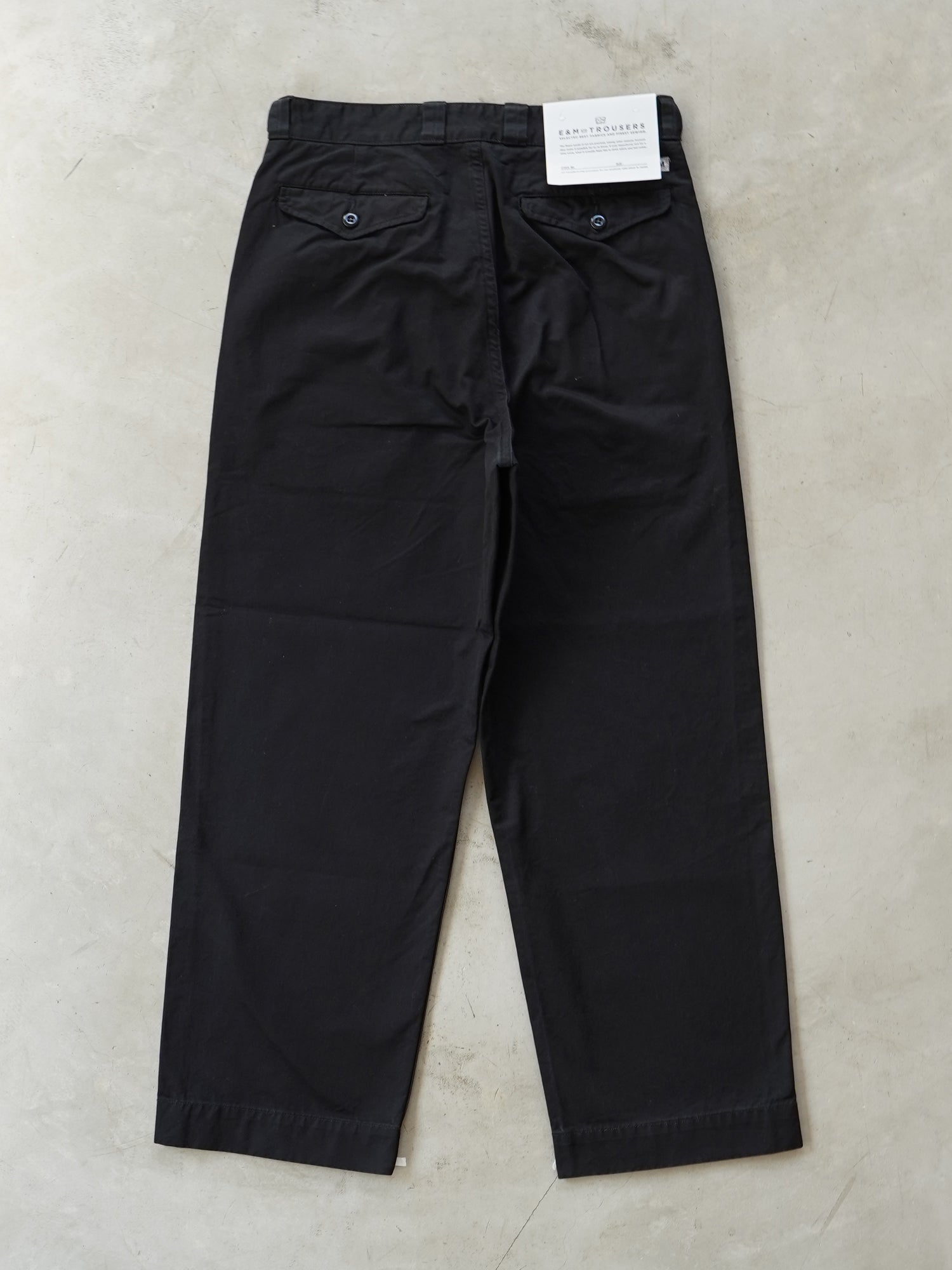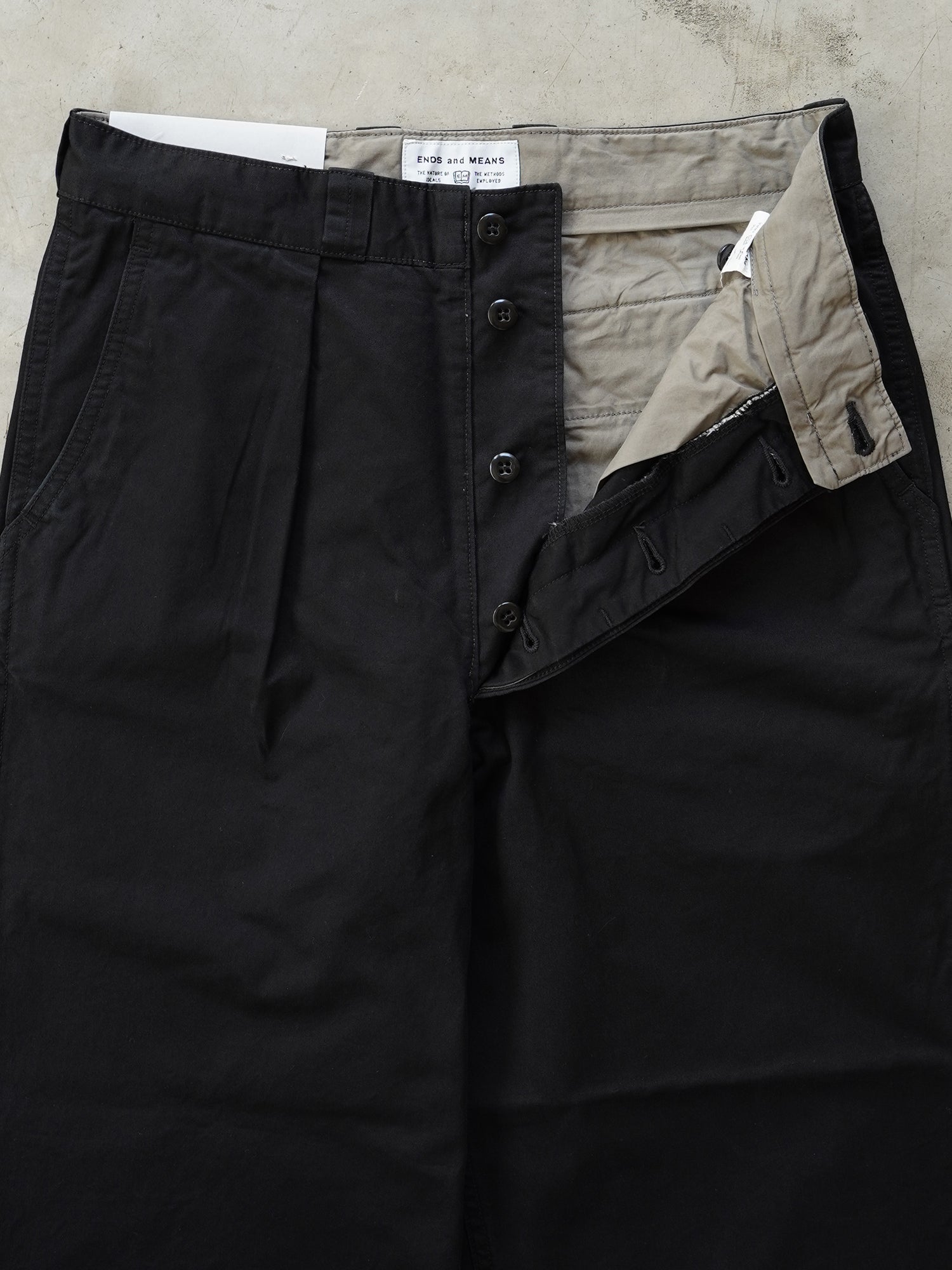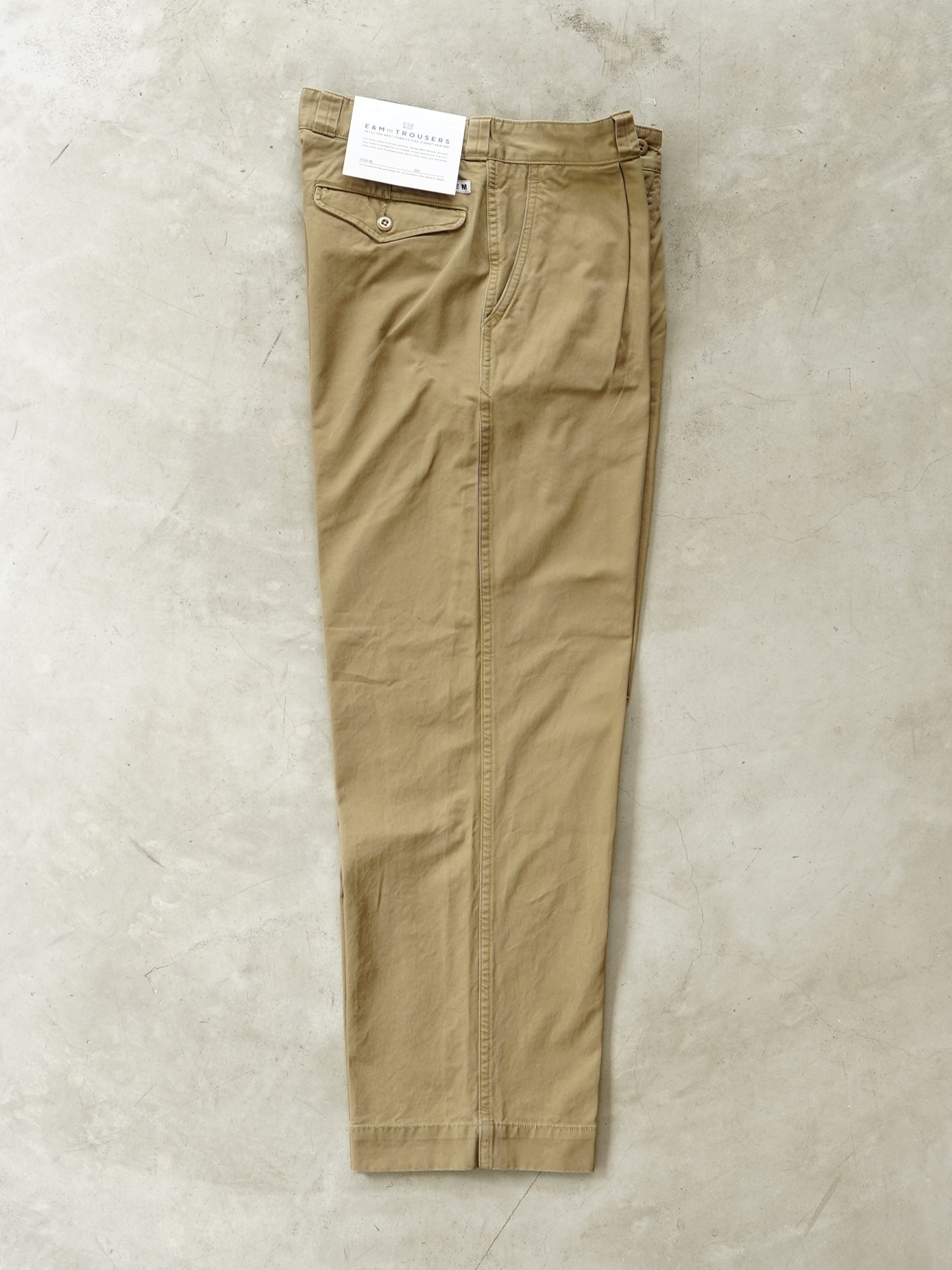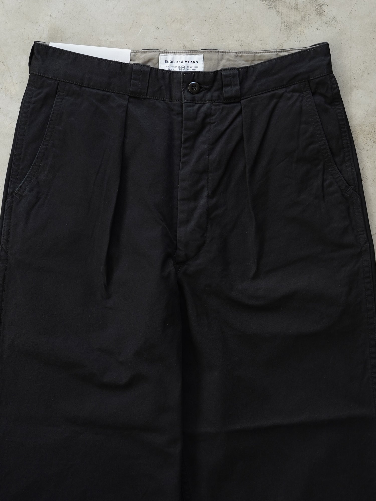 摩擦や裂けに非常に強いチノツイルを使用 。ほど良くコシがありながらもしなやかで柔らかい生地は履きこむほどに馴染み良い表情変化していきます。シルエットは少しワイドめなストレートタイプ。ワンタック仕様。