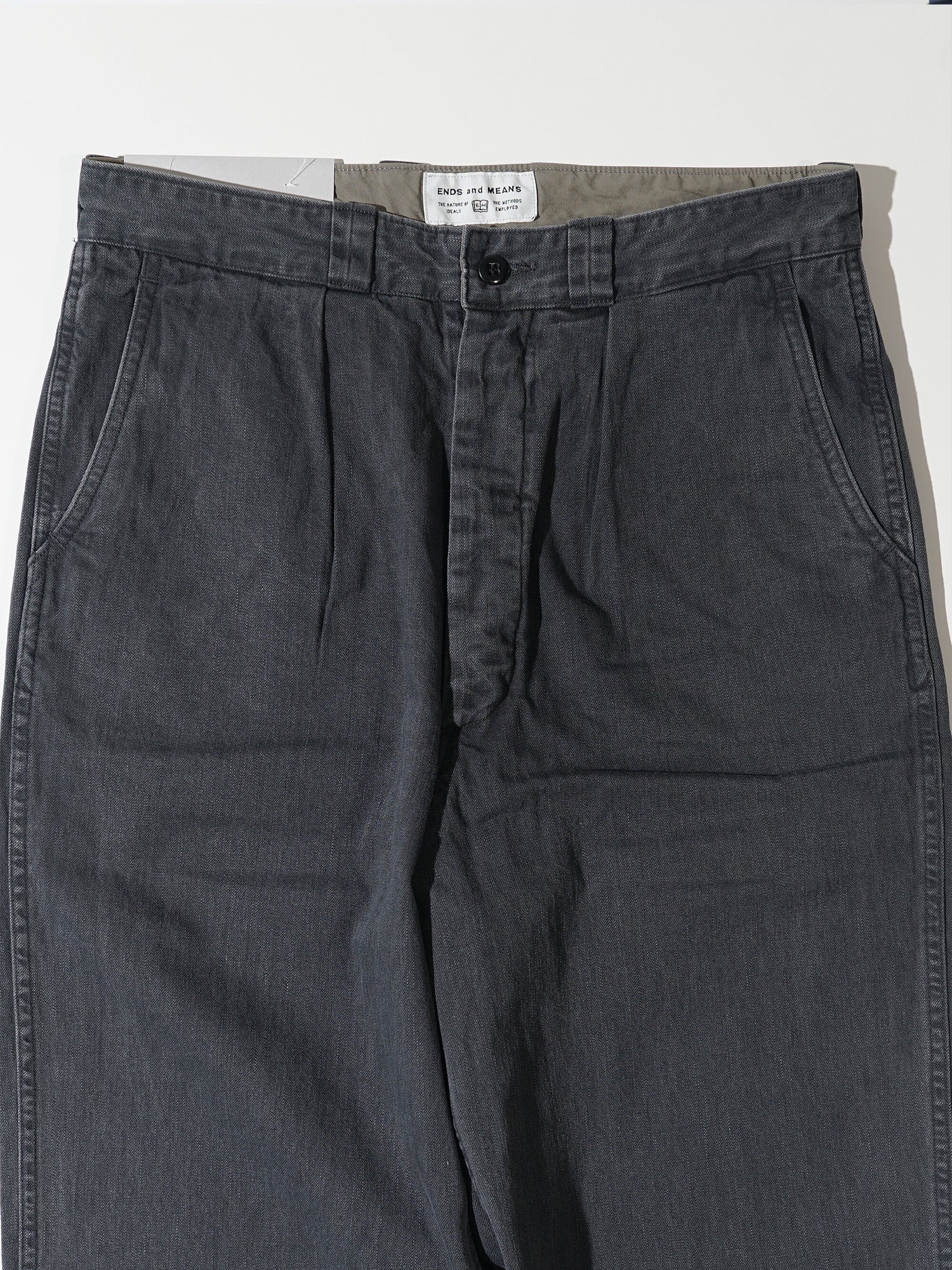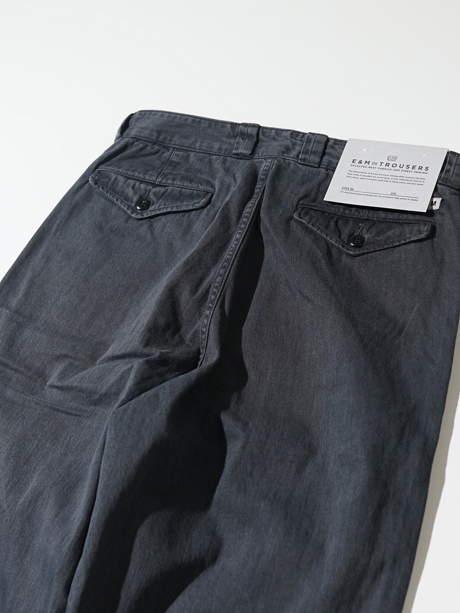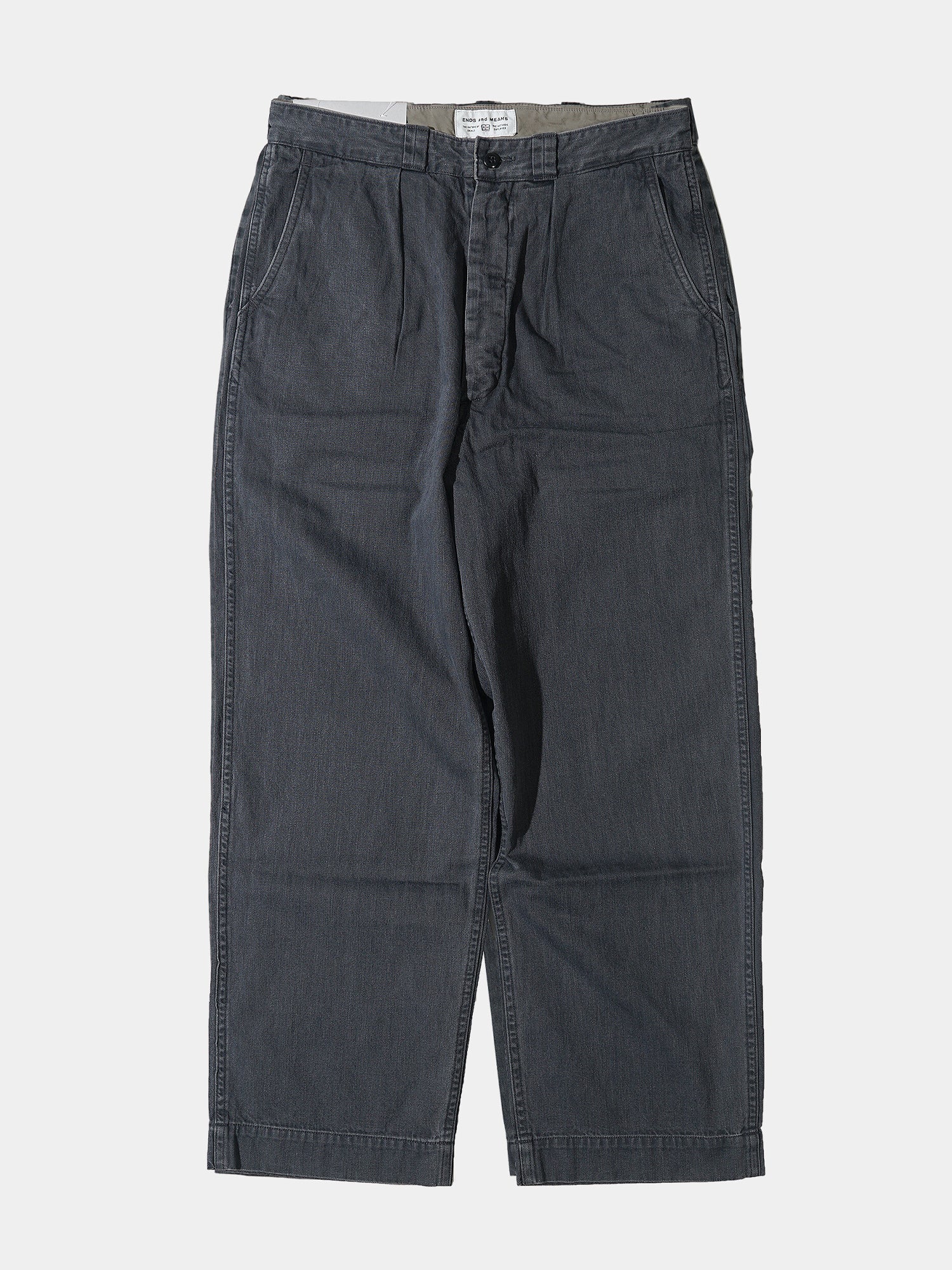 摩擦や裂けに非常に強いチノツイルを使用 。ほど良くコシがありながらもしなやかで柔らかい生地は履きこむほどに馴染み良い表情変化していきます。シルエットは少しワイドめなストレートタイプ。ワンタック仕様。