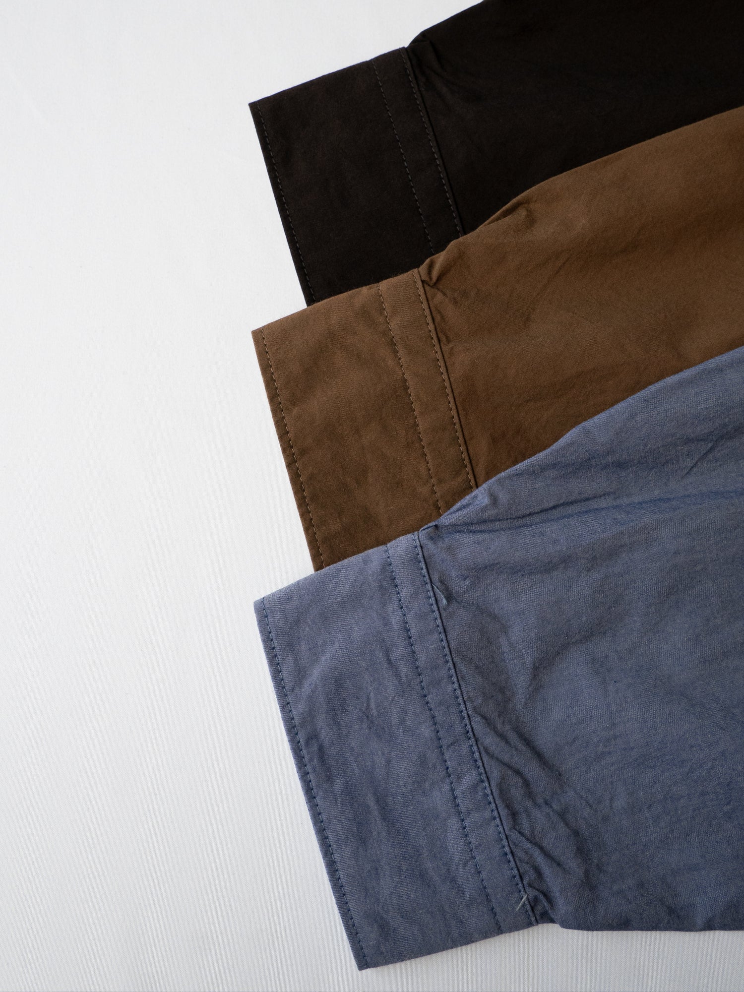 今季は見る角度で表情の変わるシャンブレータイプライター生地を使用したWindy Blue、Pecan Brown、Dark Chocolateの3色展開。