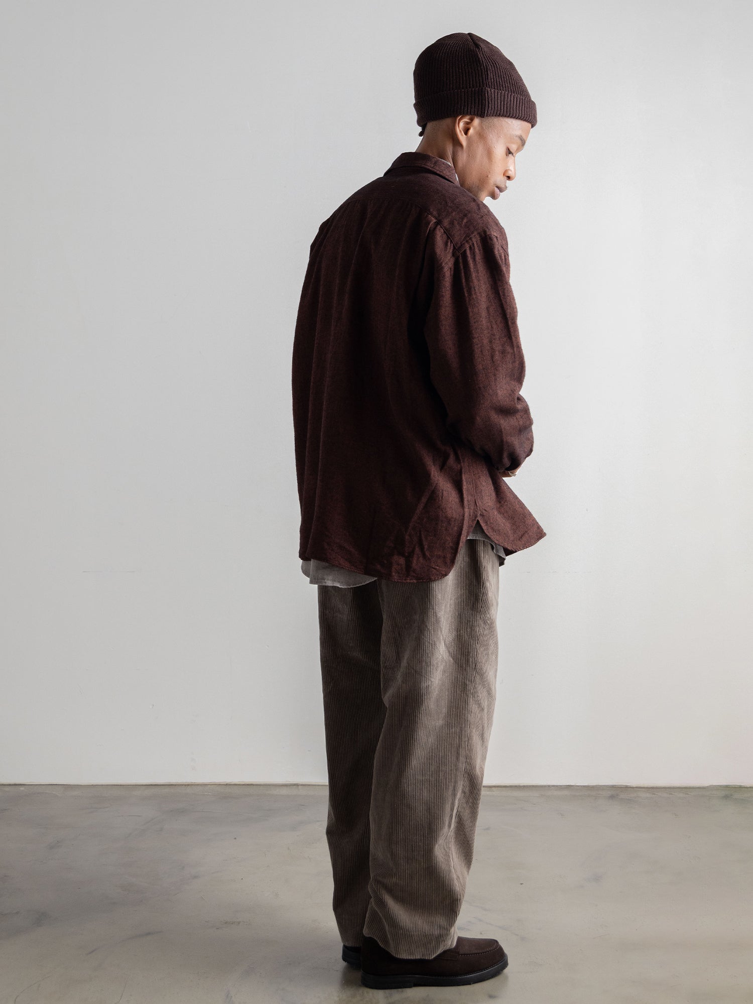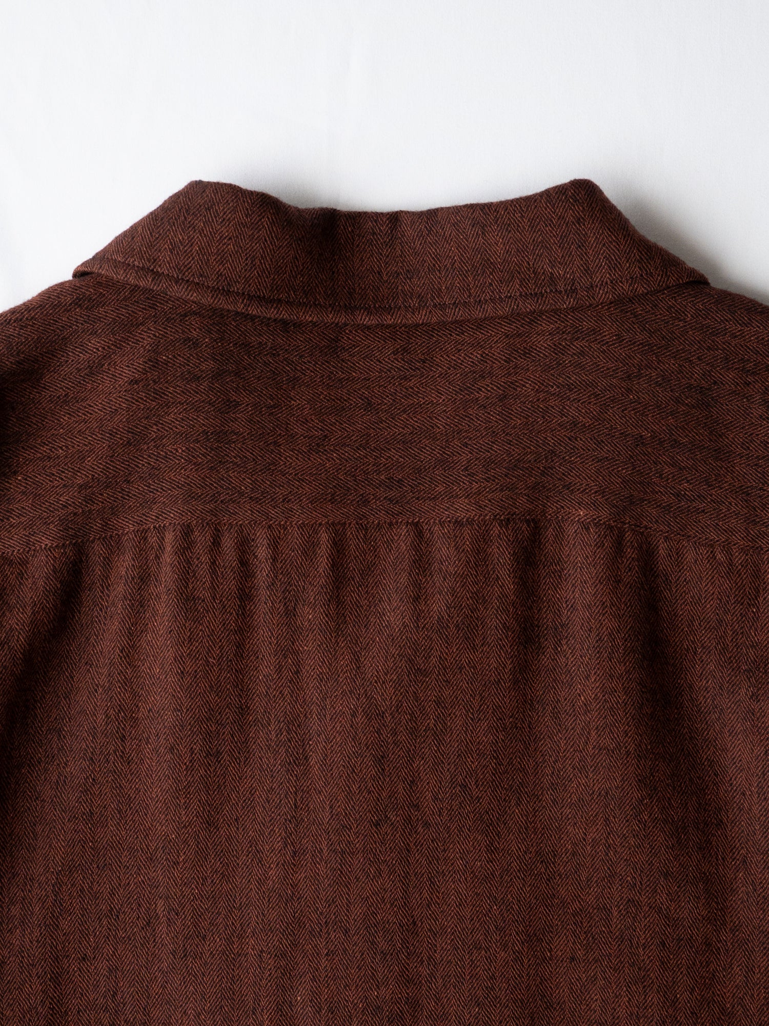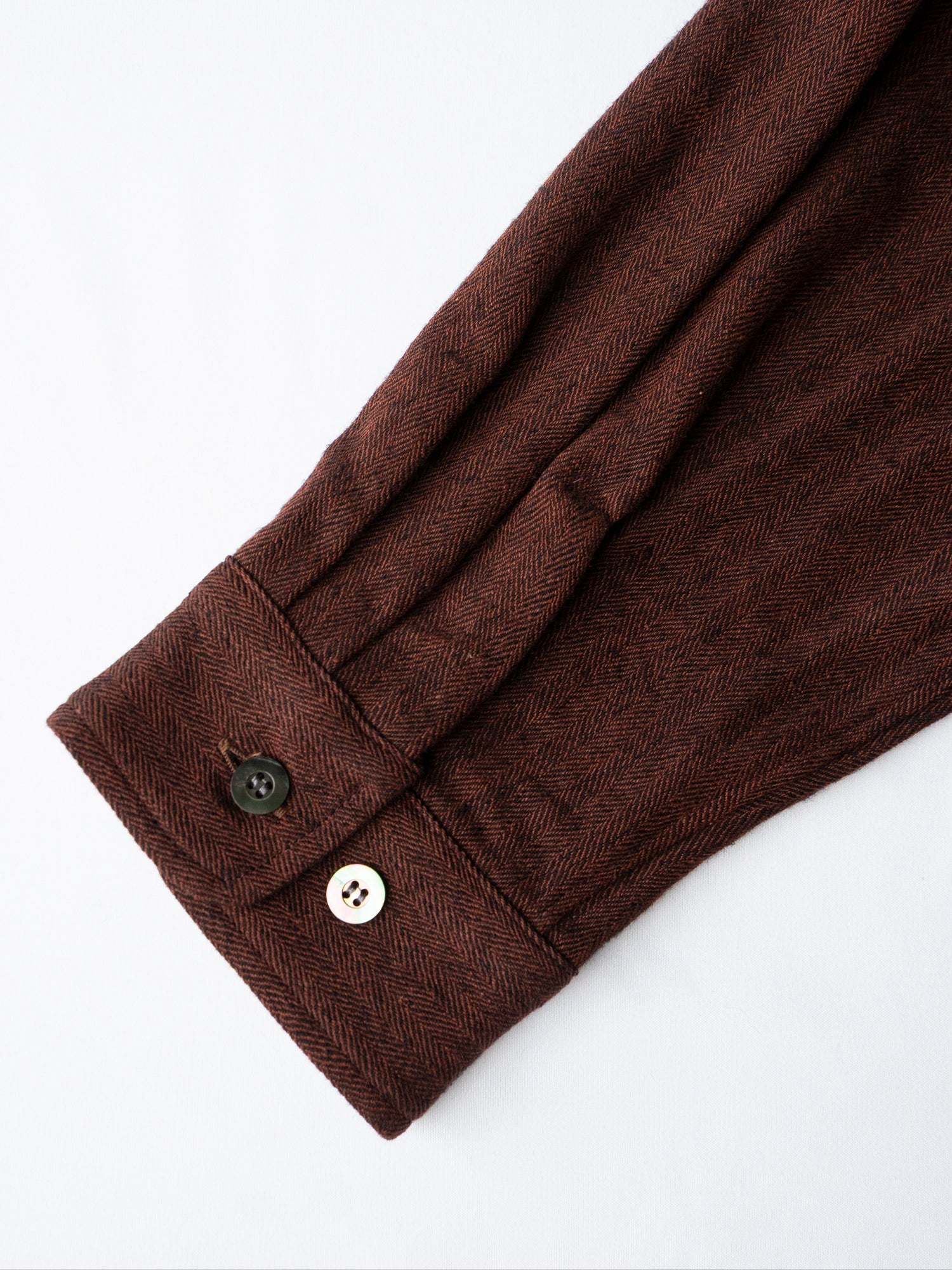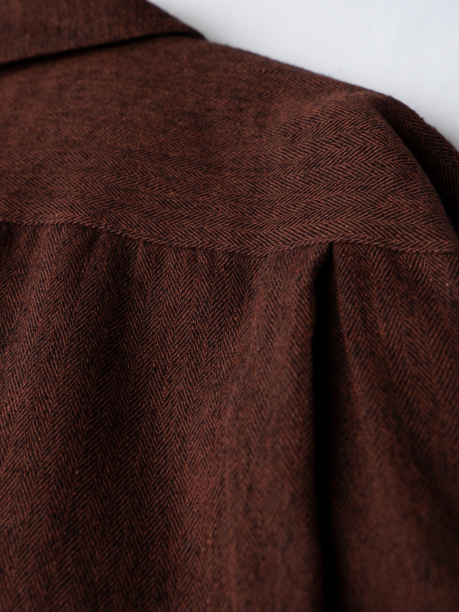 ヘリンボーン織りのウールリネンコットンを使用したシンプルで上品な雰囲気のCarlo Shirts。