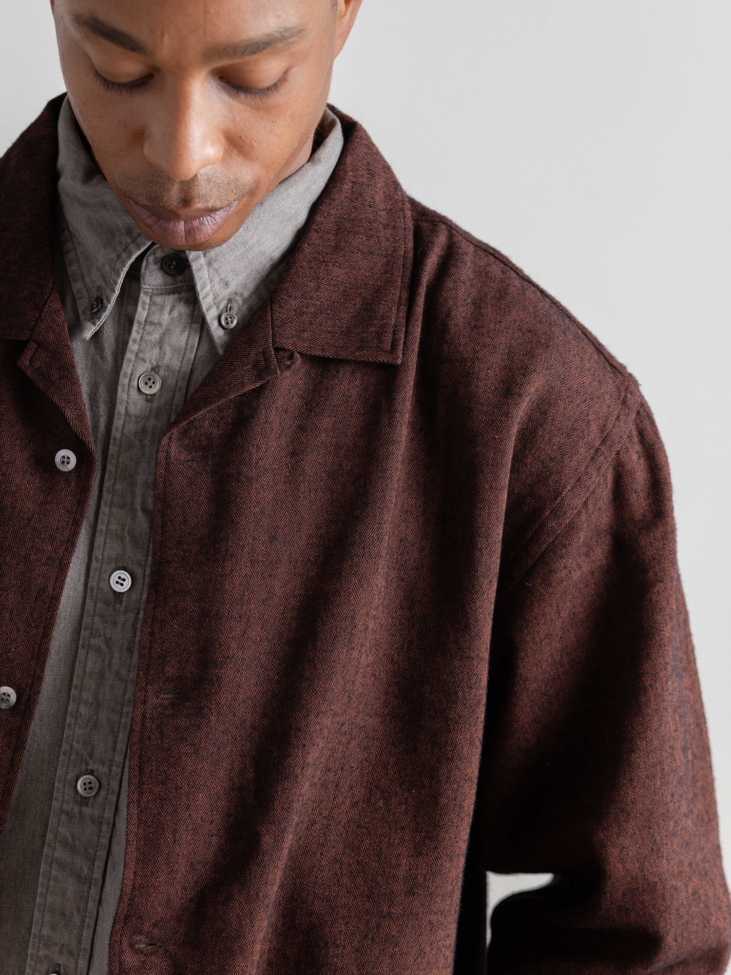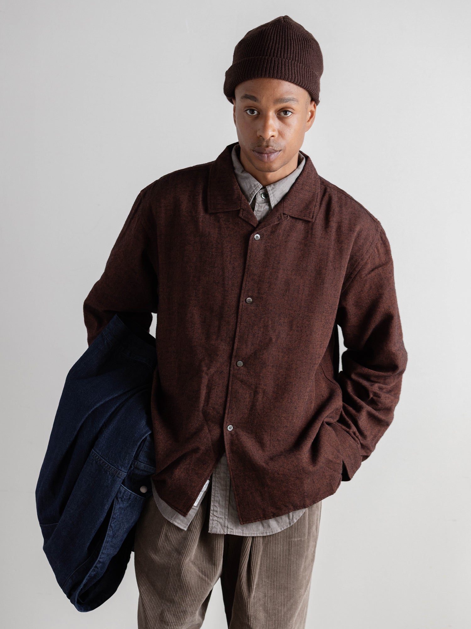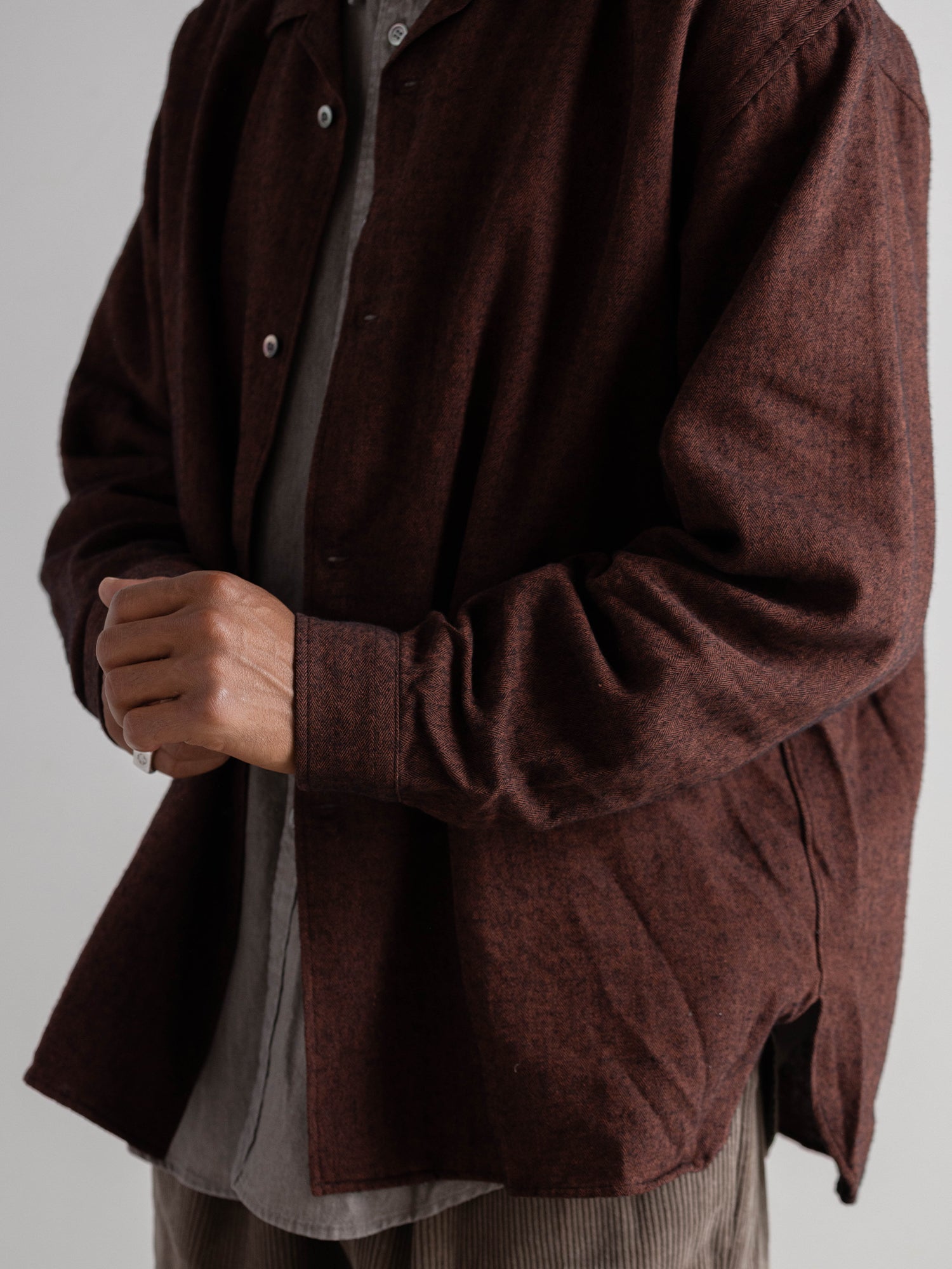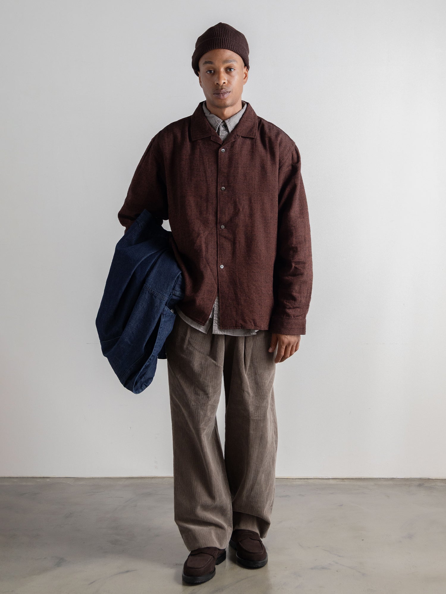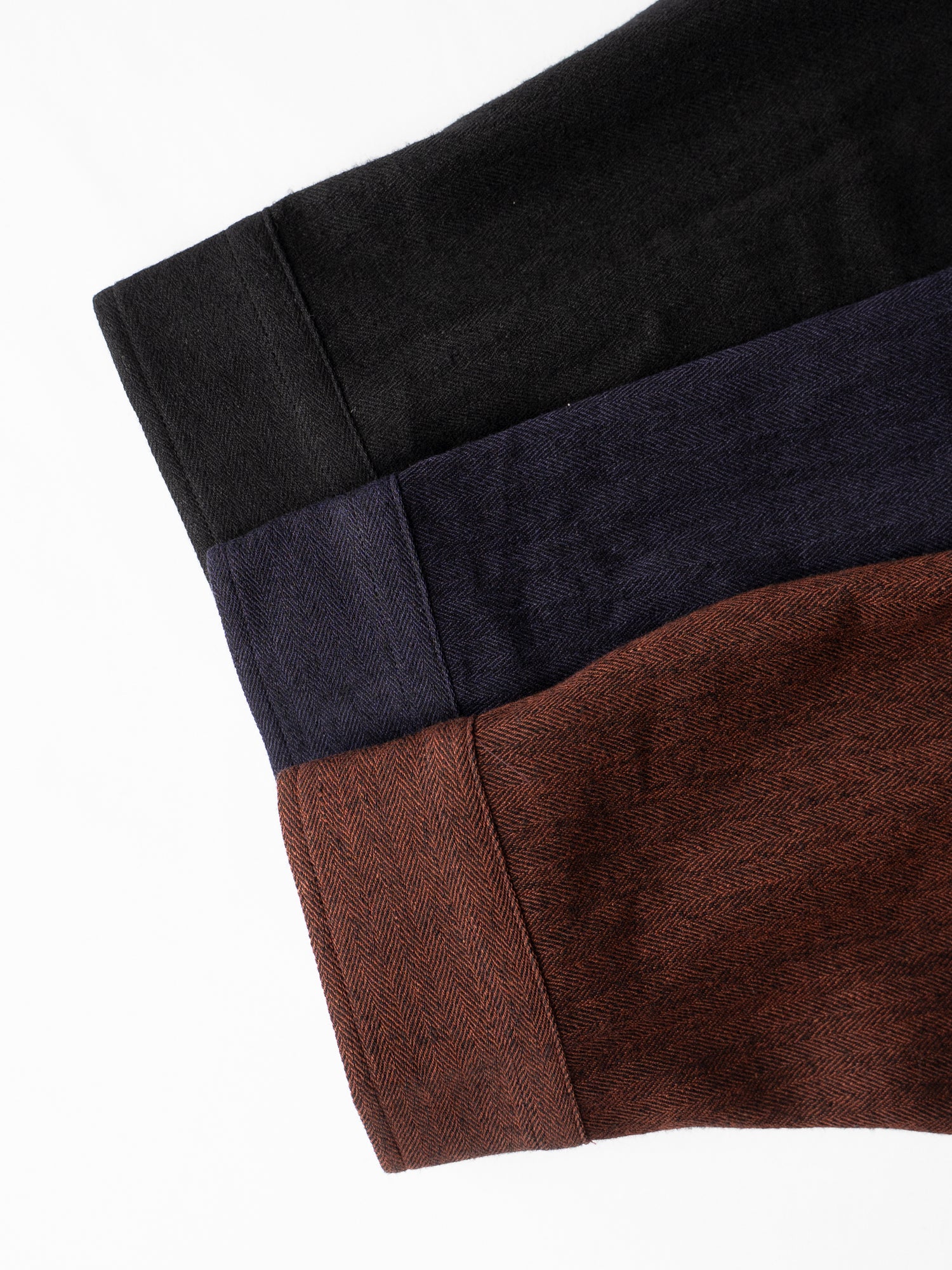 ヘリンボーン織りのウールリネンコットンを使用したシンプルで上品な雰囲気のCarlo Shirts。