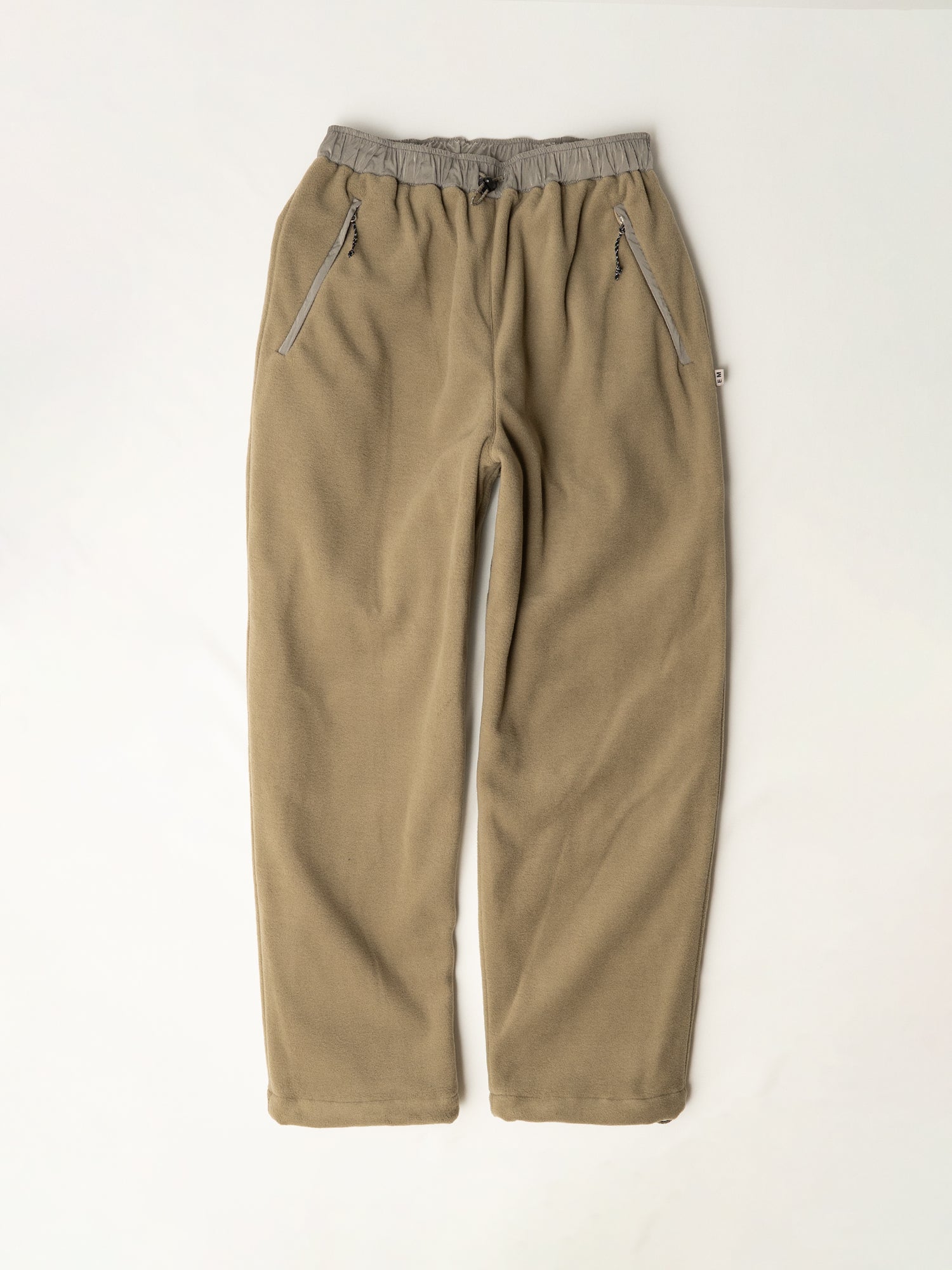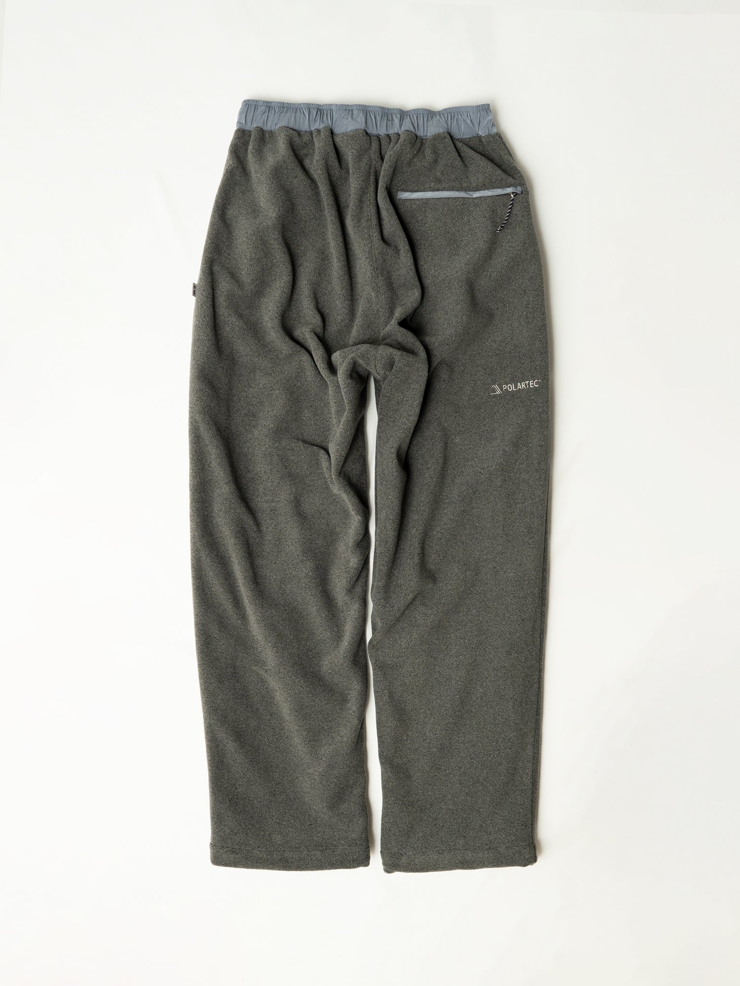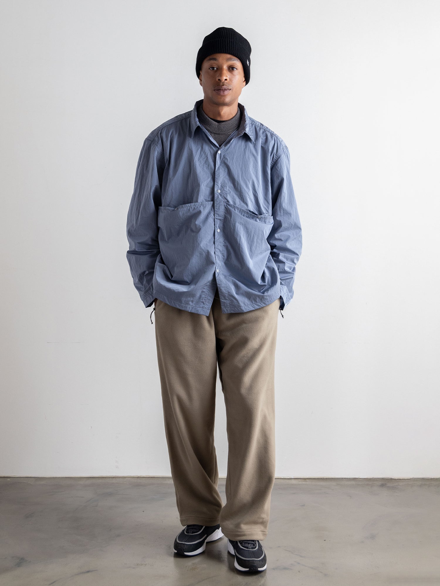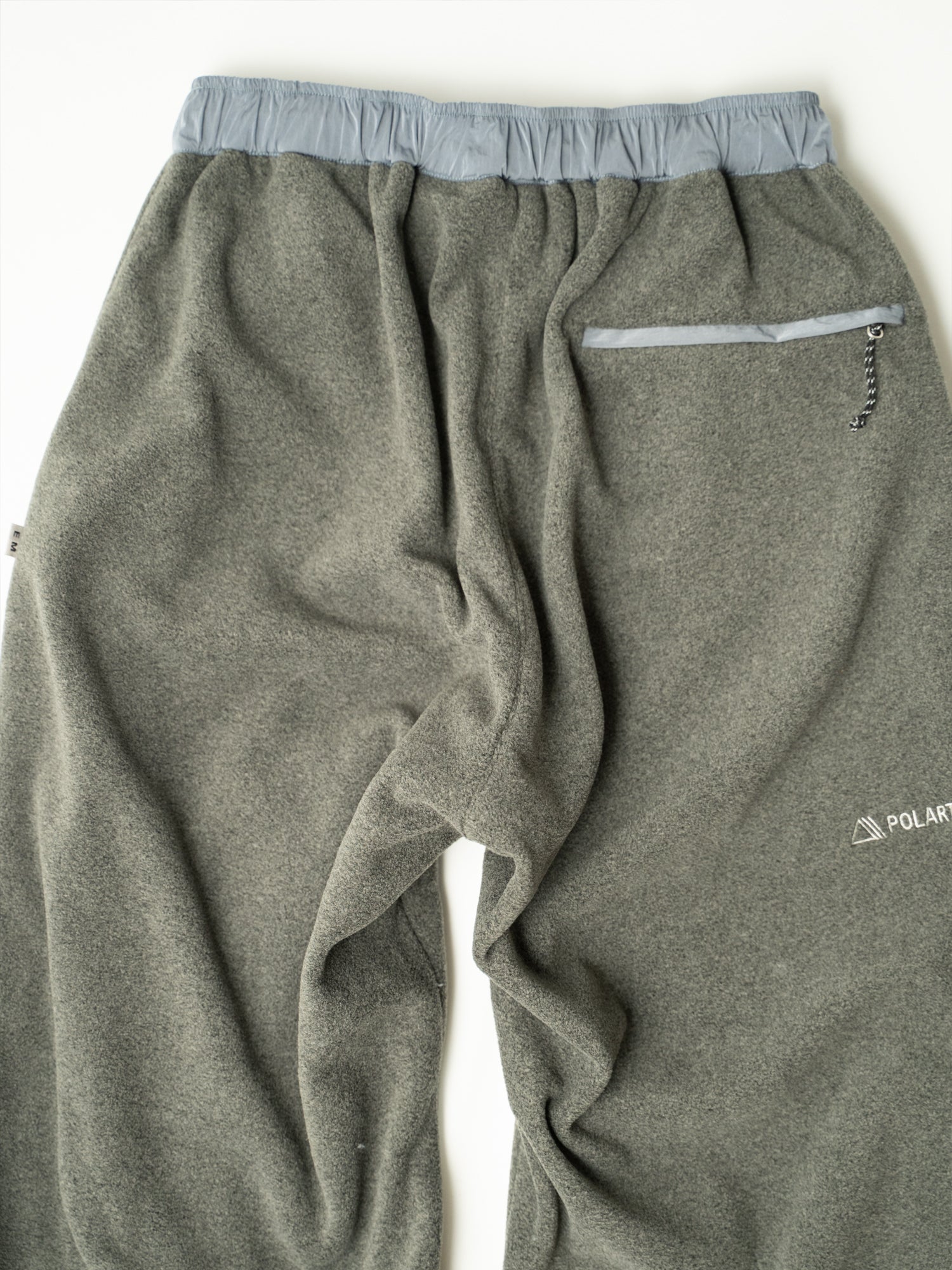 Reversible P/O Vestと同素材のPolartec®︎のフリースと縦糸に黒原着糸を使った上品な光沢があるナイロン生地を使用。裏地は総裏ポリエステルメッシュ。ウエストと裾はドローコードで調整可能。