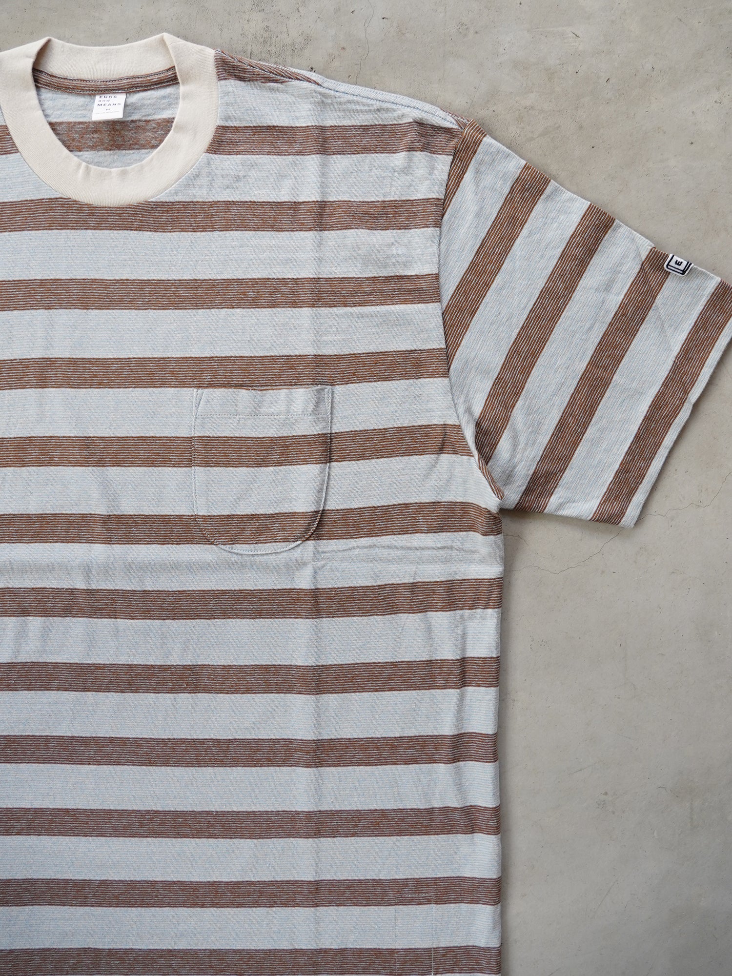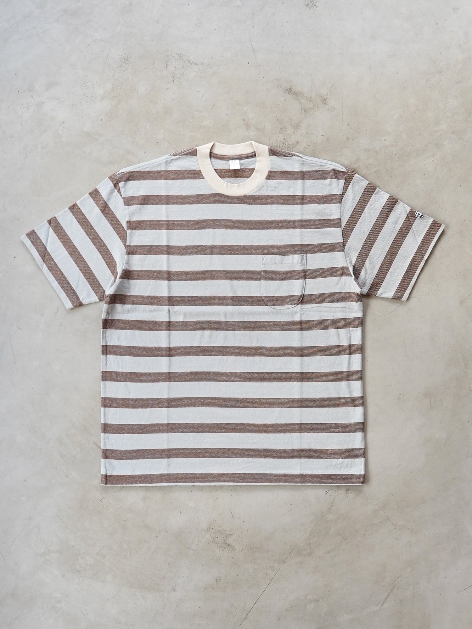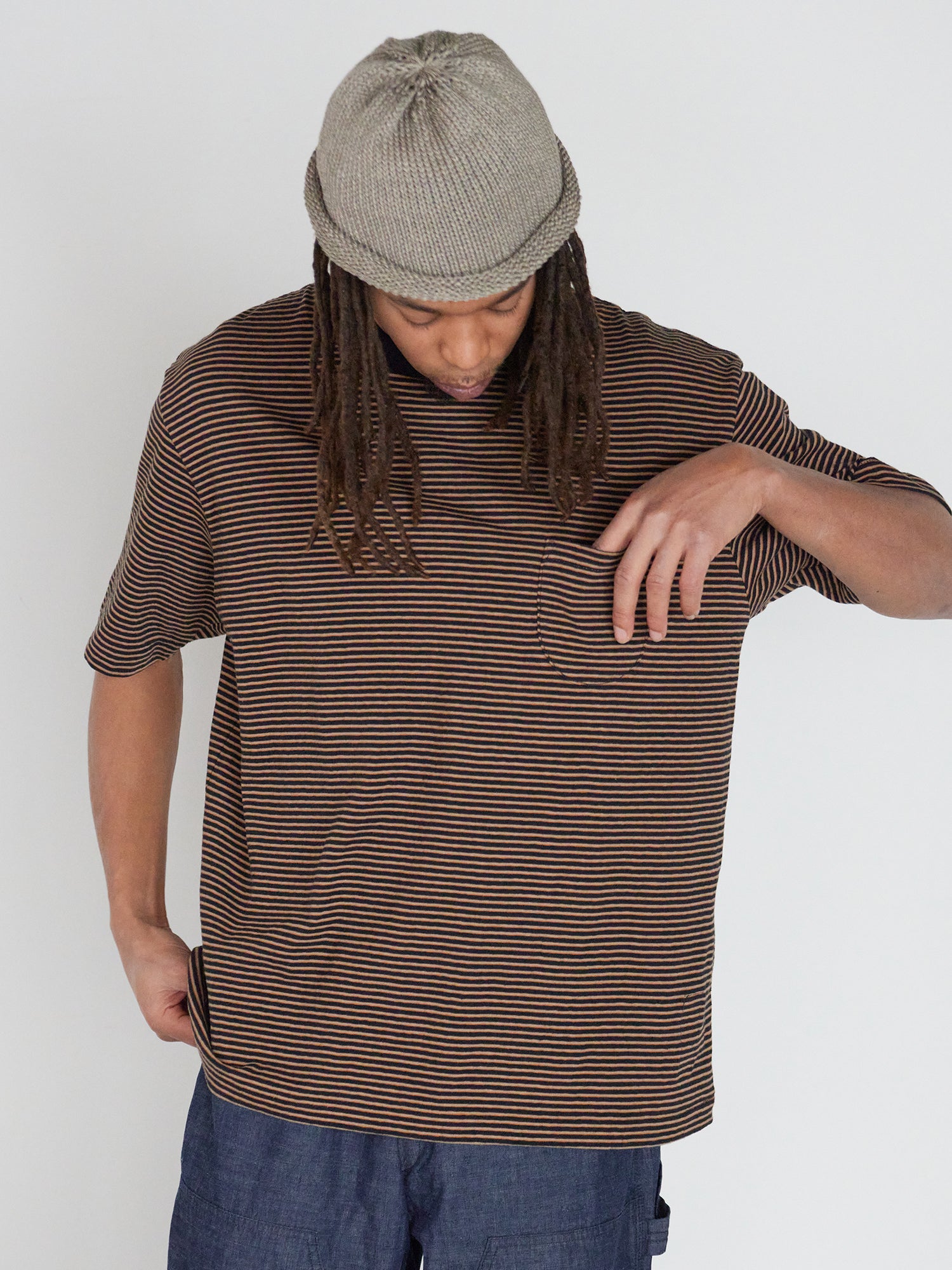定番のポケットS/S tee。オリジナルで編みたてたボーダー柄の天竺を使用。
