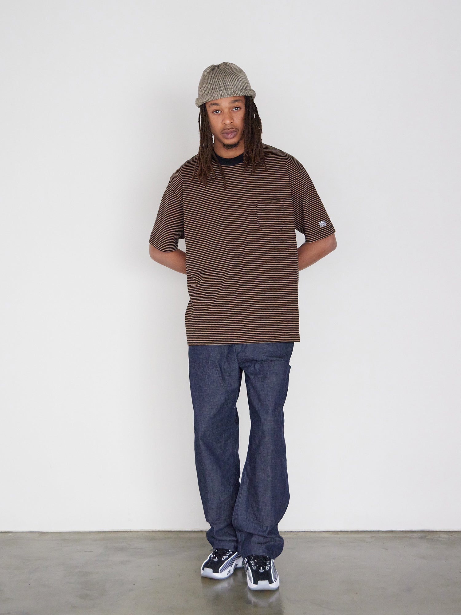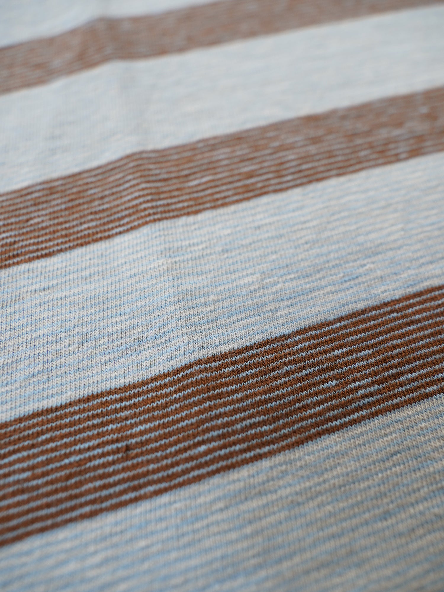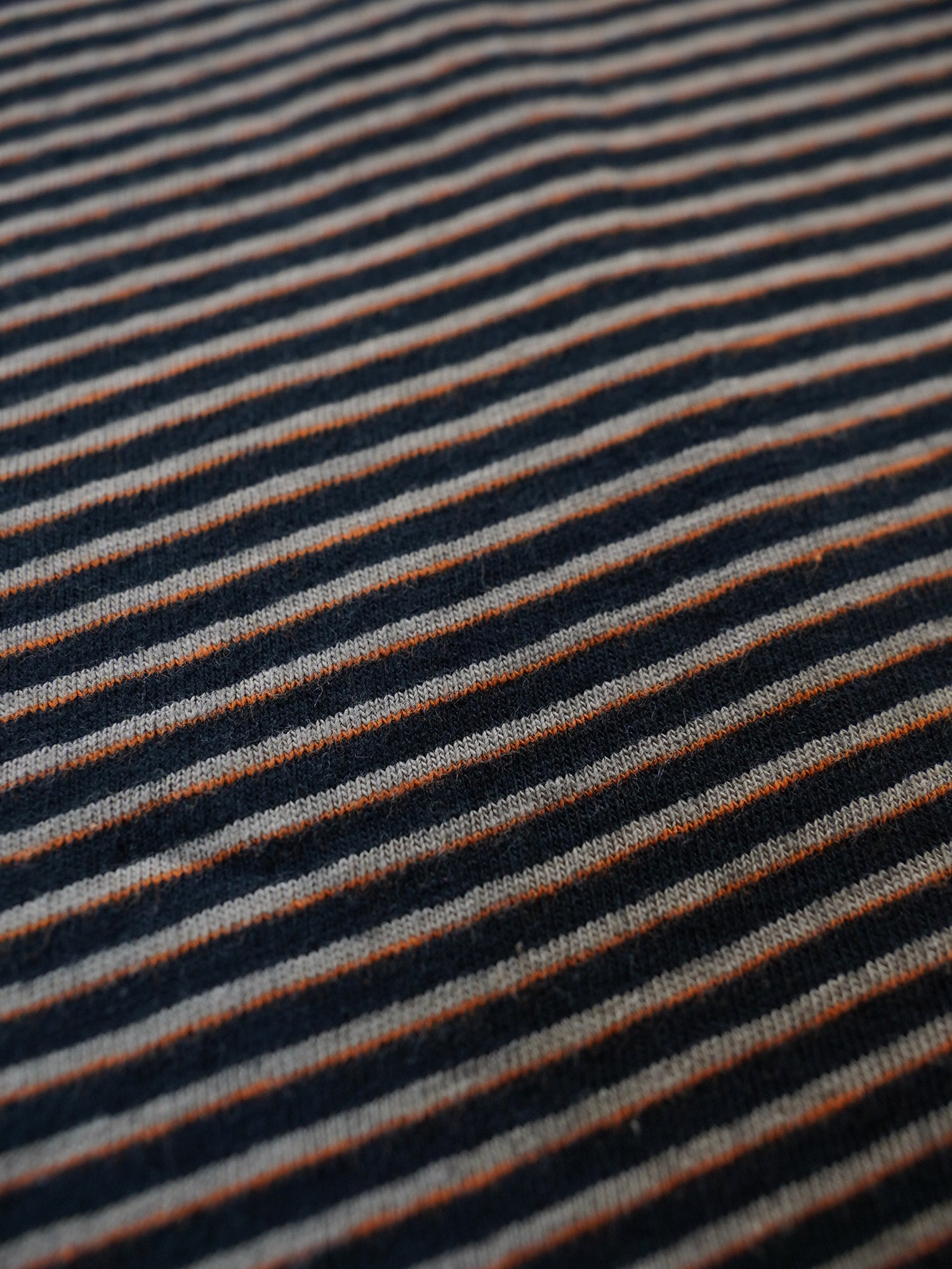 定番のポケットS/S tee。オリジナルで編みたてたボーダー柄の天竺を使用。