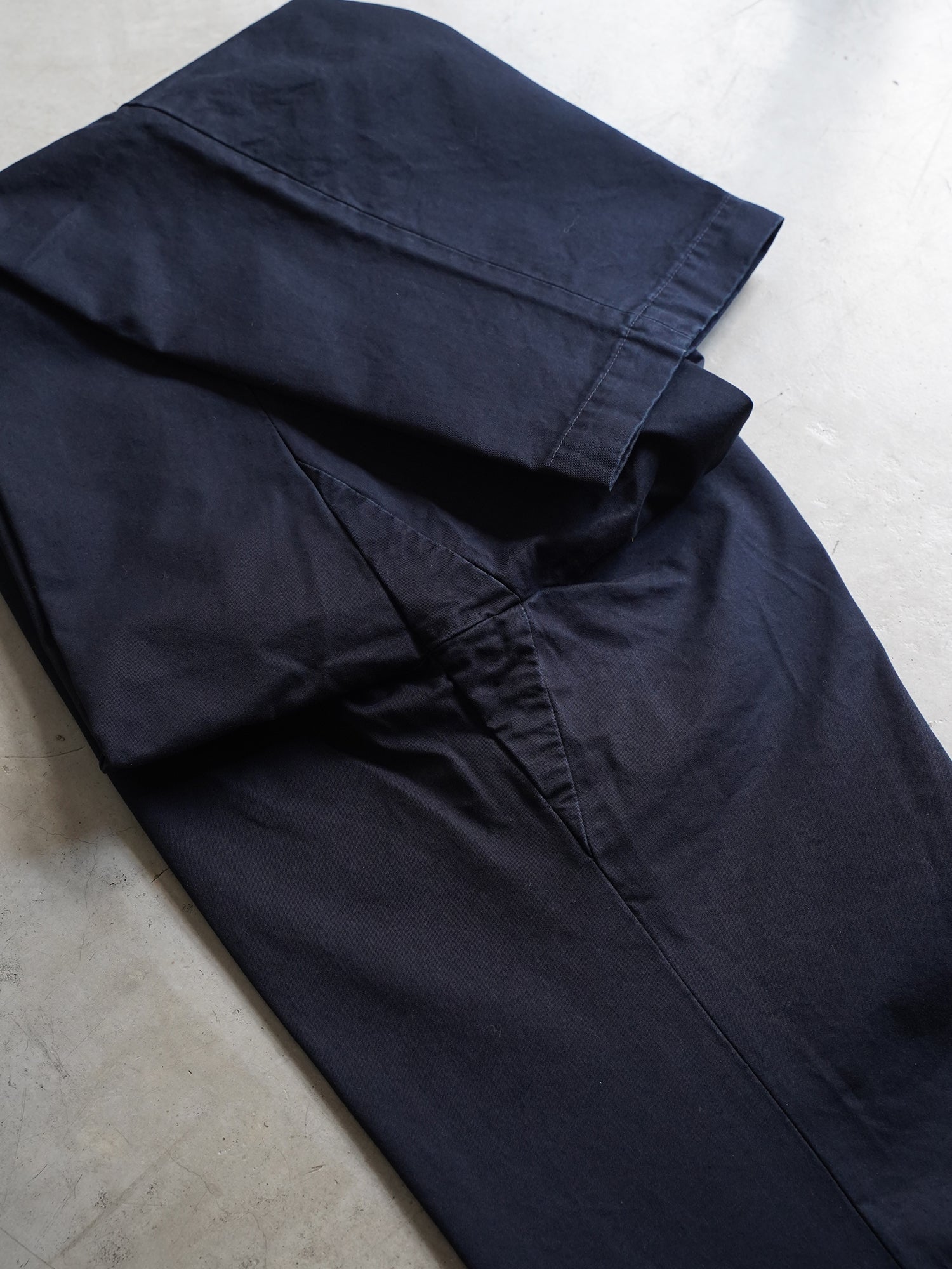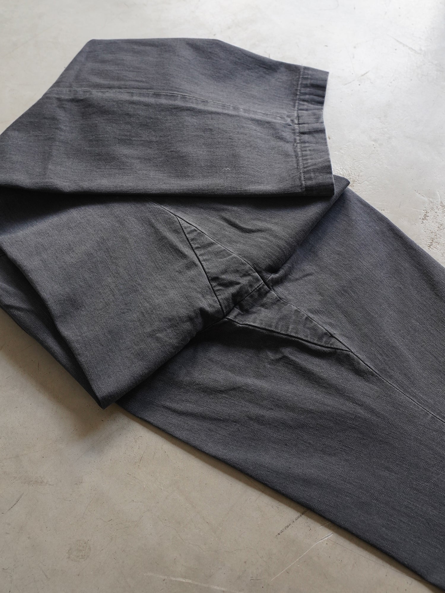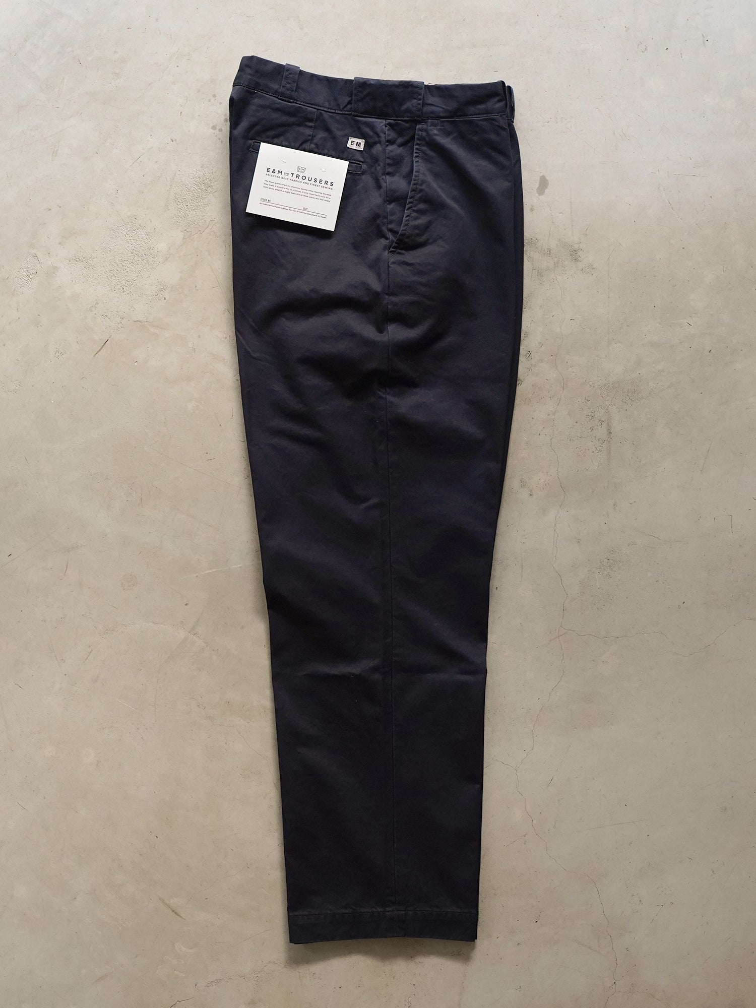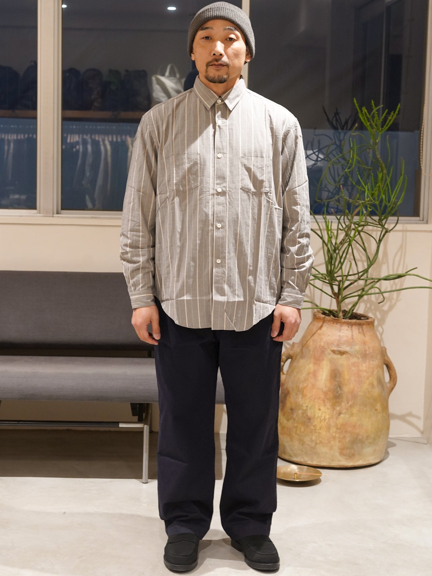 摩擦や裂けに非常に強いチノツイルを使用 。ほど良くコシがありながらもしなやかで柔らかい生地は履きこむほどに馴染み良い表情変化していきます。シルエットはEMの中で1番スタンダードな誰にでも履きやすいタイプ。