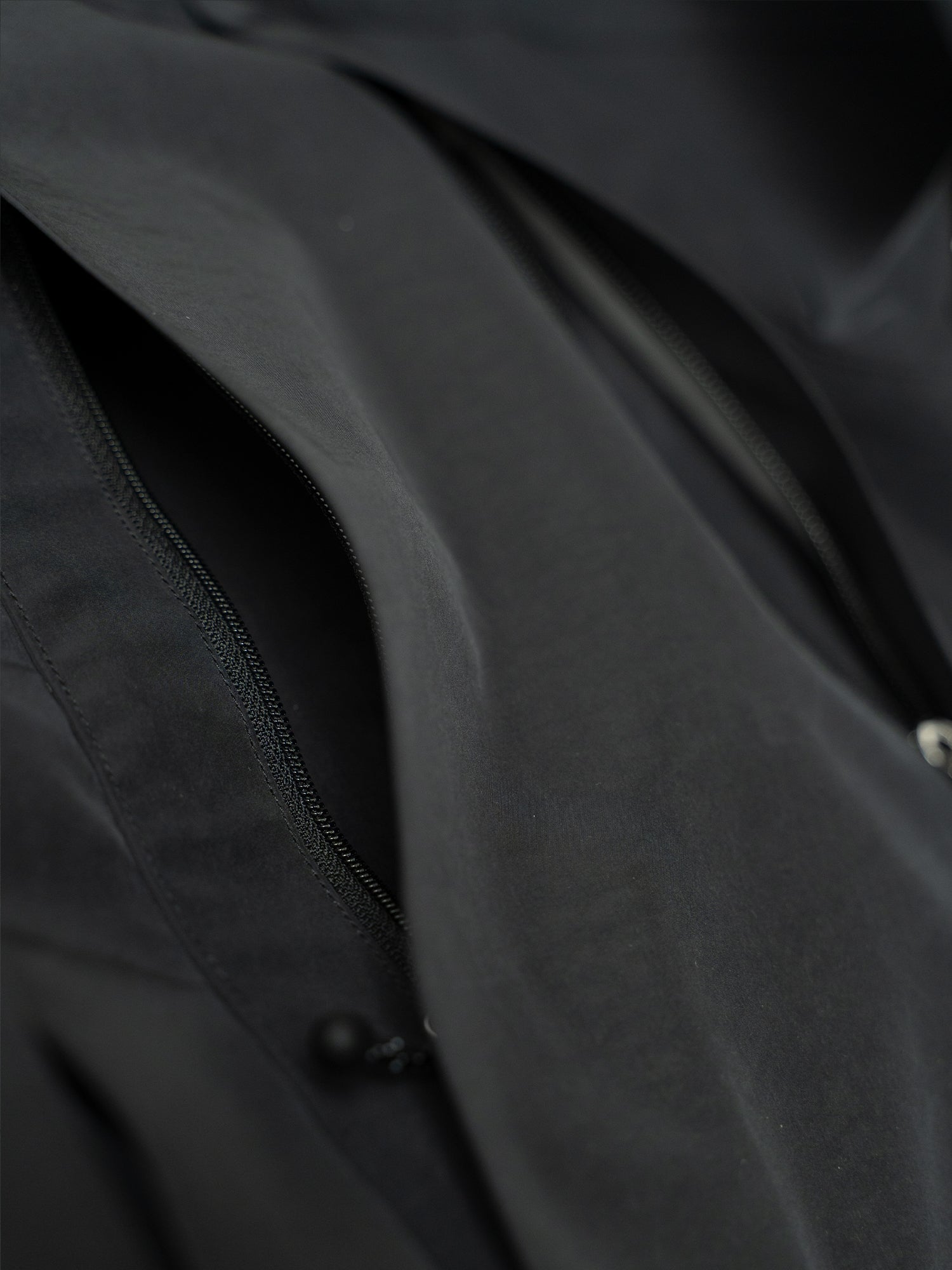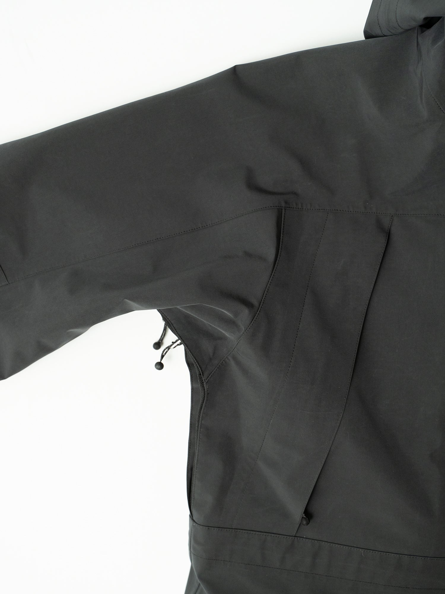 内側は総シームテープで水の侵入を完全に防ぐ仕様。5つのポケットと、脇にはジップベンチレーションを完備。収納力もあり、内側の熱気を瞬時に外に逃します。