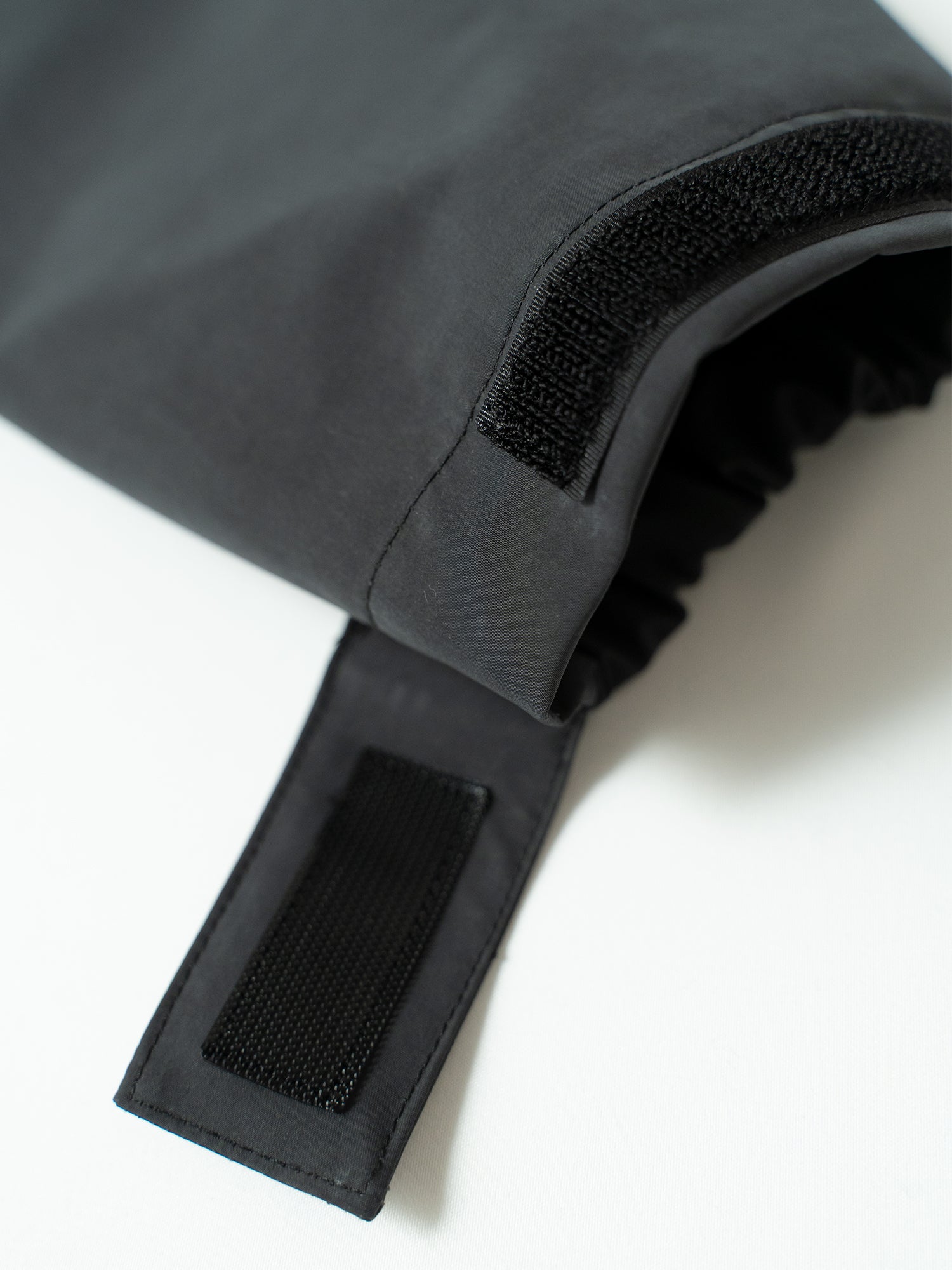 オリジナルで制作した透湿性のある3レイヤー生地を使用。微起毛したスエード調なナイロンポリ生地はパリパリとした高級感のある仕上がり。