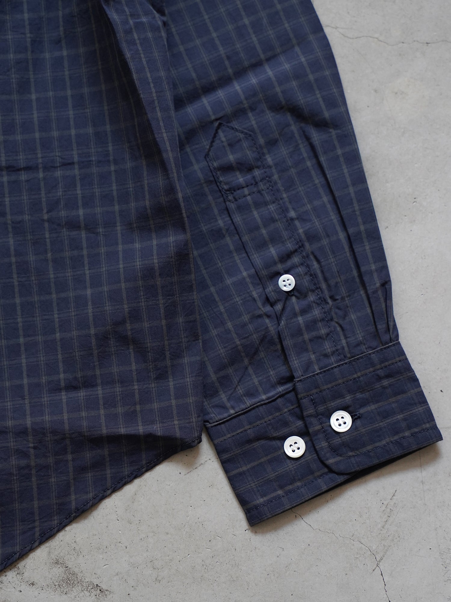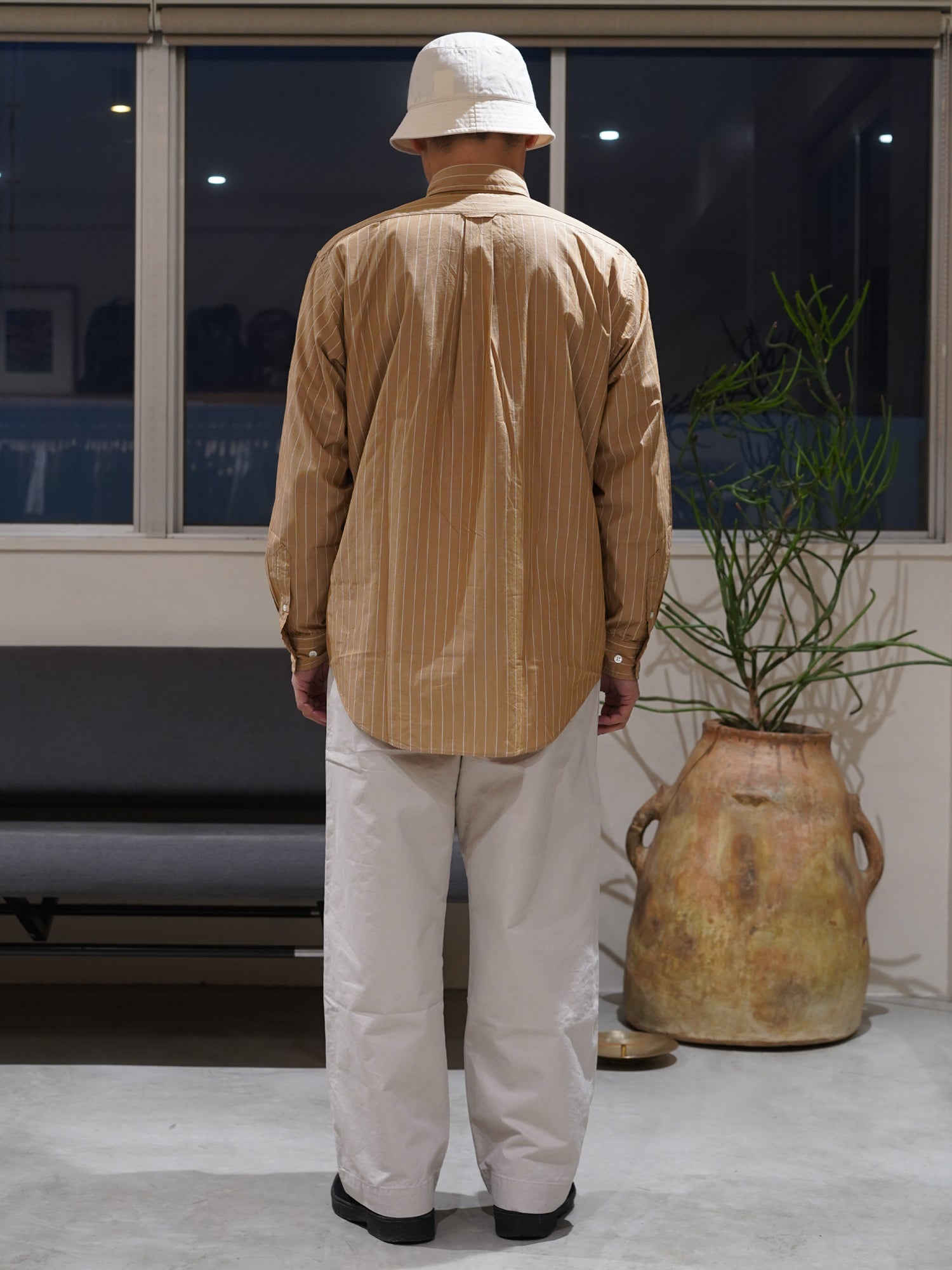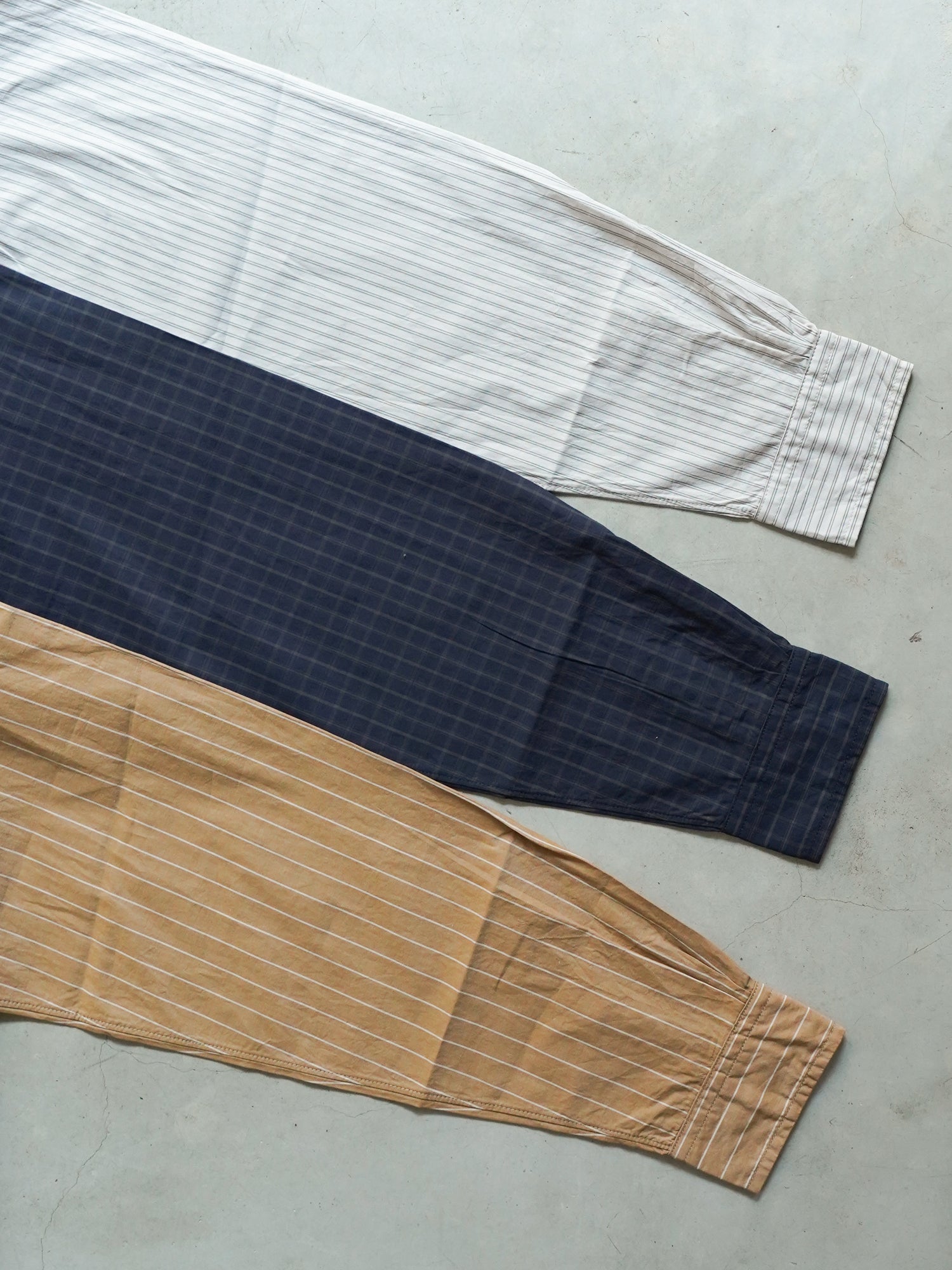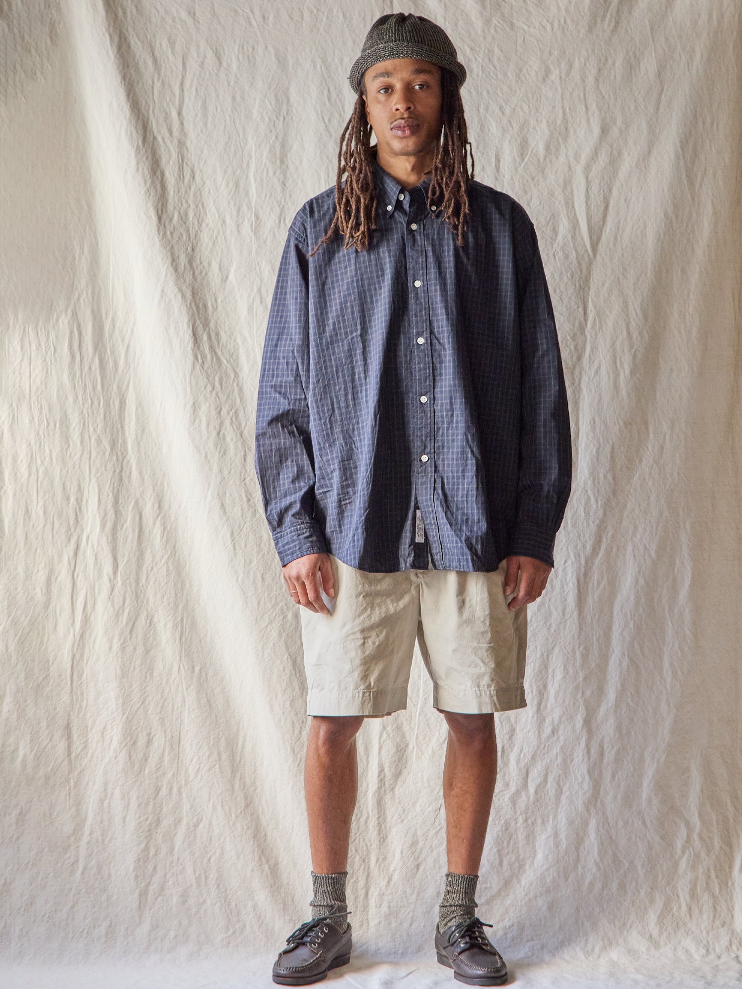 定番のB.Dシャツ。身幅に余裕のあるリラックスフィット。薄手のチェックとストライプのタイプライター生地を使用。