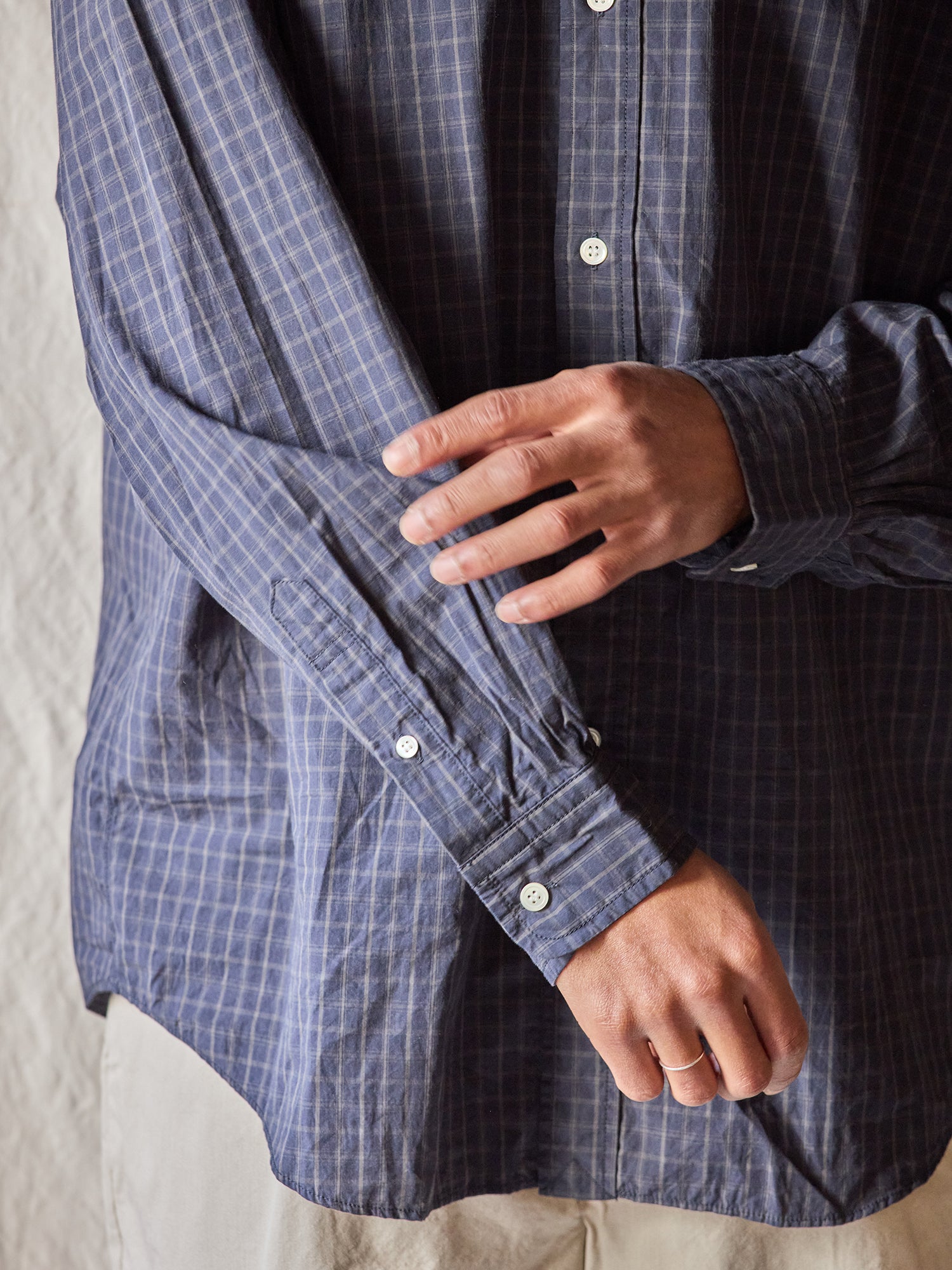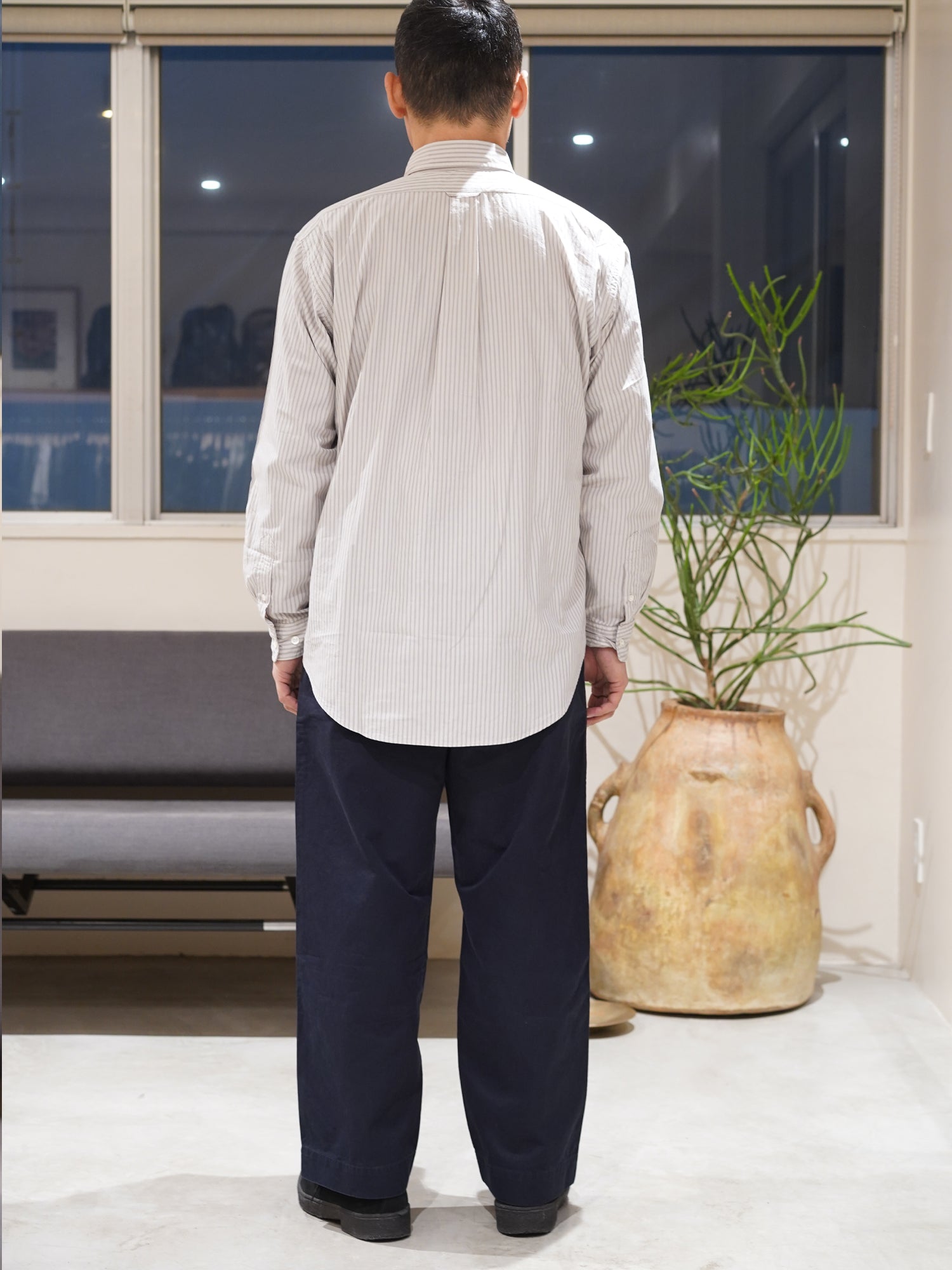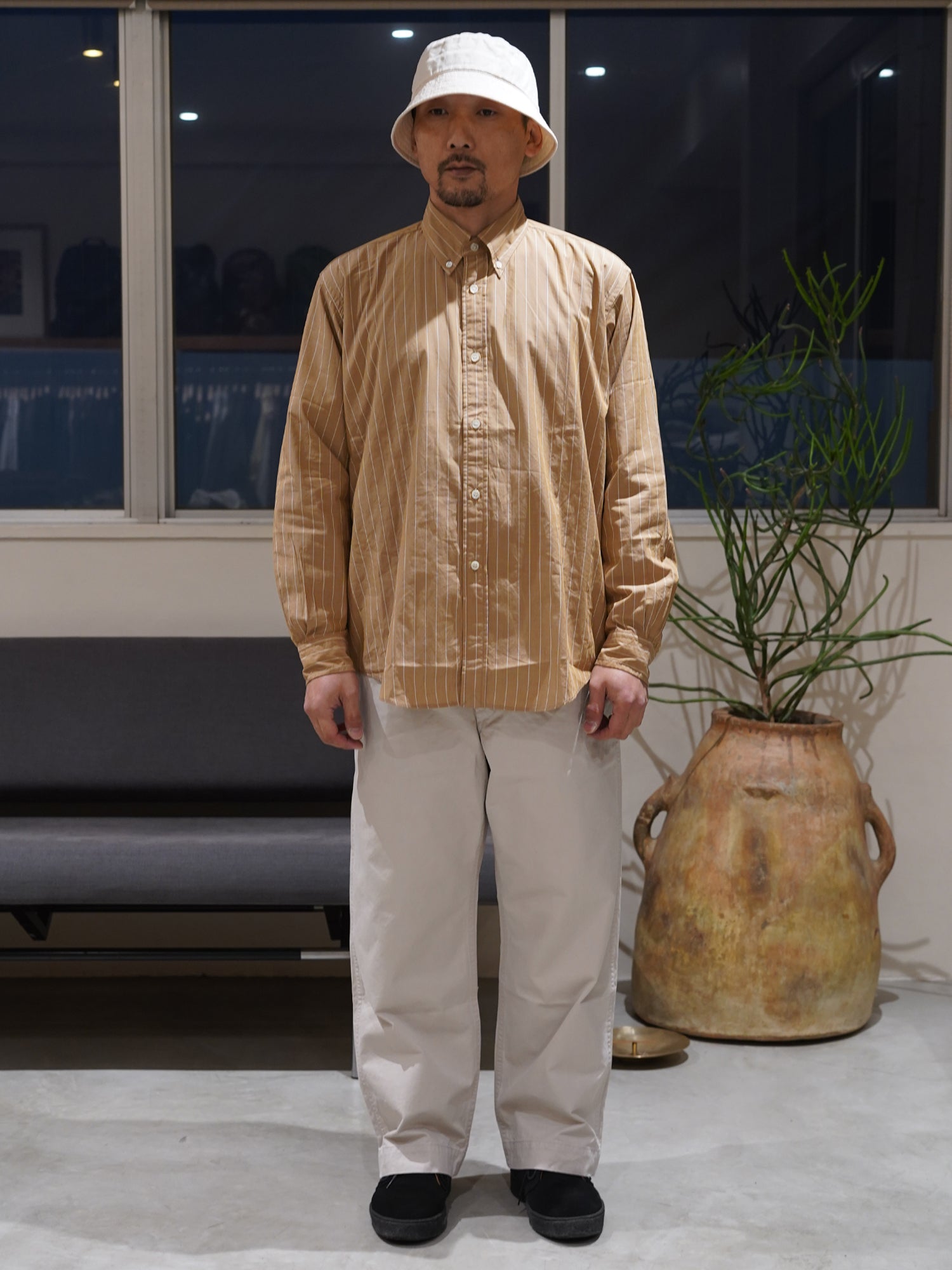 定番のB.Dシャツ。身幅に余裕のあるリラックスフィット。薄手のチェックとストライプのタイプライター生地を使用。