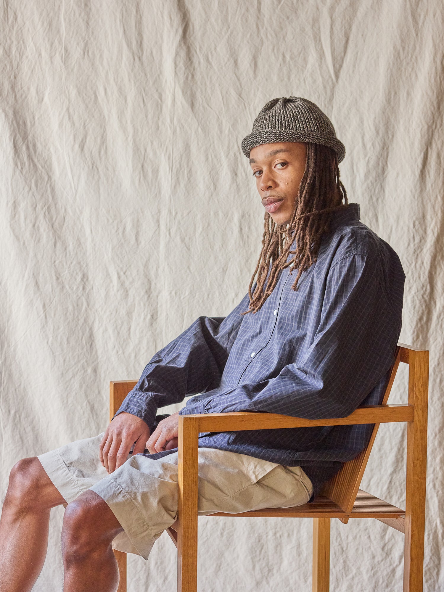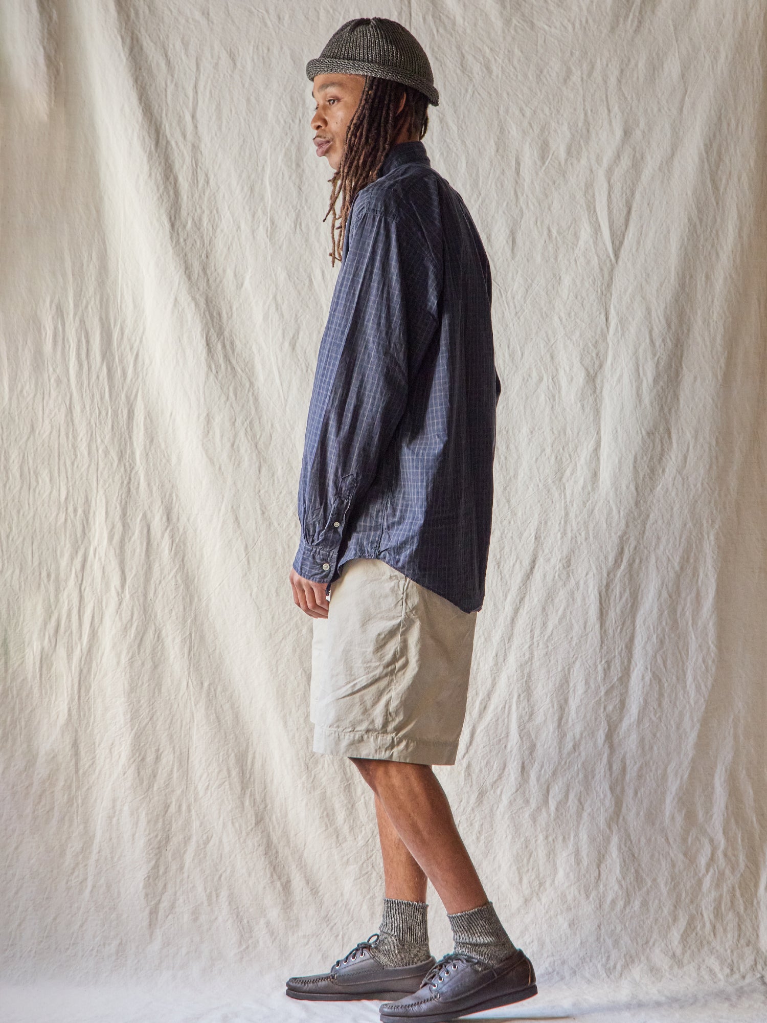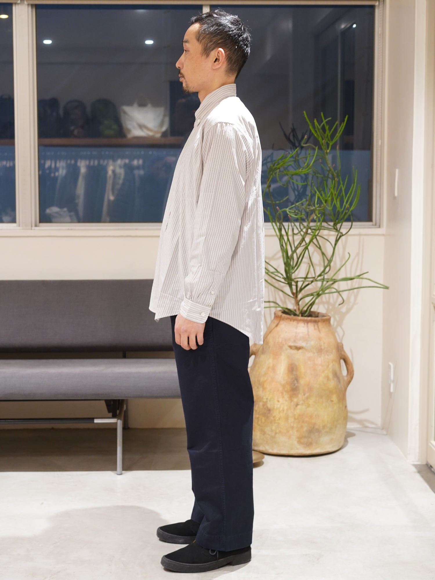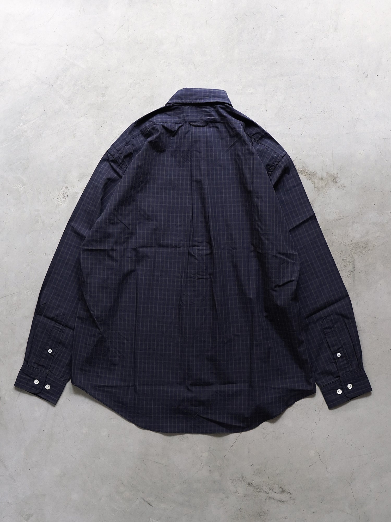 定番のB.Dシャツ。身幅に余裕のあるリラックスフィット。薄手のチェックとストライプのタイプライター生地を使用。