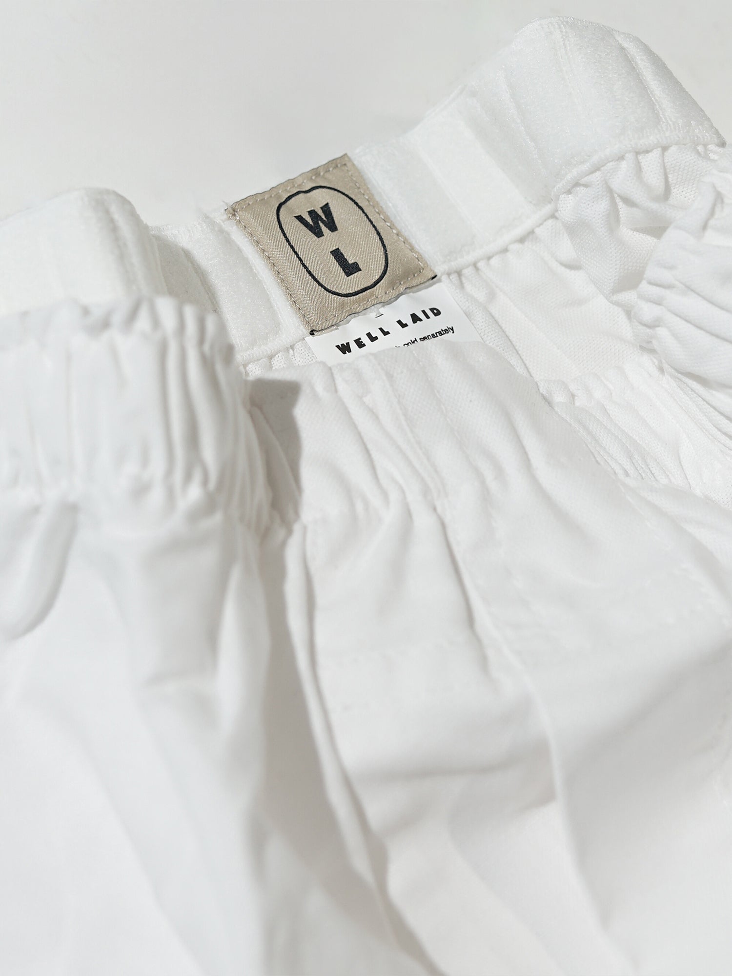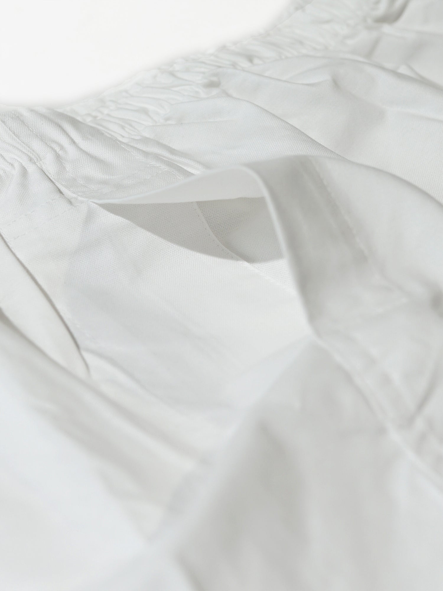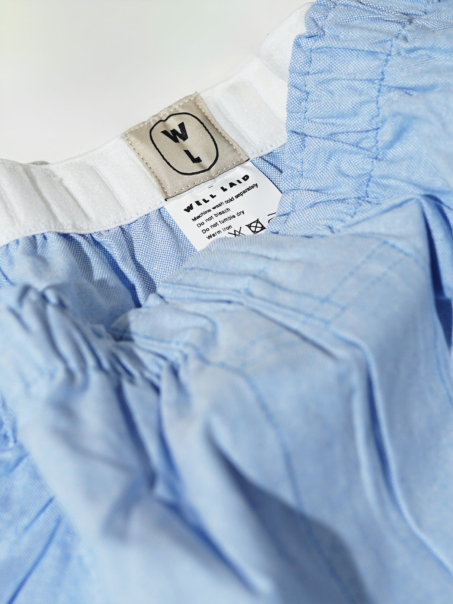 生地は通気性良く、繰り返しの洗濯にも耐えうる上質なオックスフォード、帯ゴムは肌触りの良い伸びにくく締め付けが適度な特別な物を使用したボクサーショーツ。2024年にリリースしたイタリアのおじいちゃんが履いてそうなクラシックなシルエットのままサイズを修正し、より履きやすくアップデート。1,2,3の3サイズ展開。