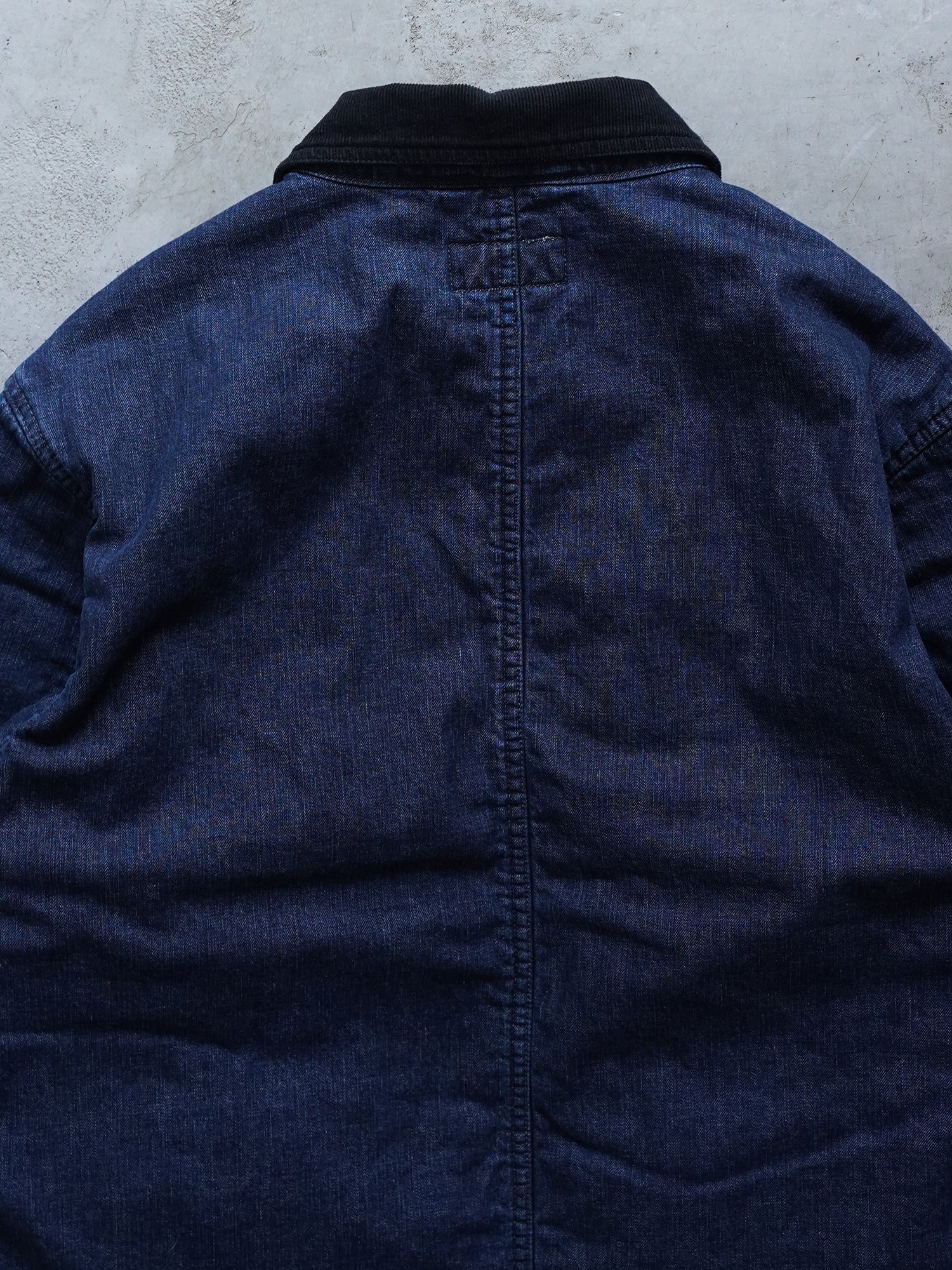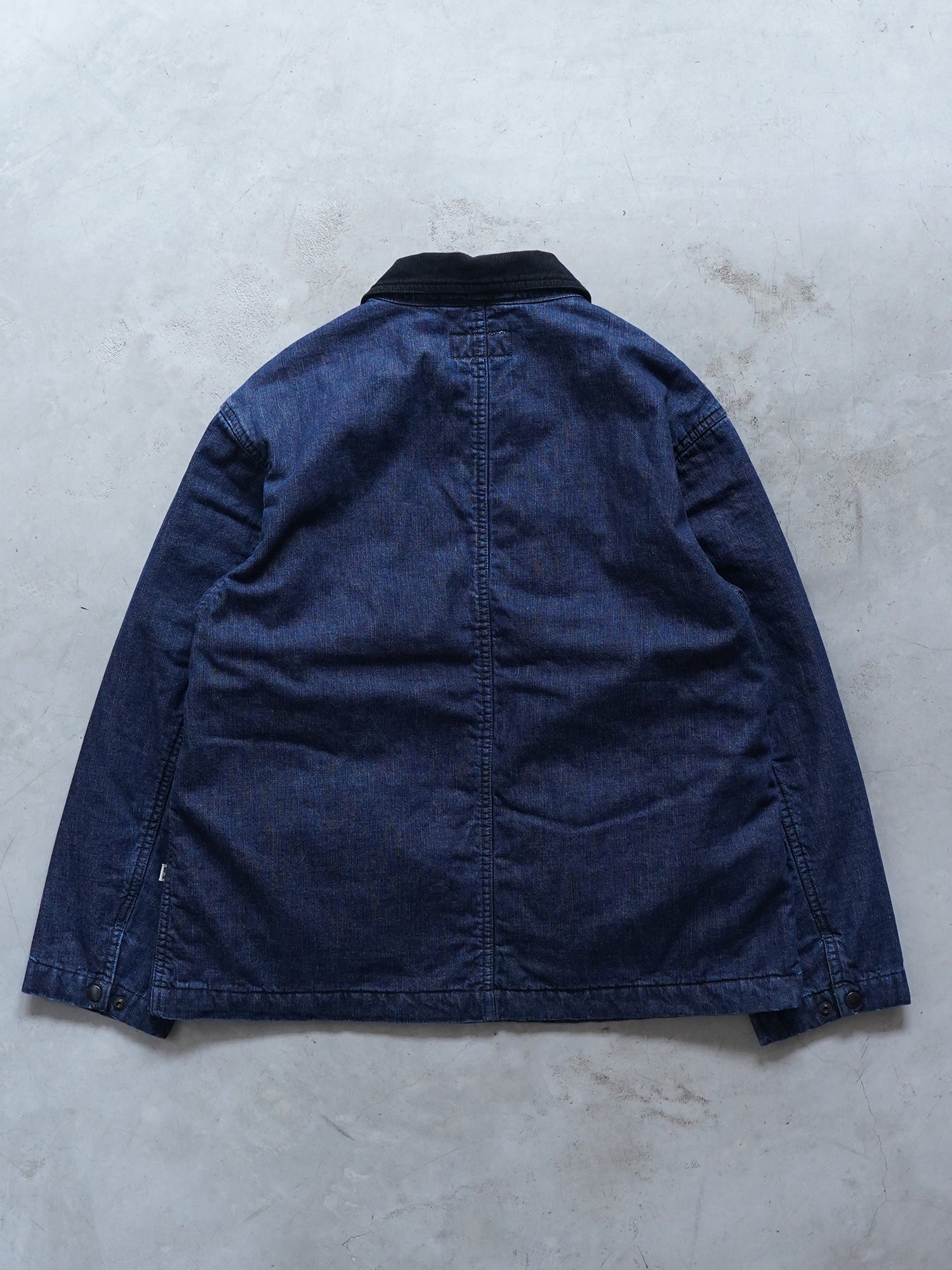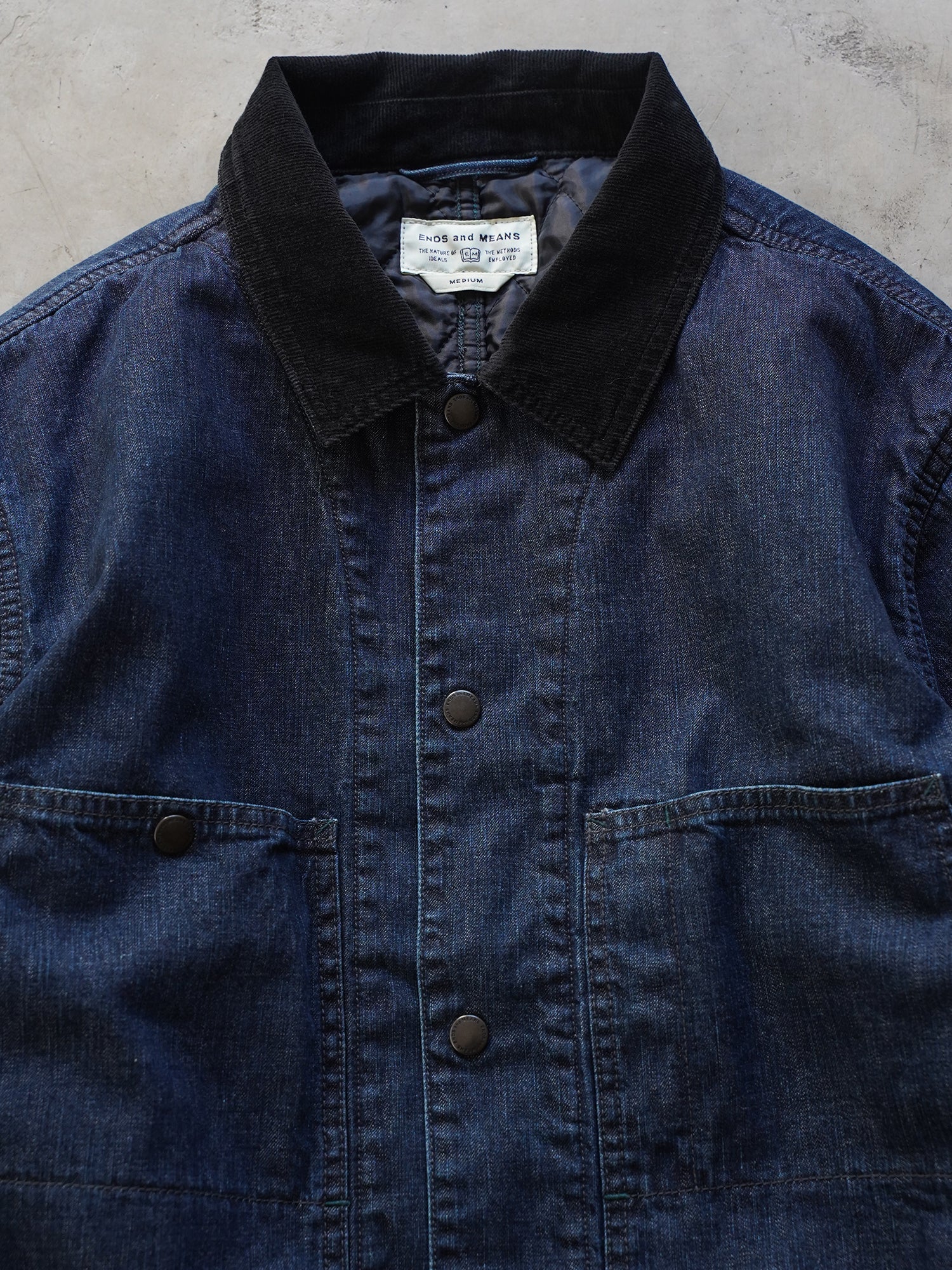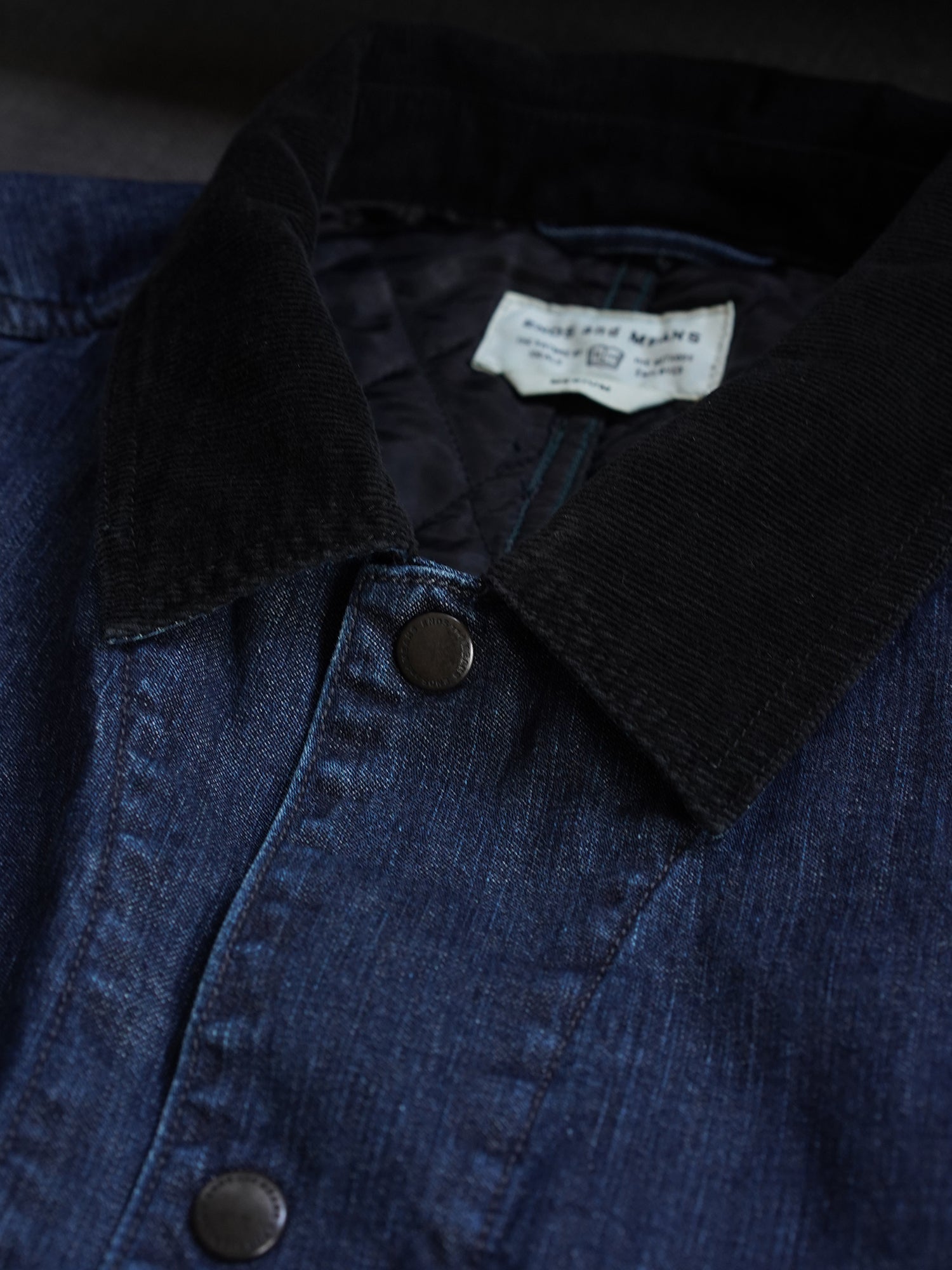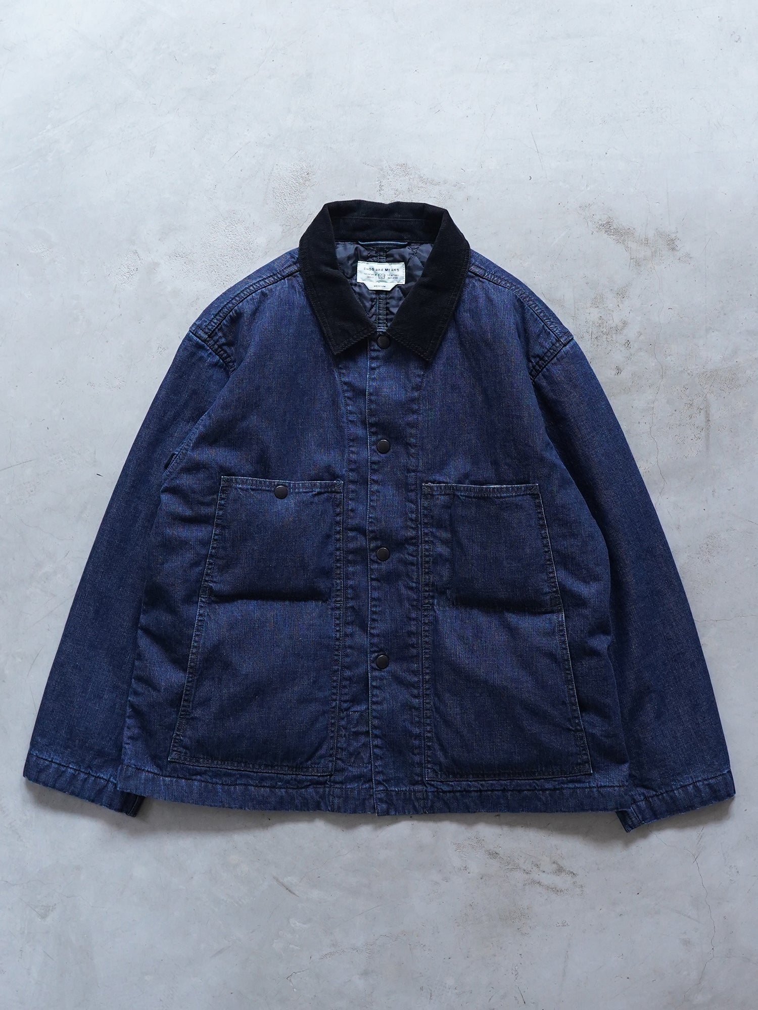 表地は9ozのジンバブエコットンを使用し着始めから馴染むよう洗い加工を程よく施し、若干緑がかったインディゴ生地。