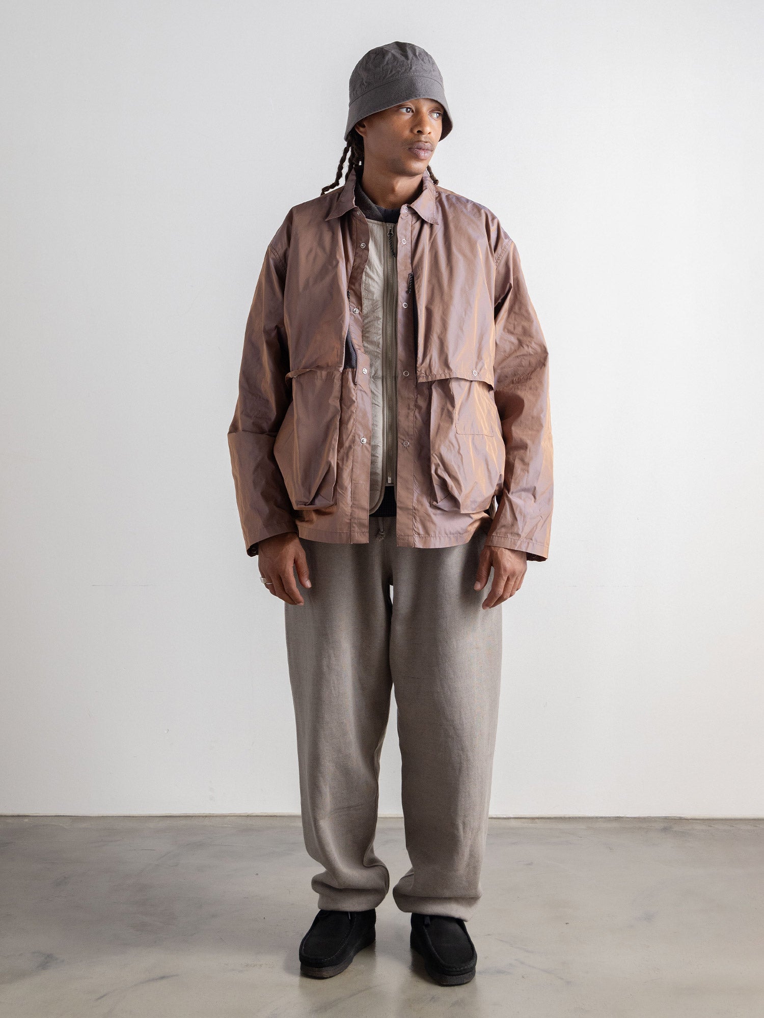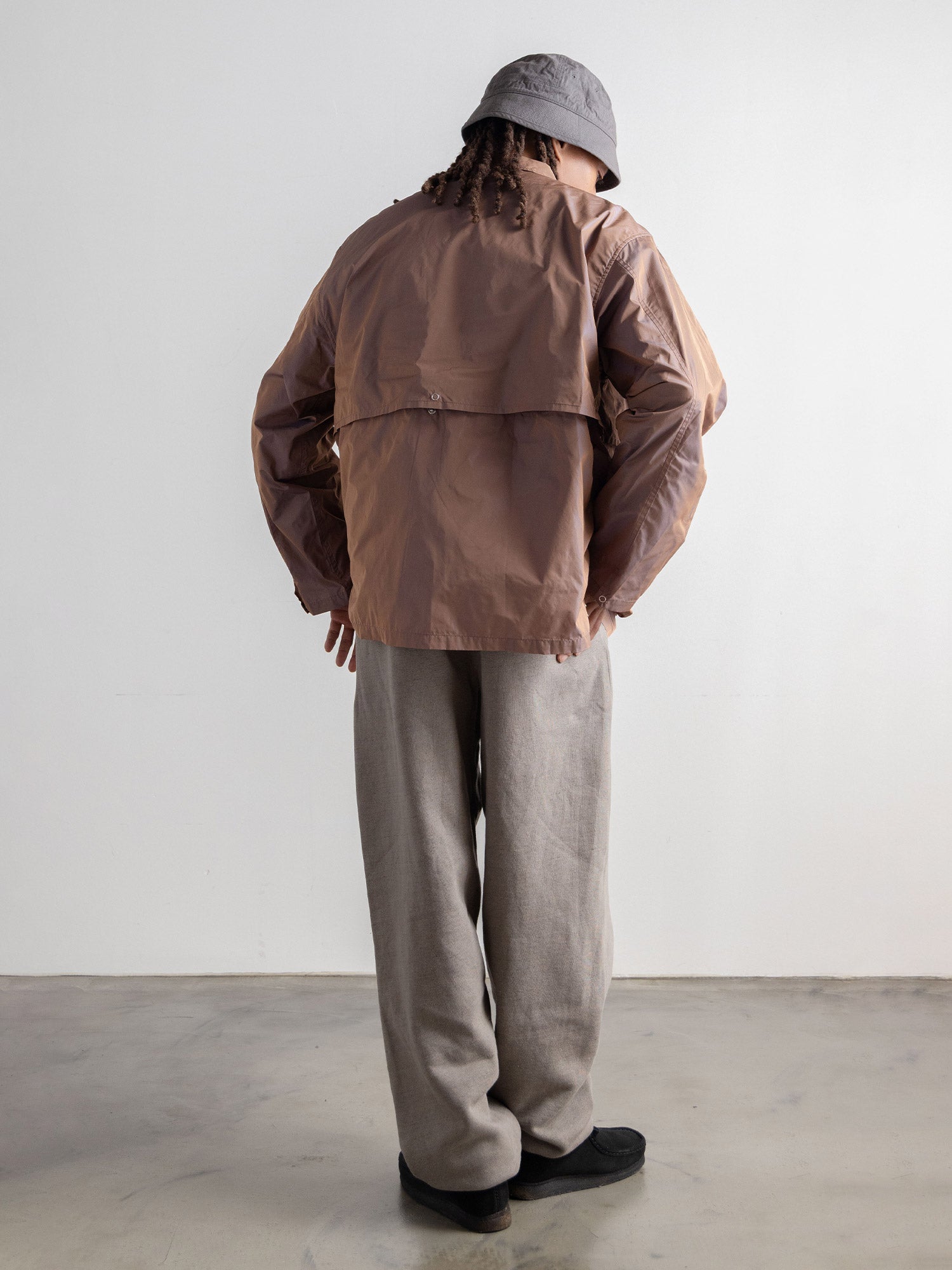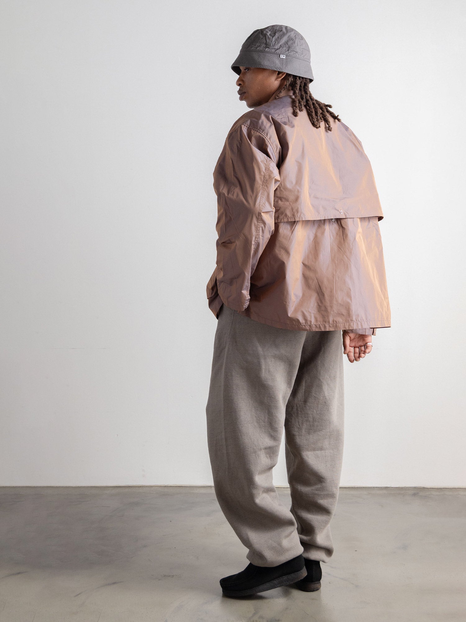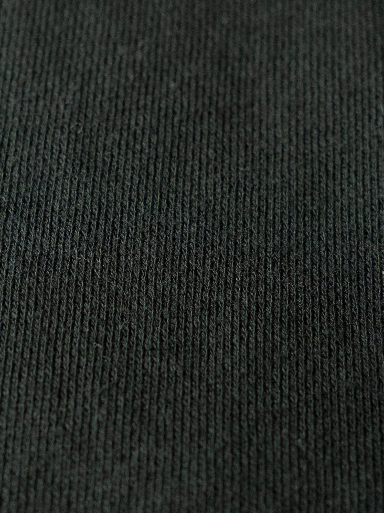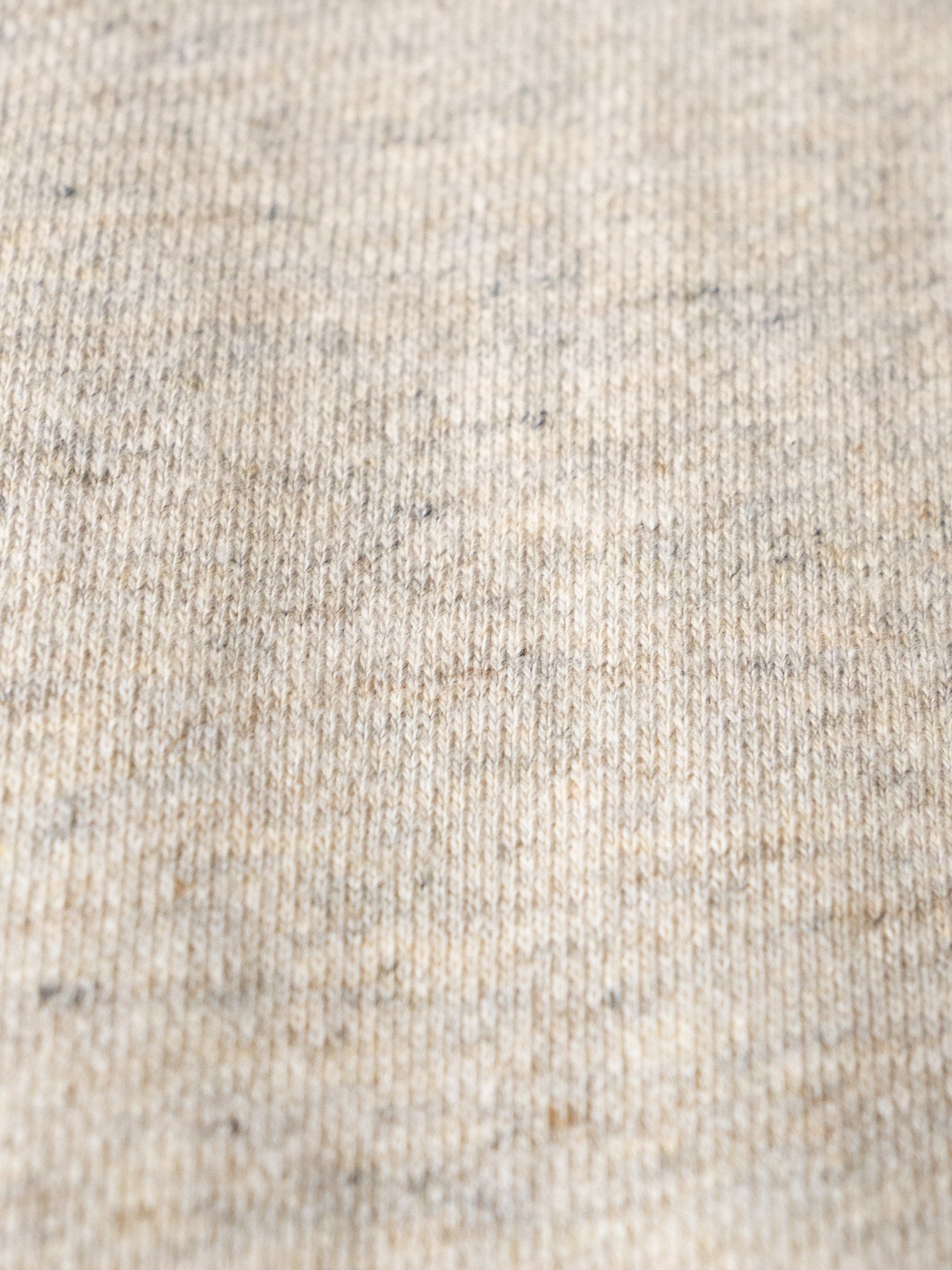 空紡糸を少しだけ使用し、表糸には複数の色が絡んだ撚り糸を使用しており、一見単色に見える生地は複数色で構成された奥行きのある杢感。