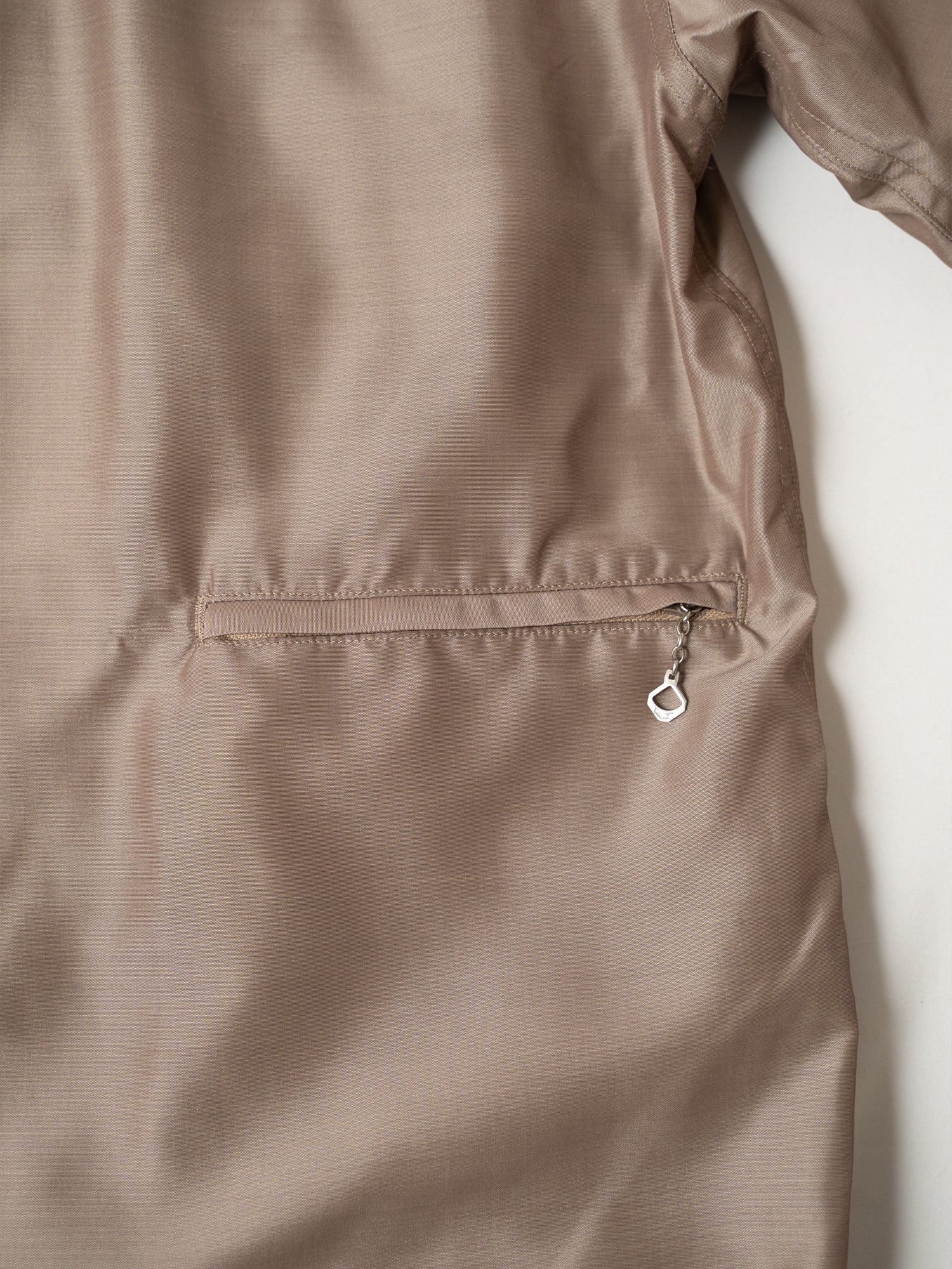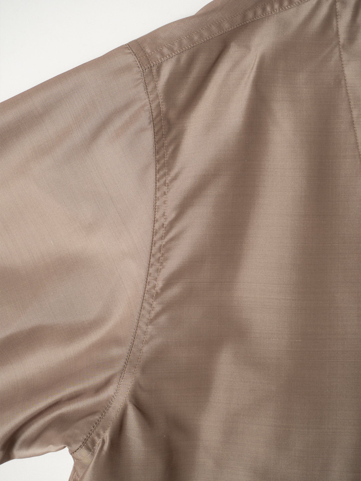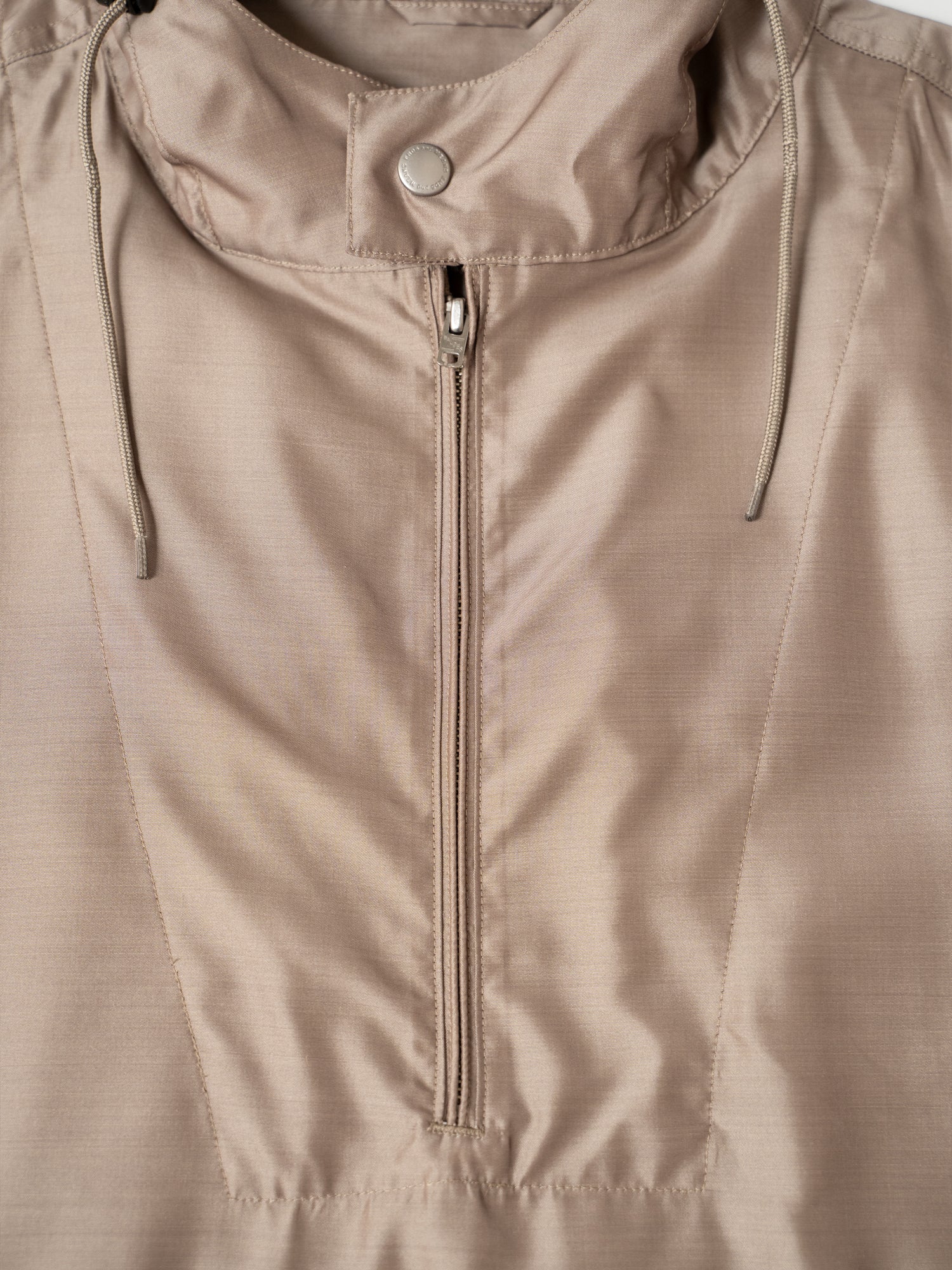 経糸にナイロン、緯糸にシルク糸を使用したタフタ生地のアノラック。