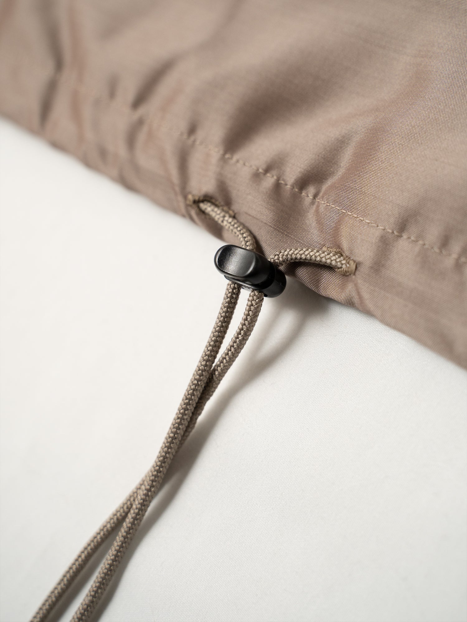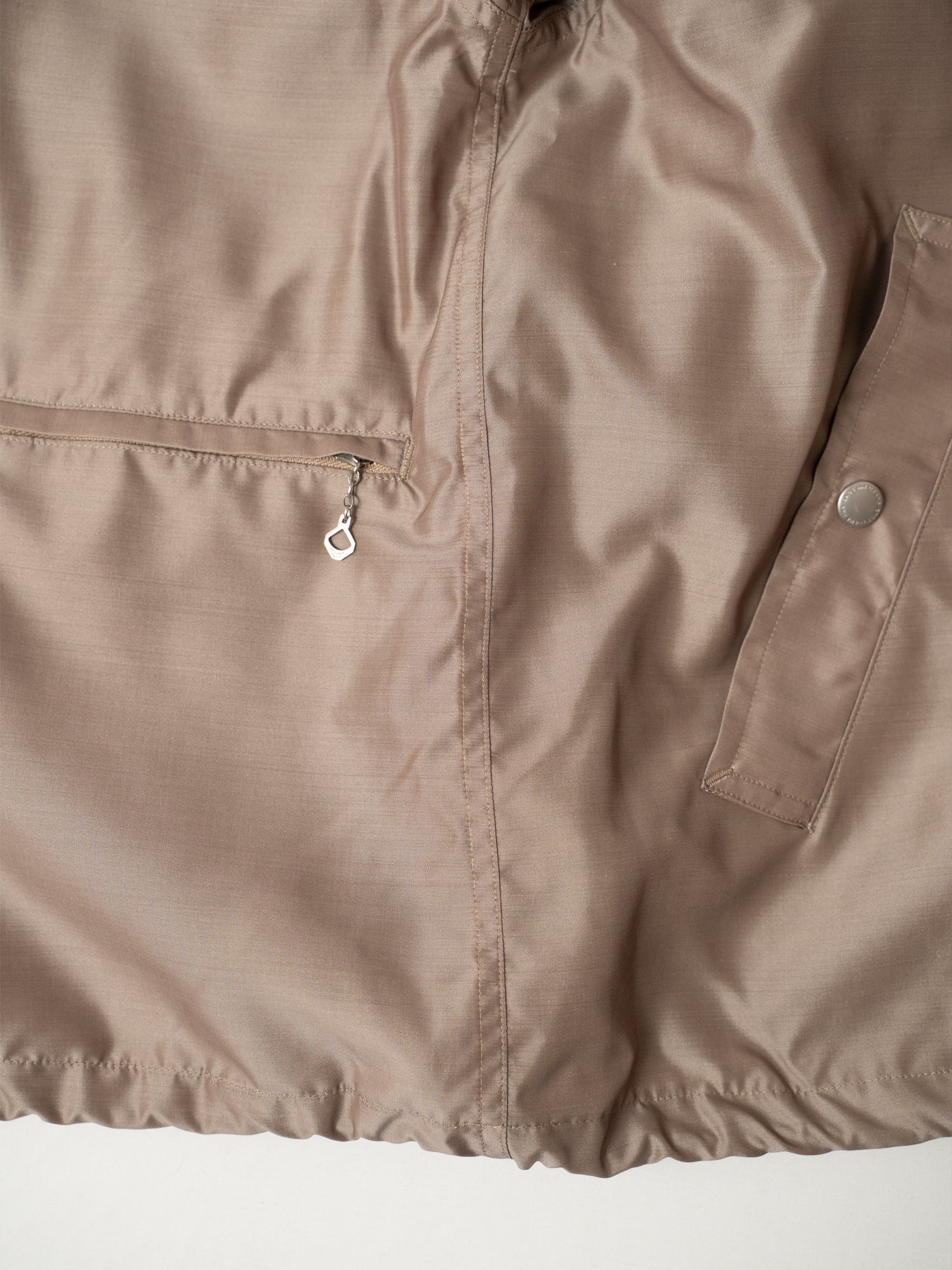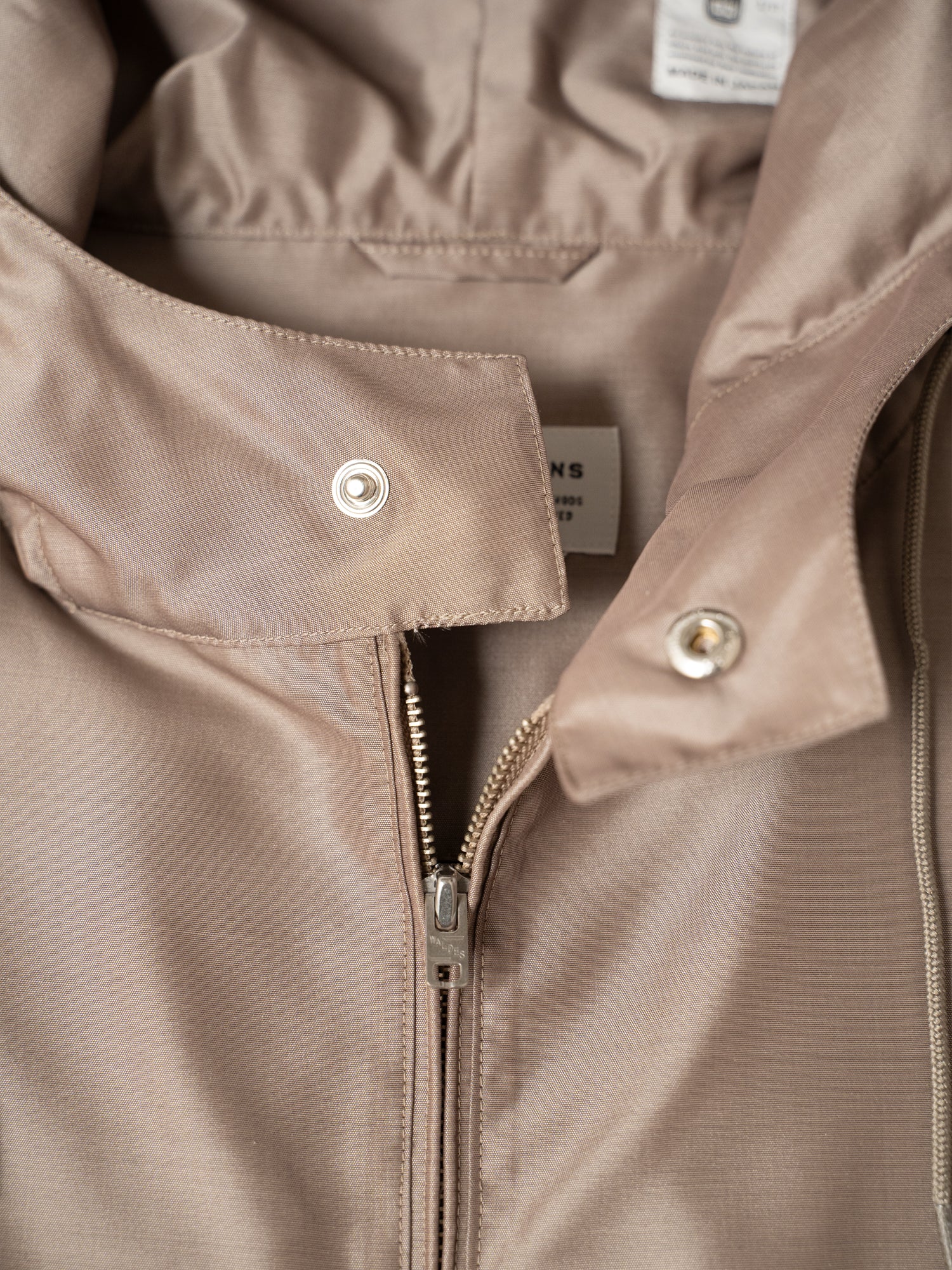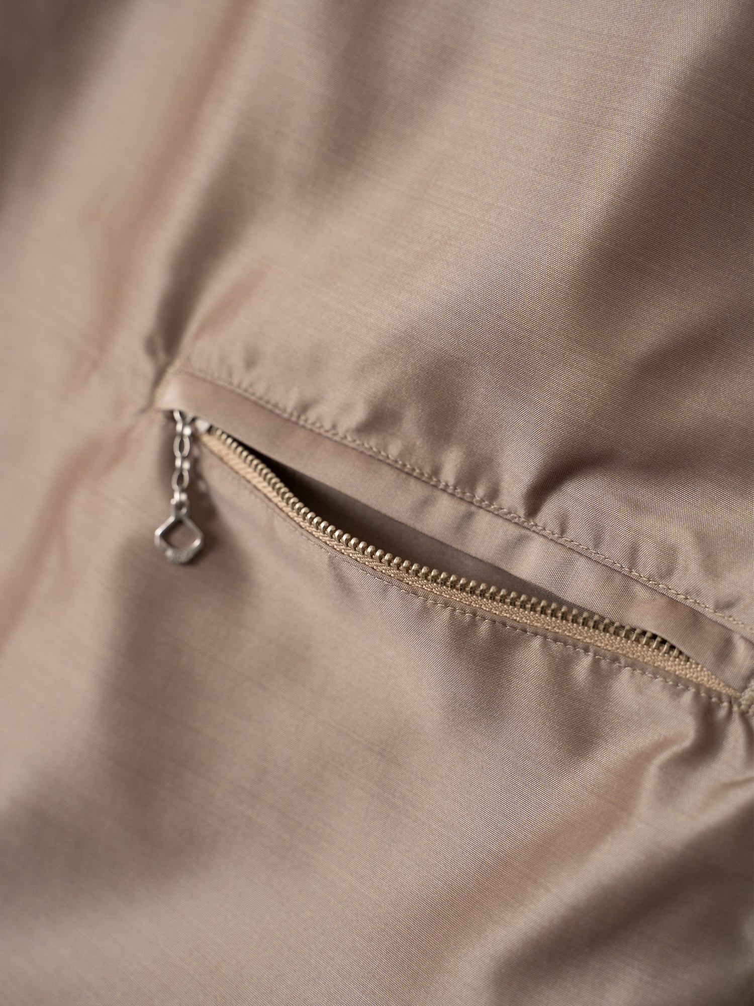 経糸にナイロン、緯糸にシルク糸を使用したタフタ生地のアノラック。