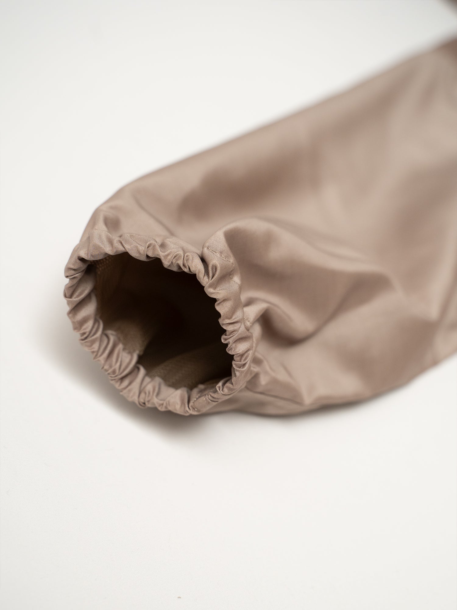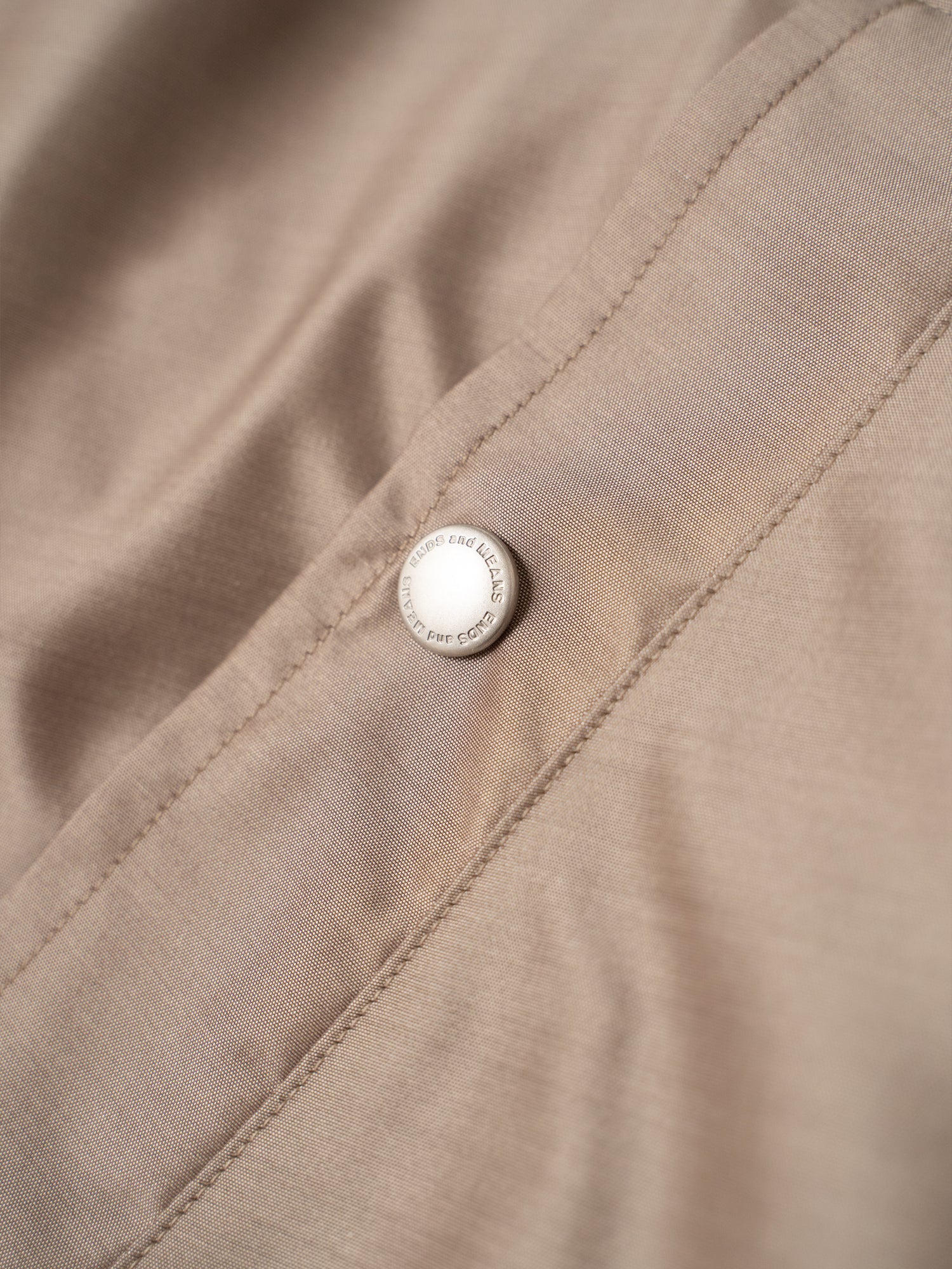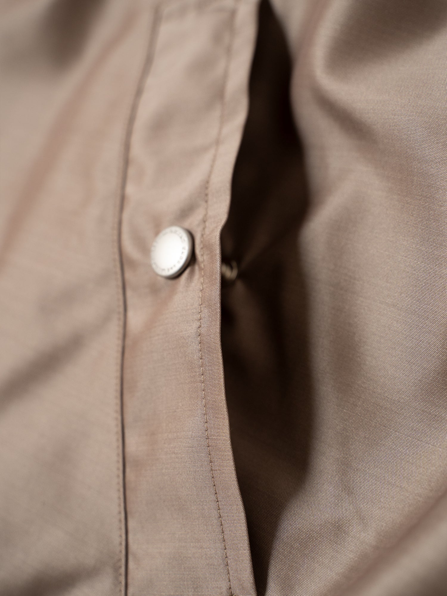 アウトドアやストリート色の強いアノラックに、シルクの上品な佇まいを融合した大人がさらりと着こなせる絶妙な仕上がり。