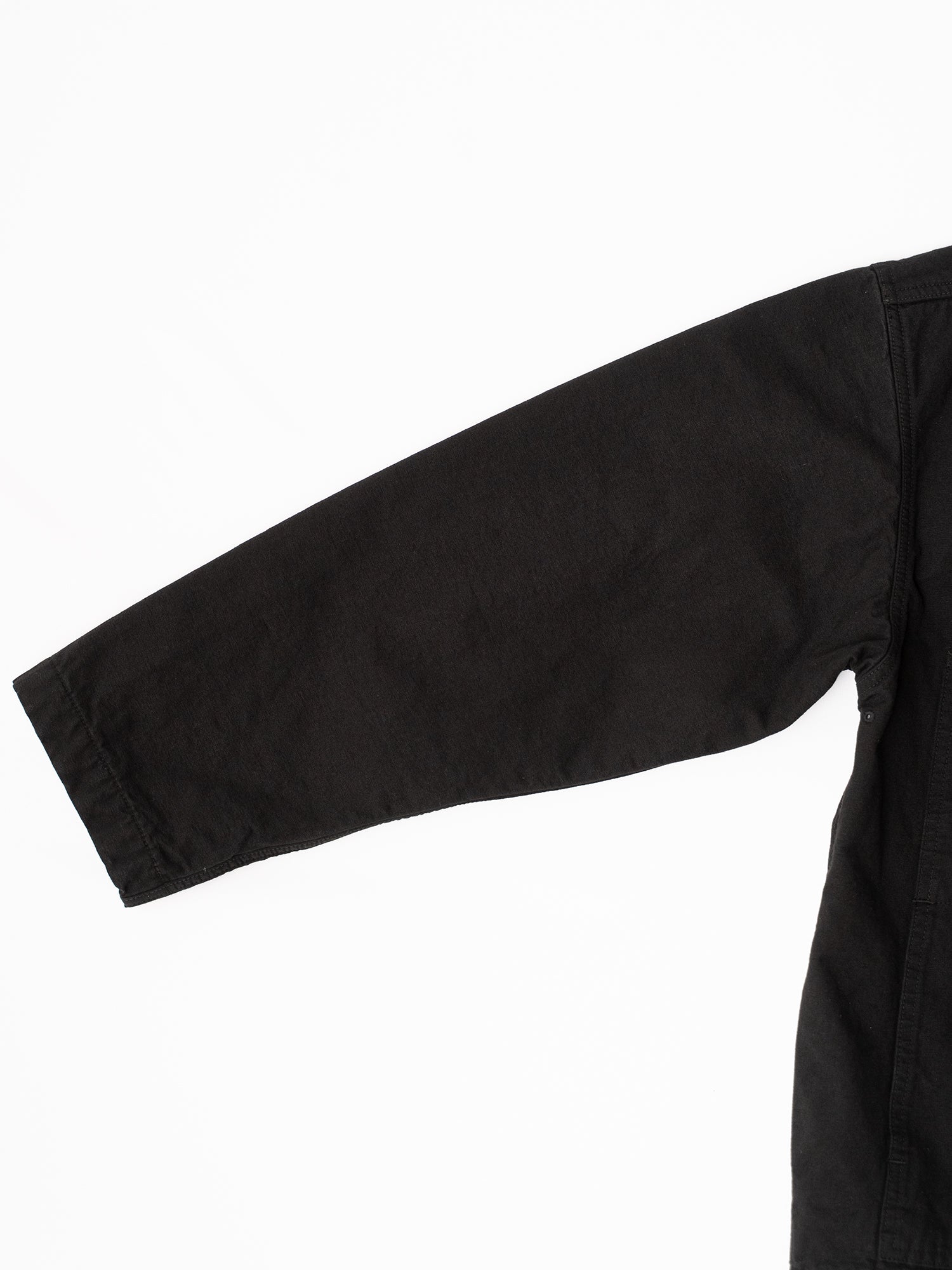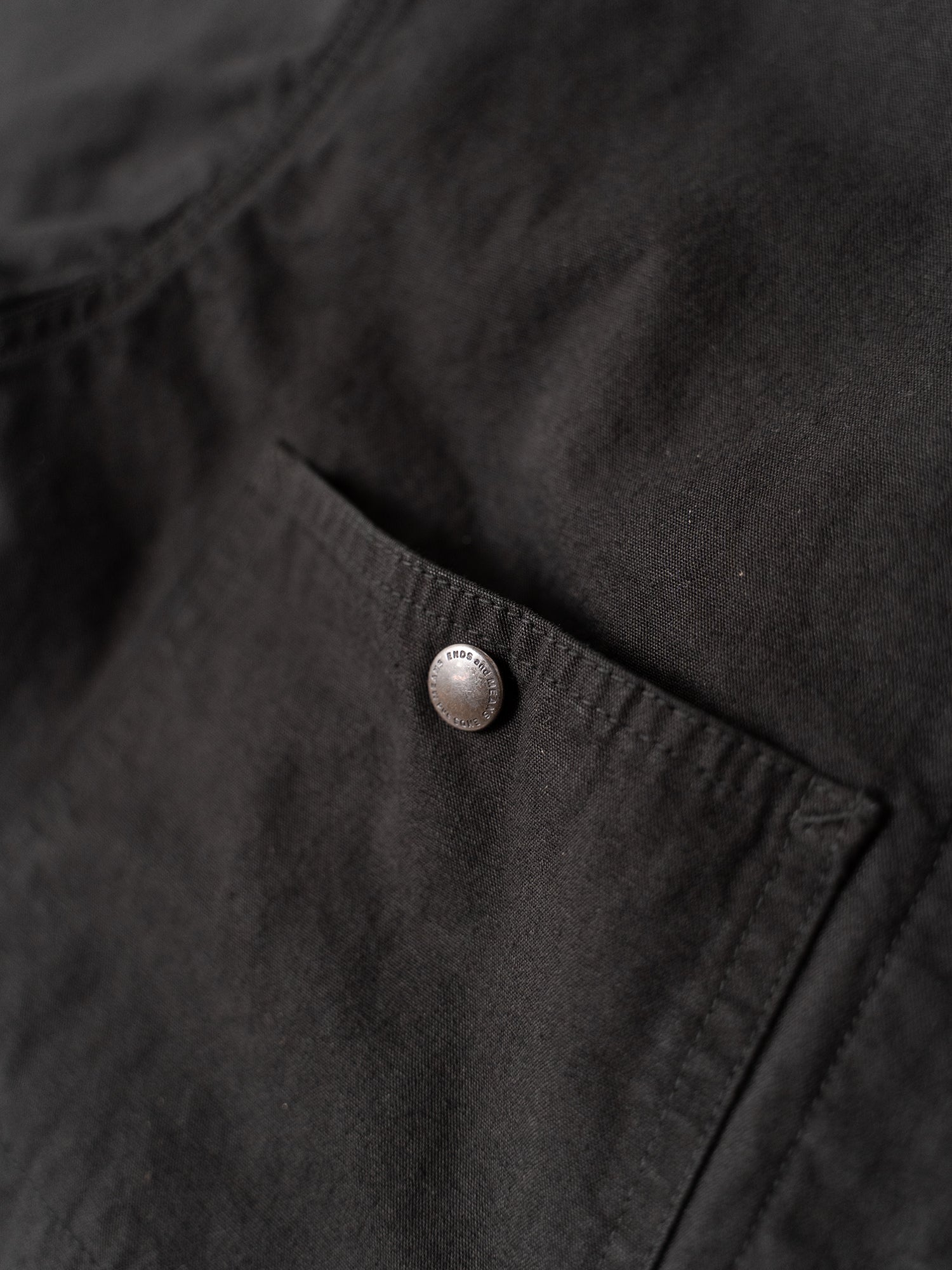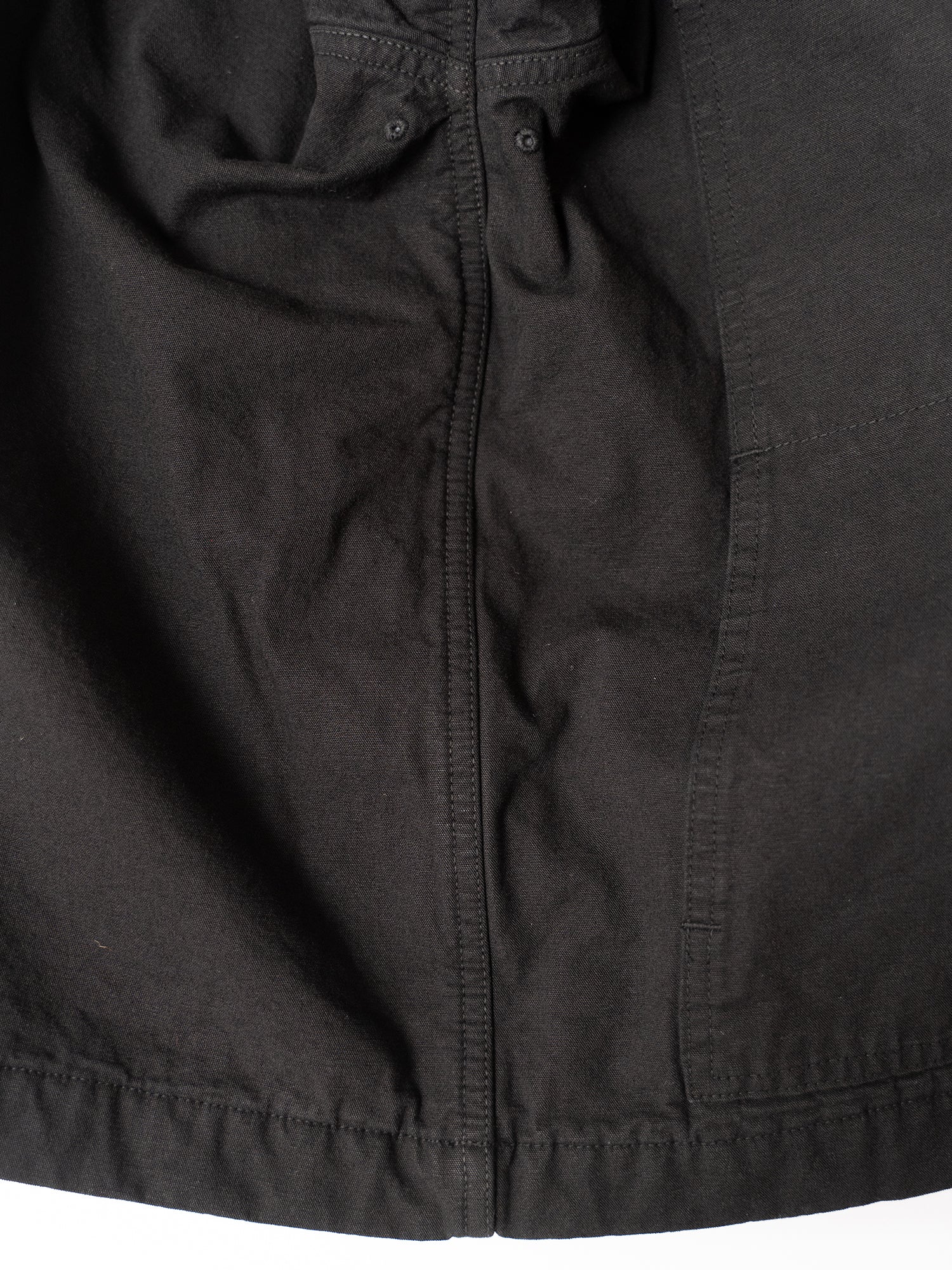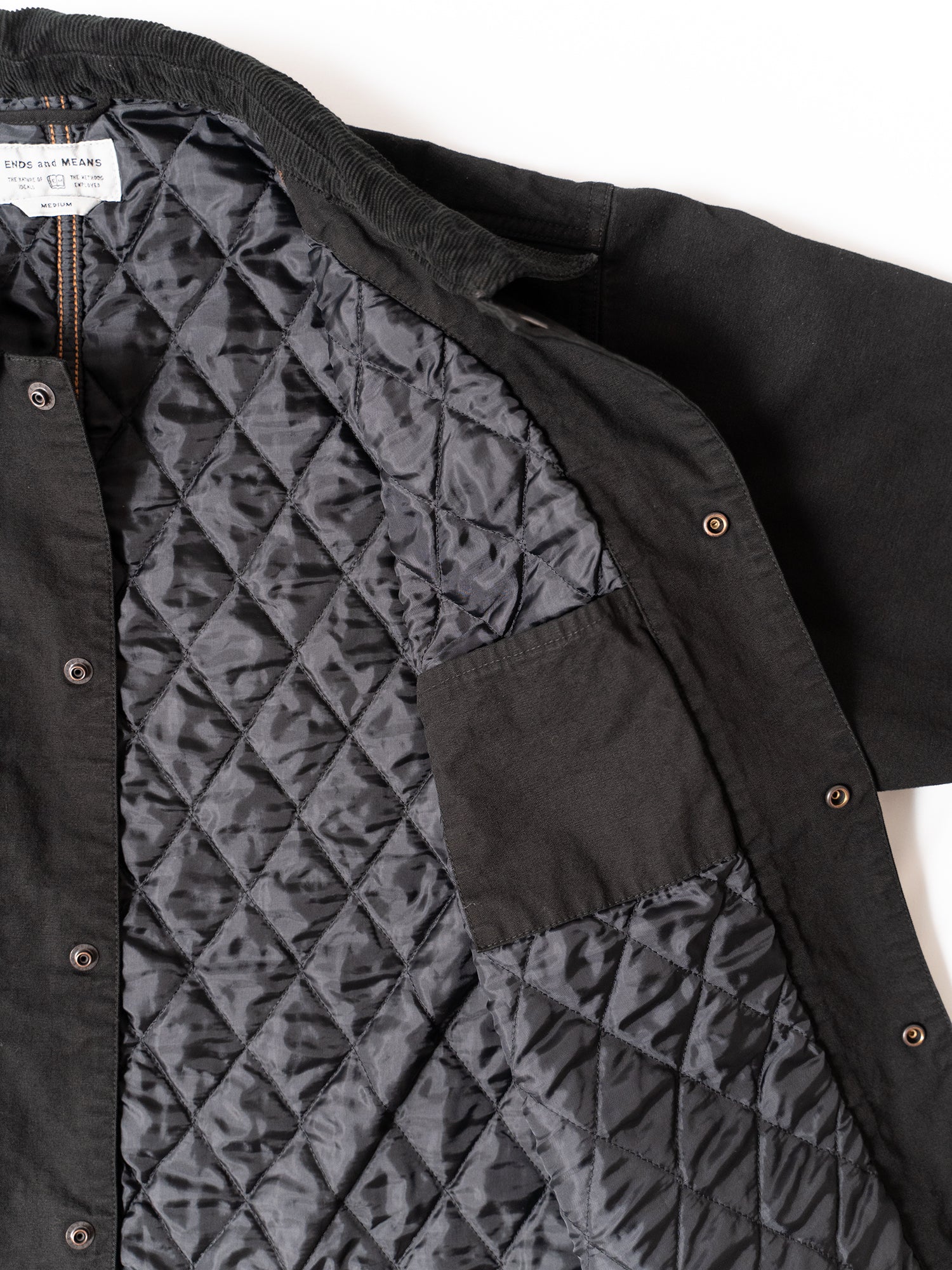 通常のキャンバス生地よりもしなやかで品がある強撚オーガニックコットン糸で折り上げたキャンバス生地を使用。襟はコーデュロイ生地。内側には程よい厚さのキルティングライニング。