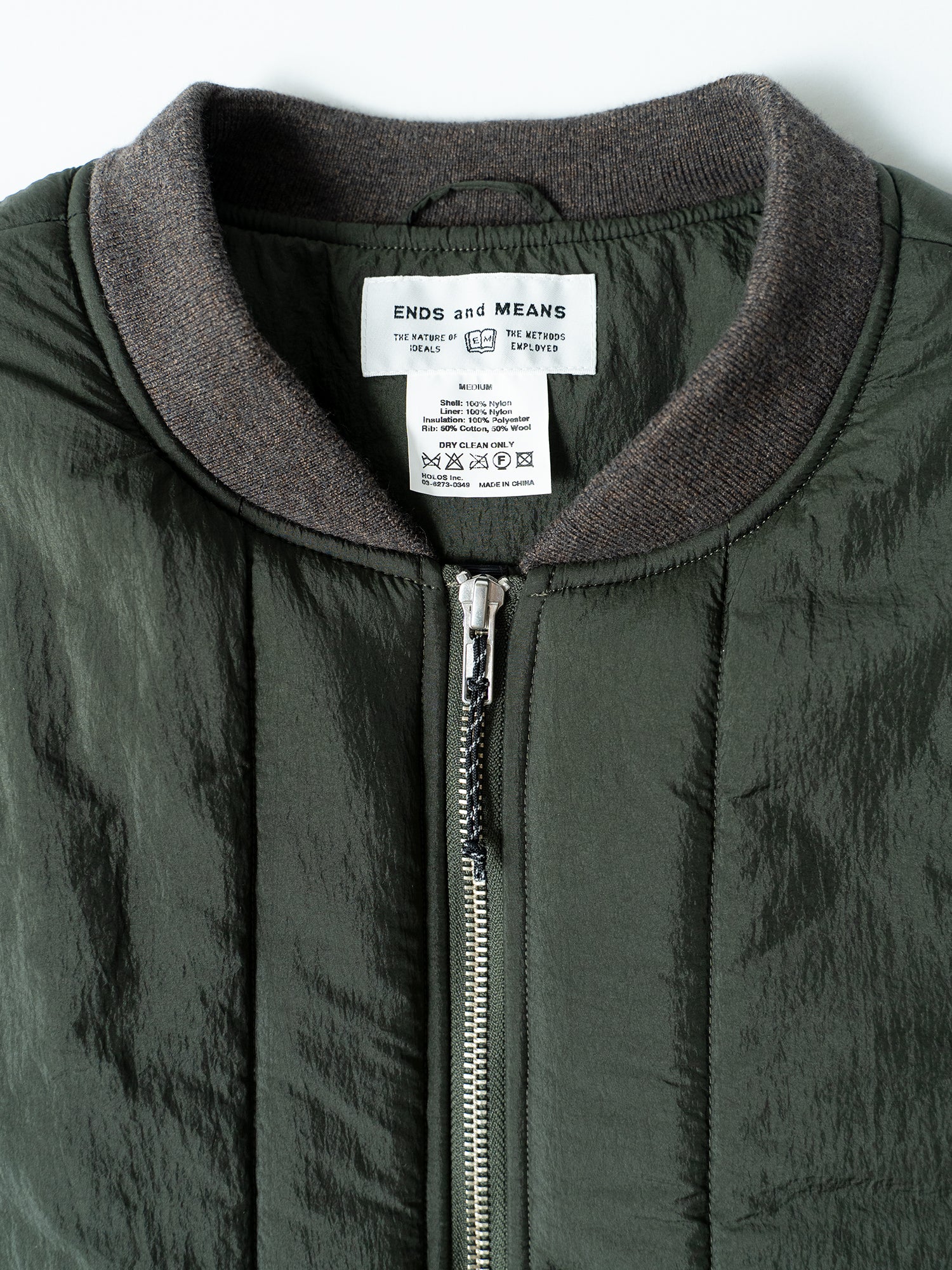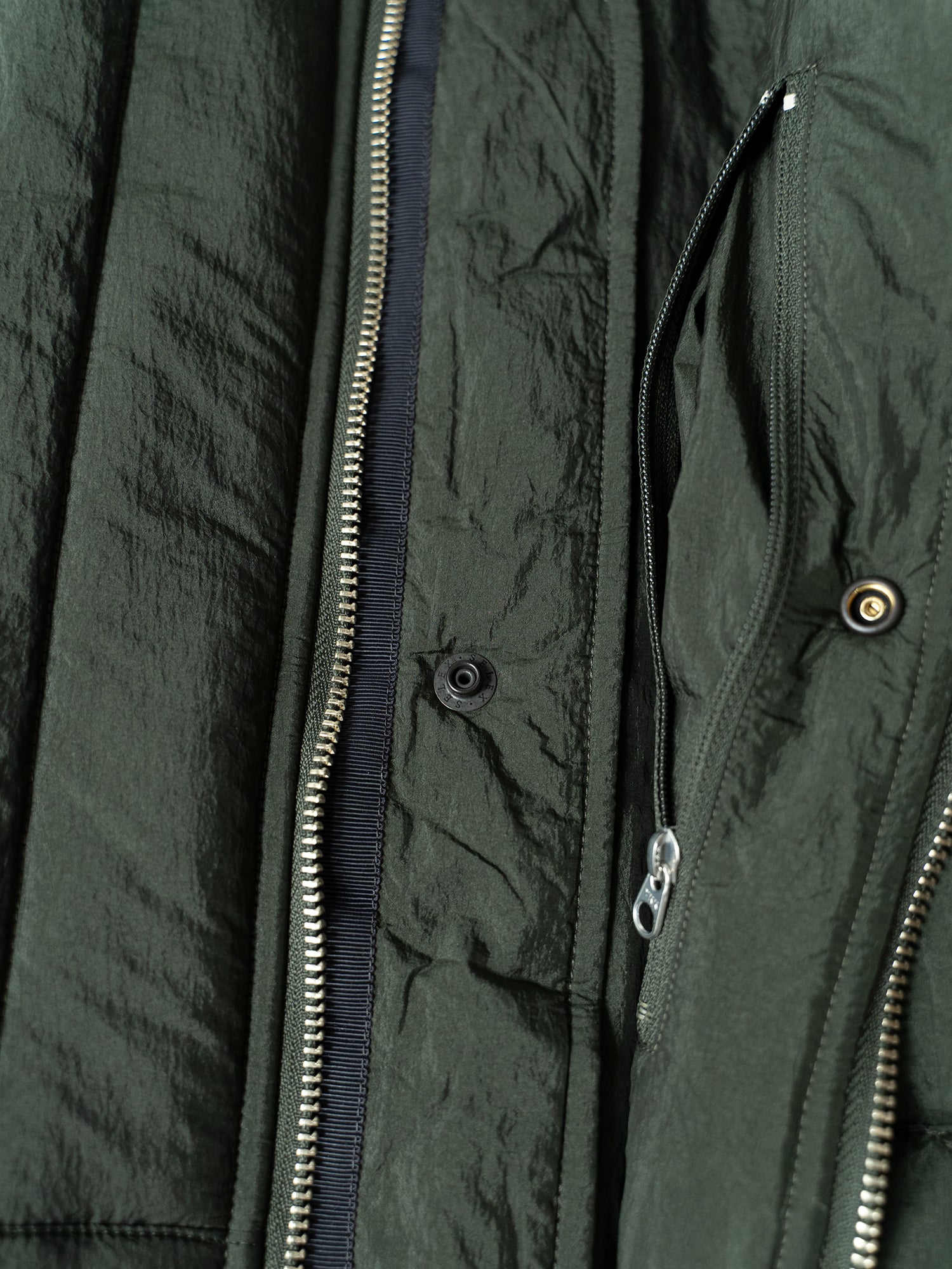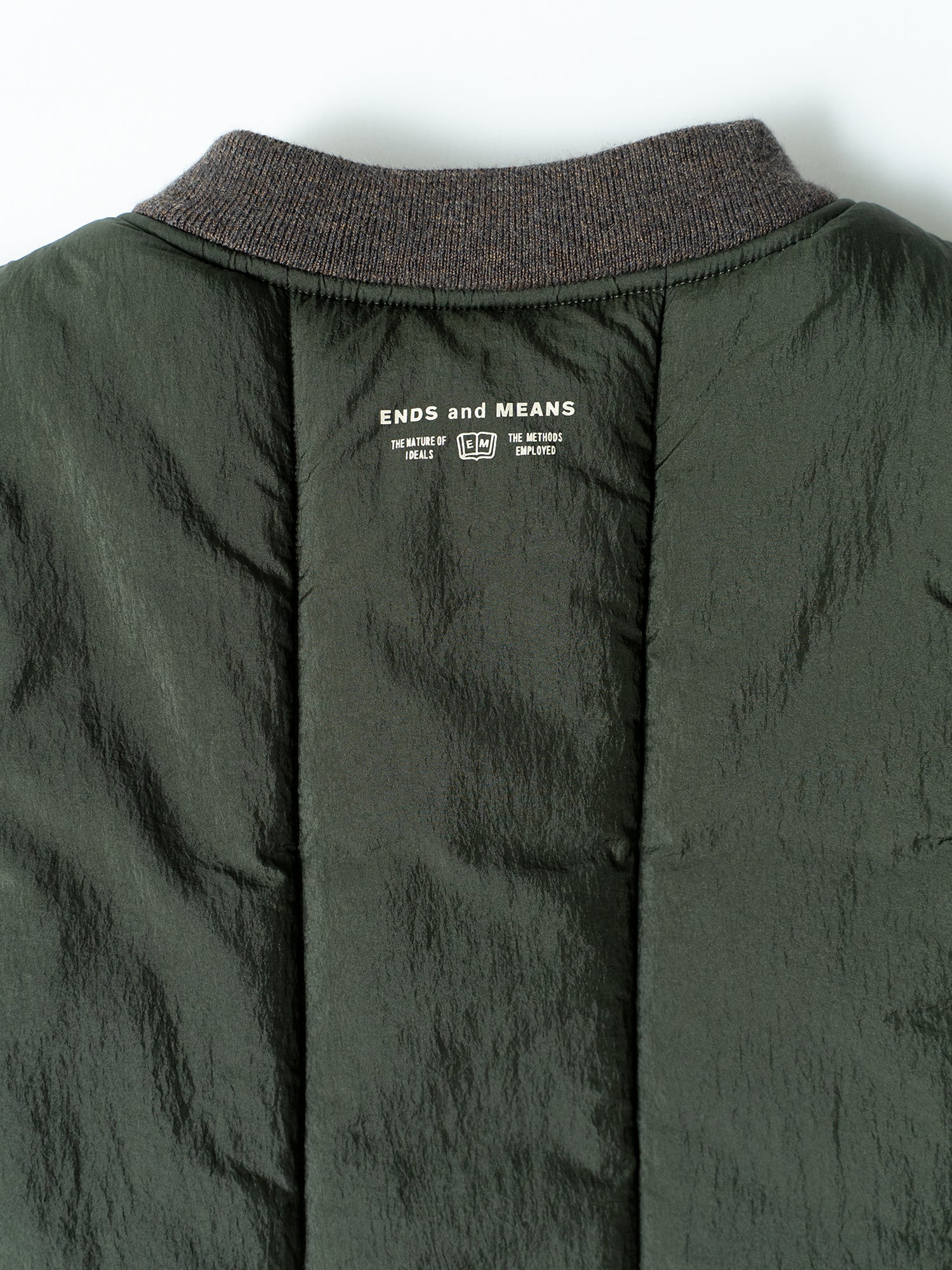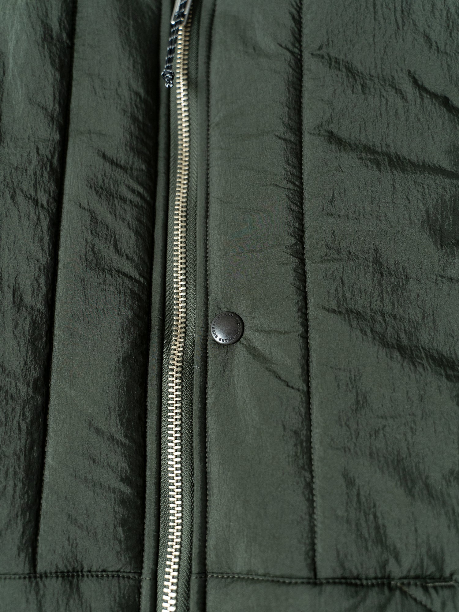 ナイロンの表地にハイテク中綿を使用した軽くて暖かい一着。ネックにメリノウールとコットンの混紡糸で編み立てたリブがつき、首元もしっかりと防寒。レイヤリングもしやすい秋から春先まで重宝する便利なアイテム。