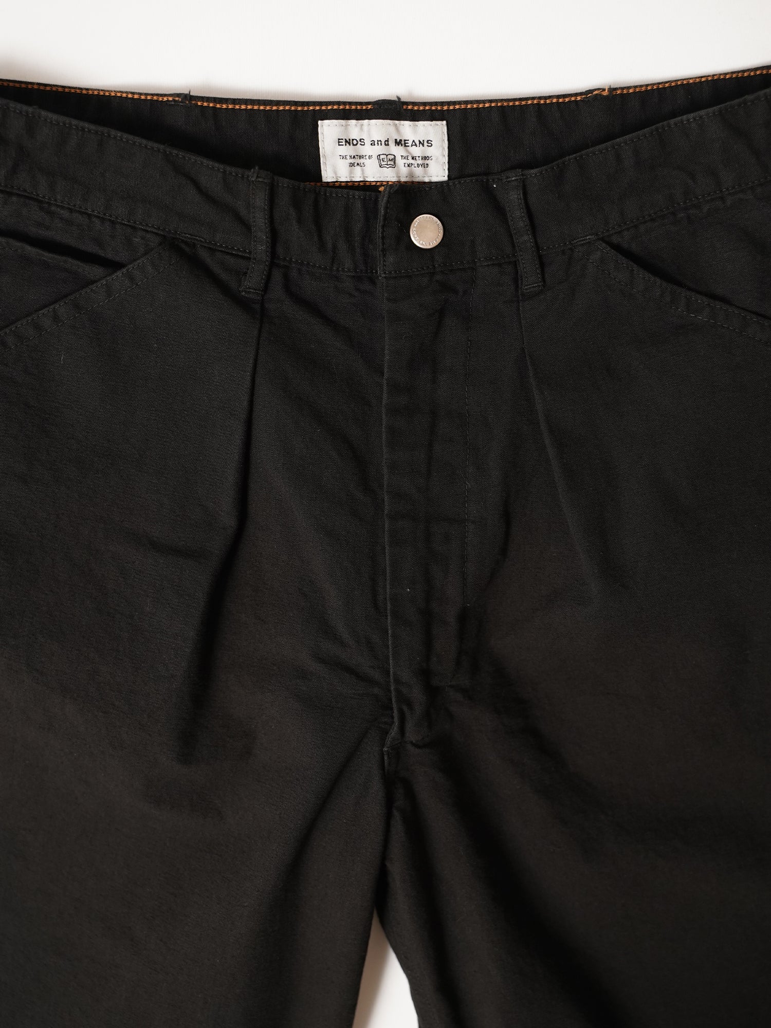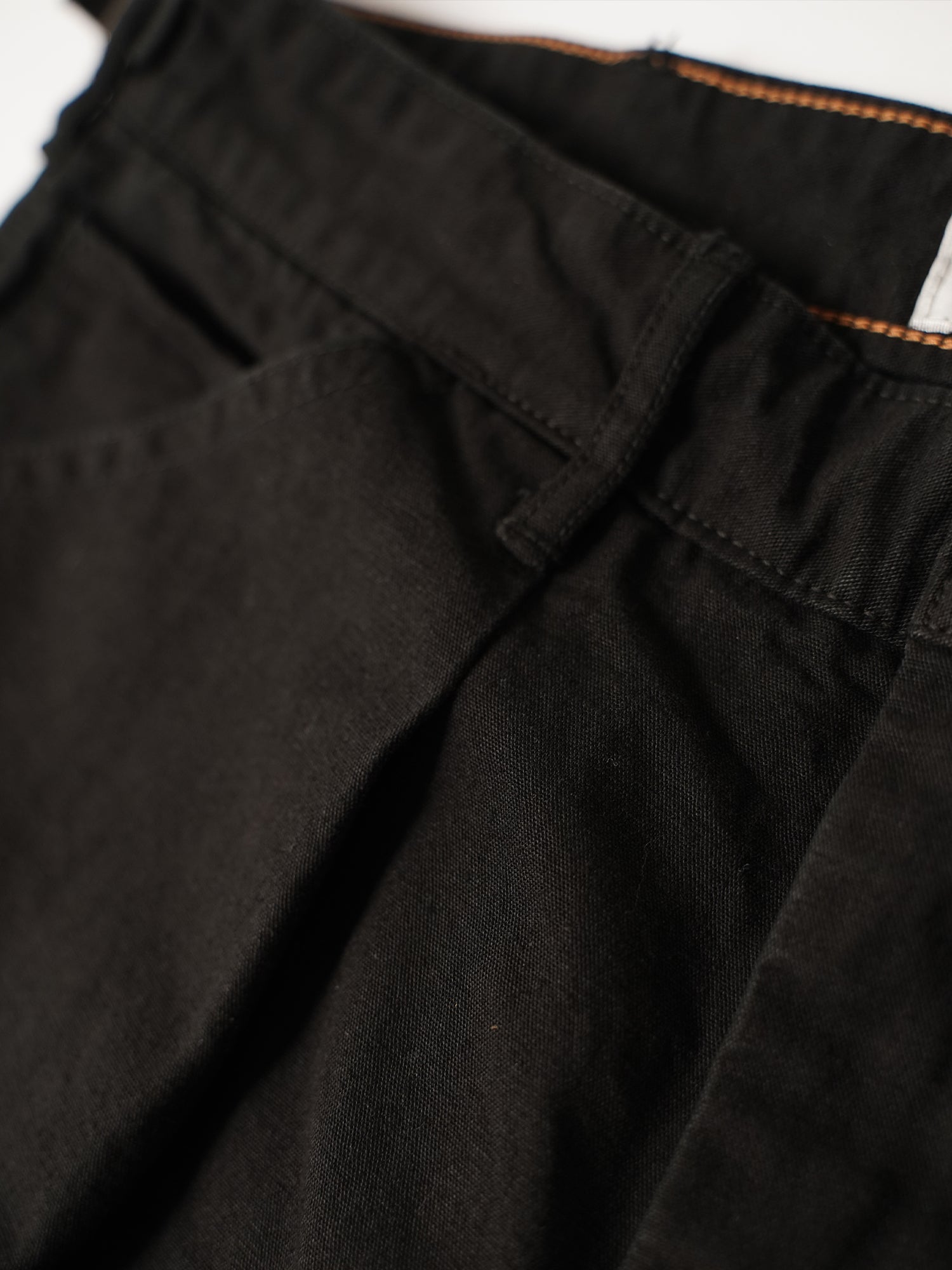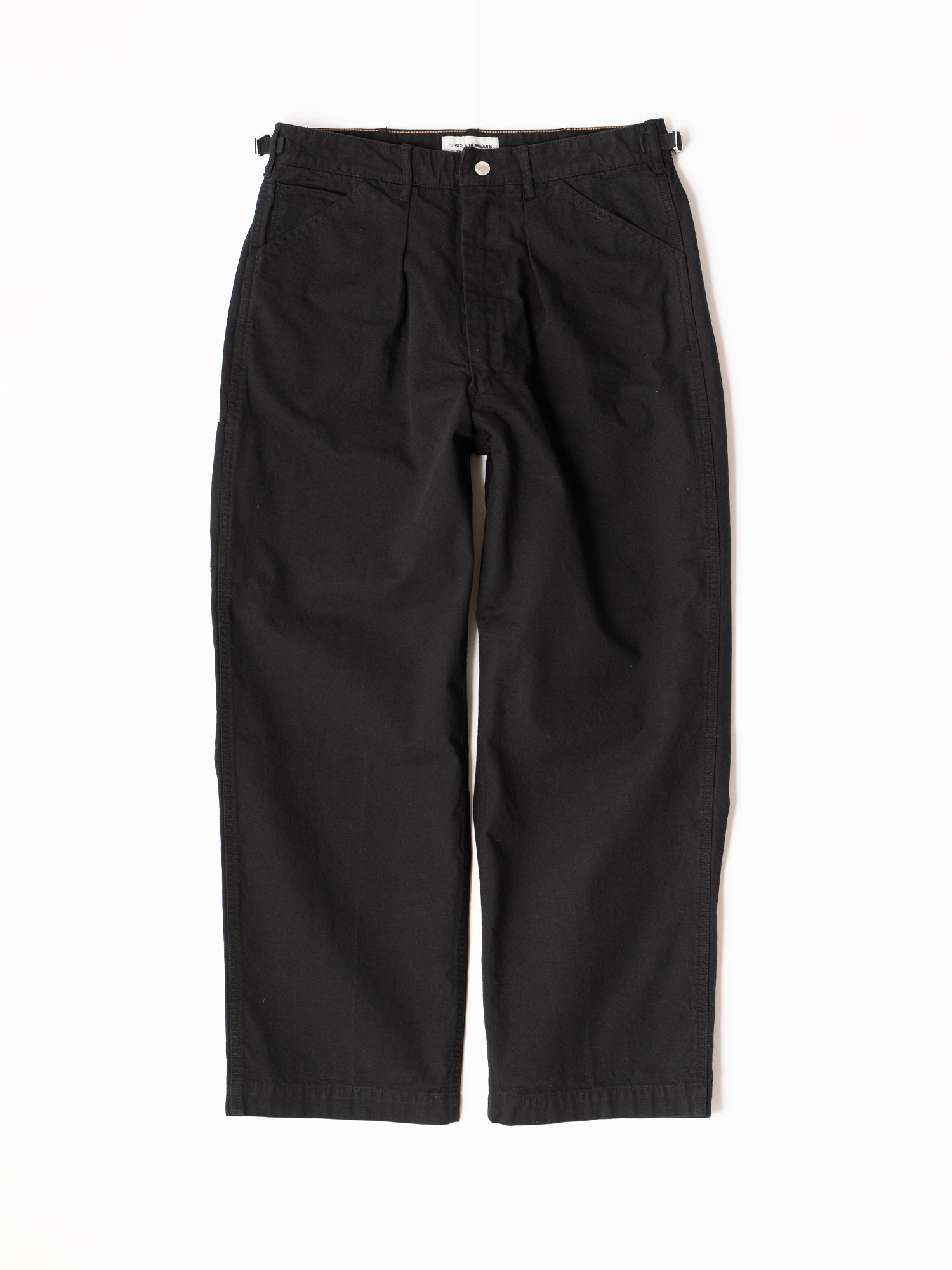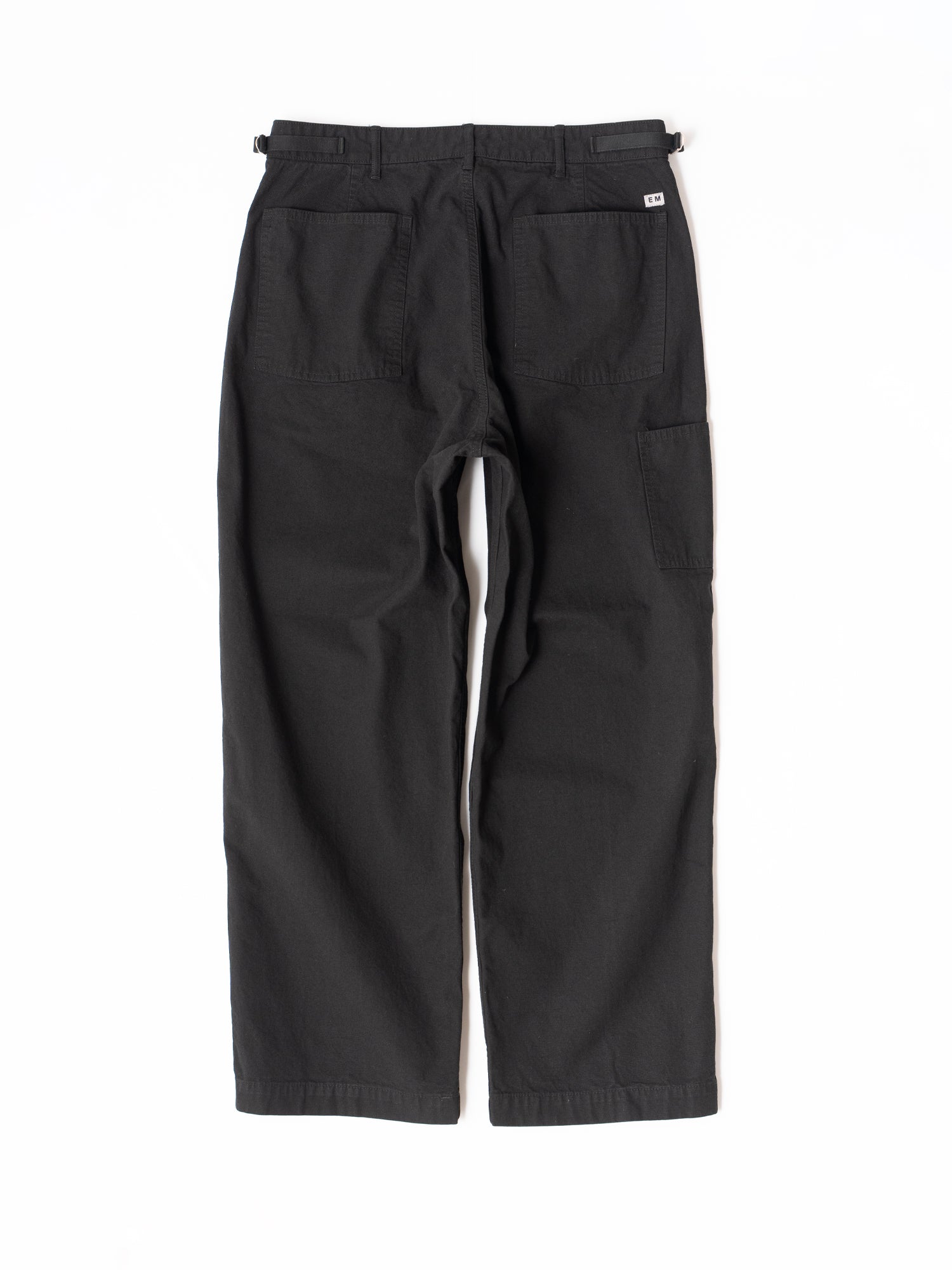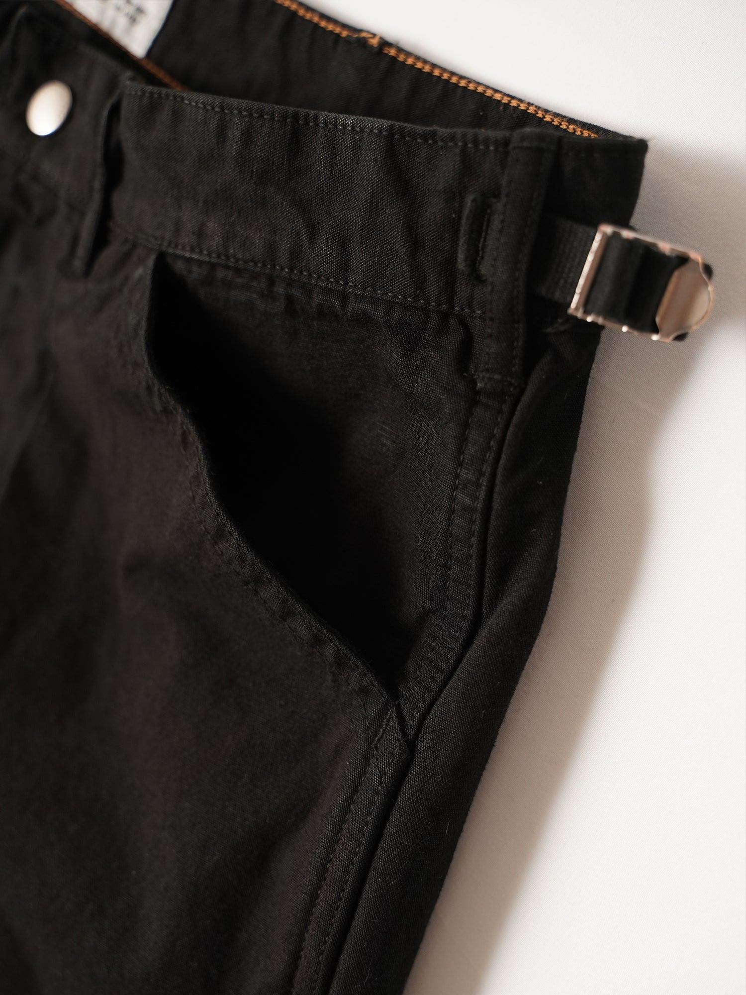 しなやかで品のある強撚オーガニックコットン糸で織り上げたキャンバス生地を使用。腰に付いたアジャスターでベルトレスでも着用可能。