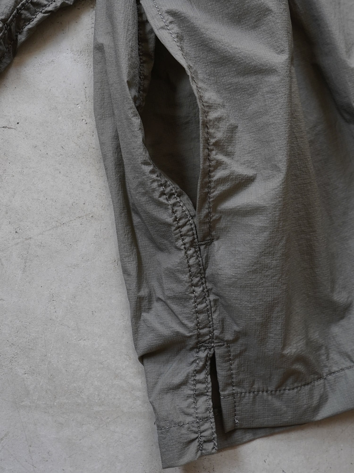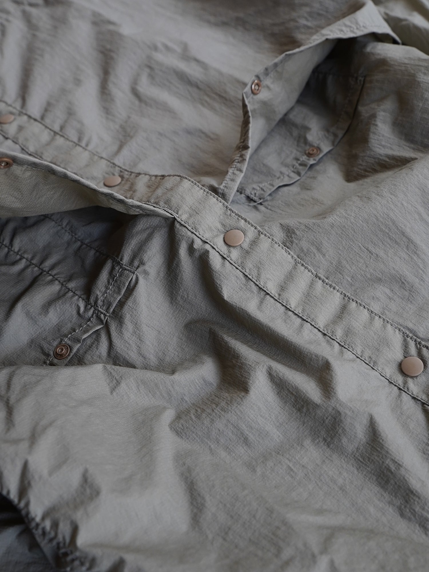 今季はマイクロリップストップを使用。フロントには大きなポケット、内側には小さいポケットが隠れており、収納性に富んでおります。身幅に余裕のある作りでライトアウターとして通年使える便利なアイテムです。