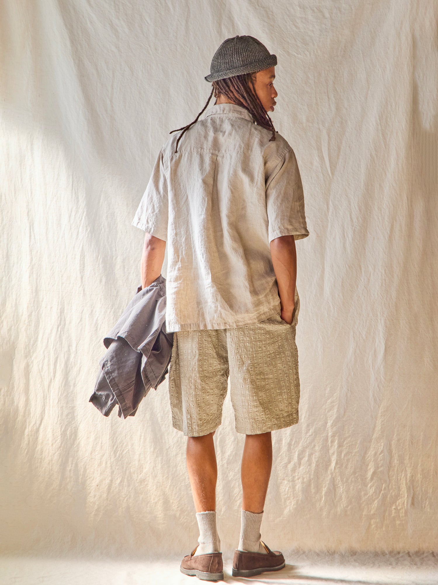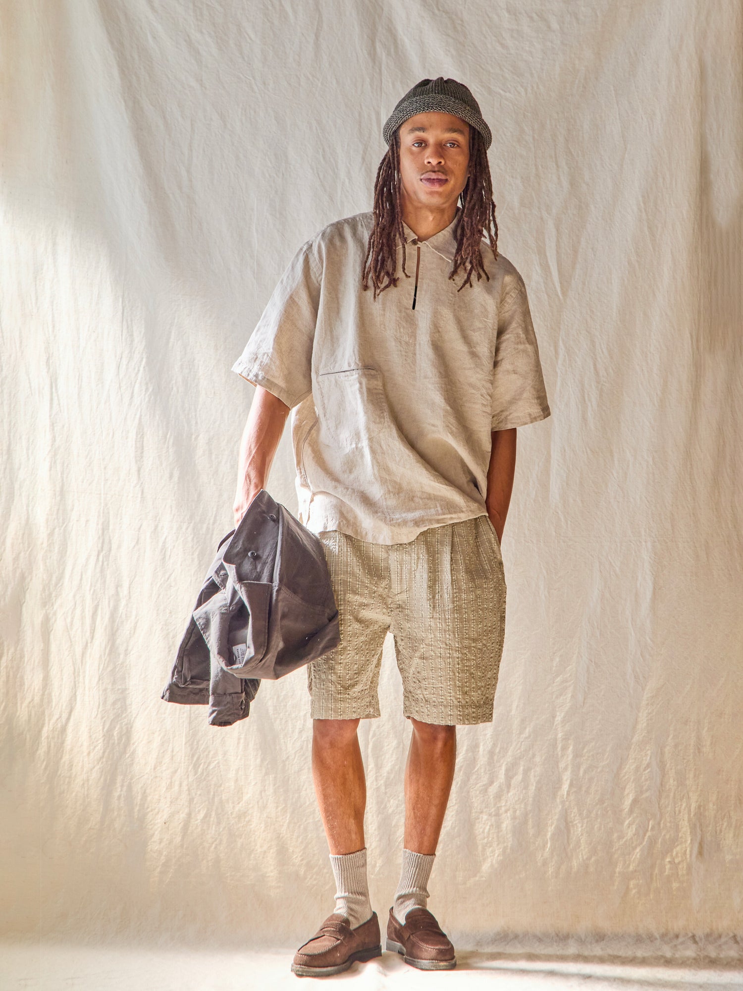 街中に干されている柔らかく清潔なベッドシーツのよう着込む程に味が増すリネンで、育て甲斐のある1着。