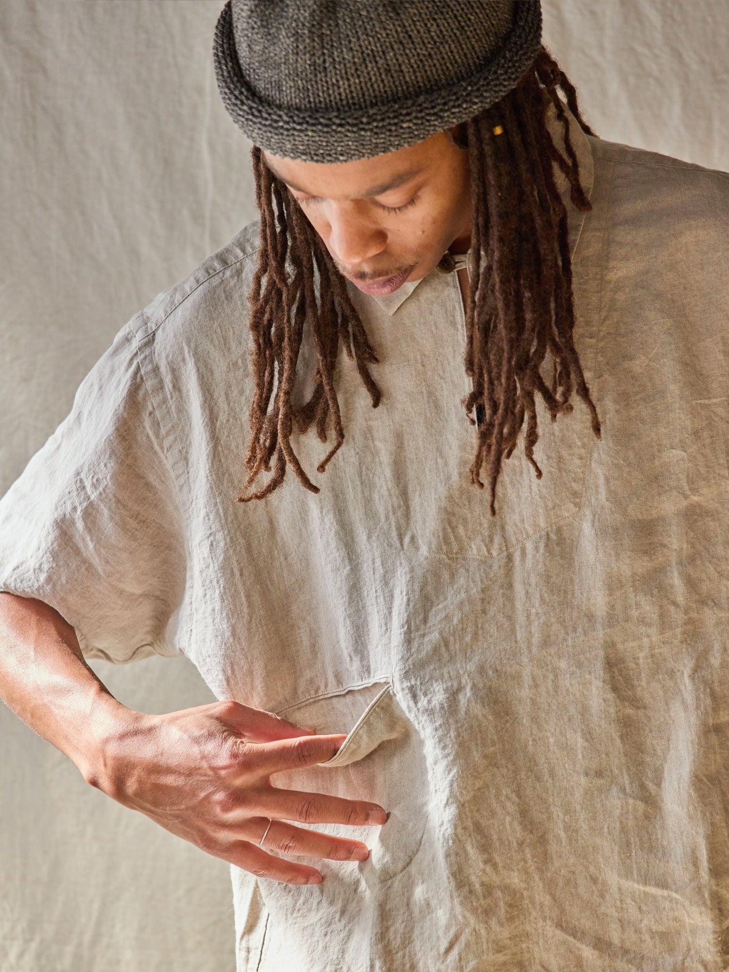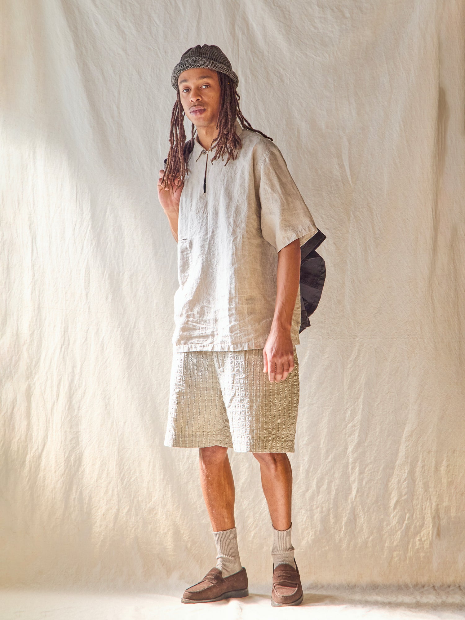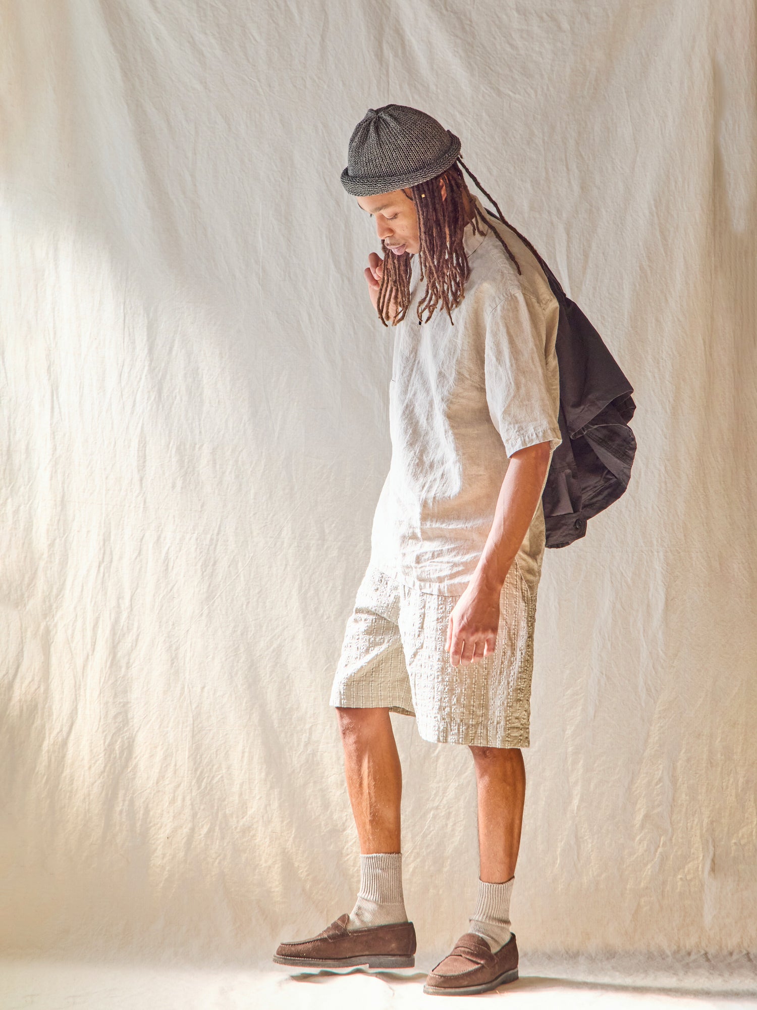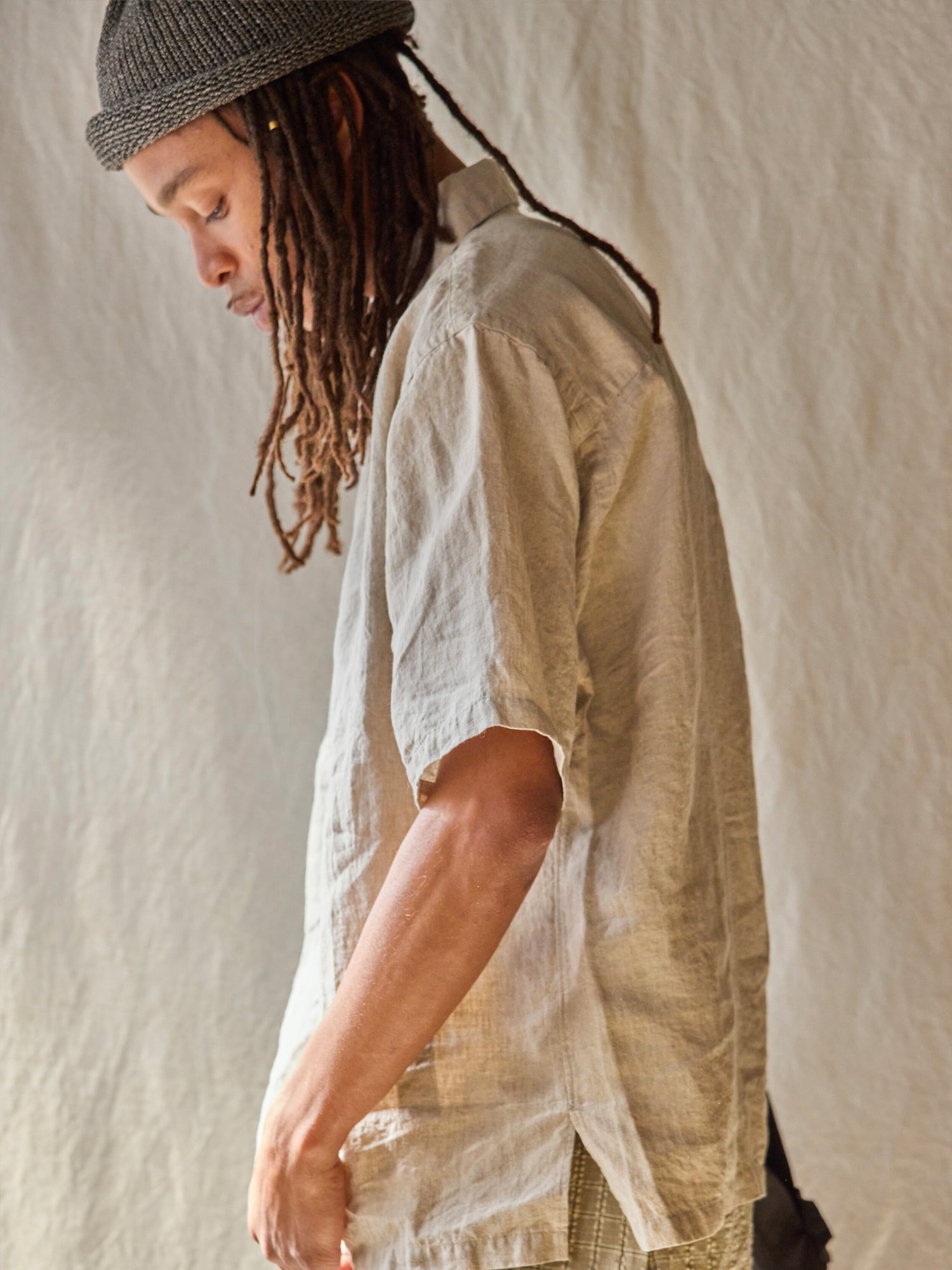 新型のMed shirtsは高密度の平織リネン生地を使用した半袖シャツ。