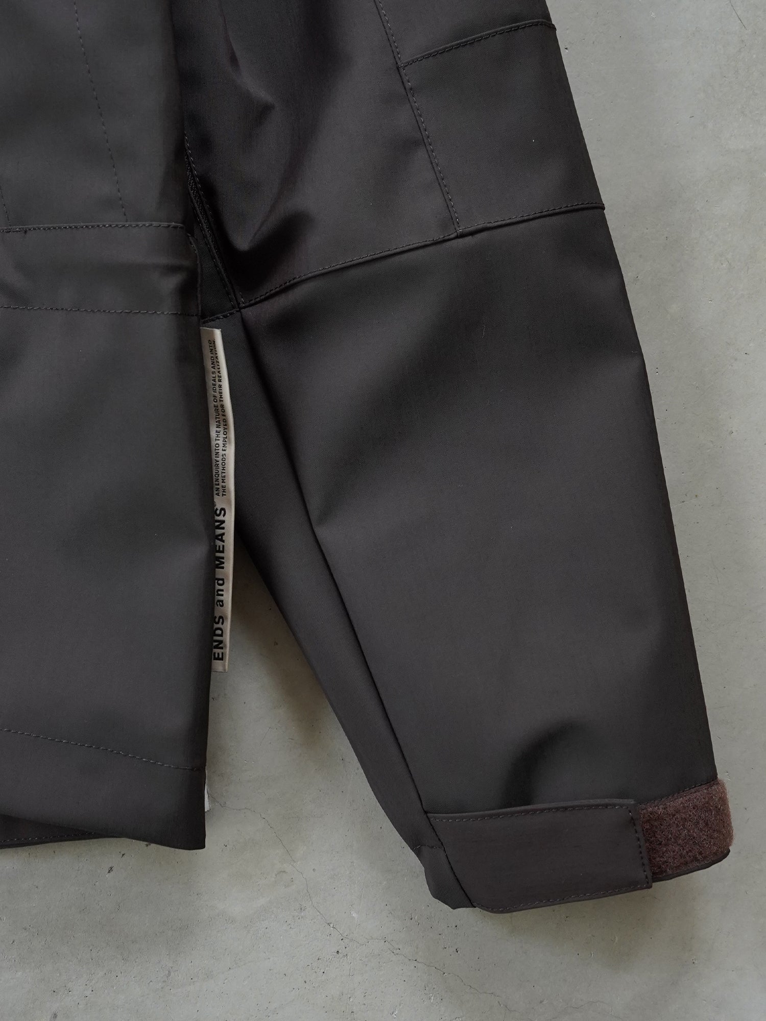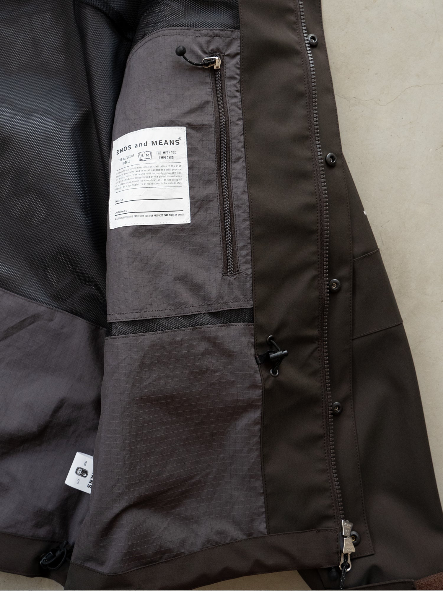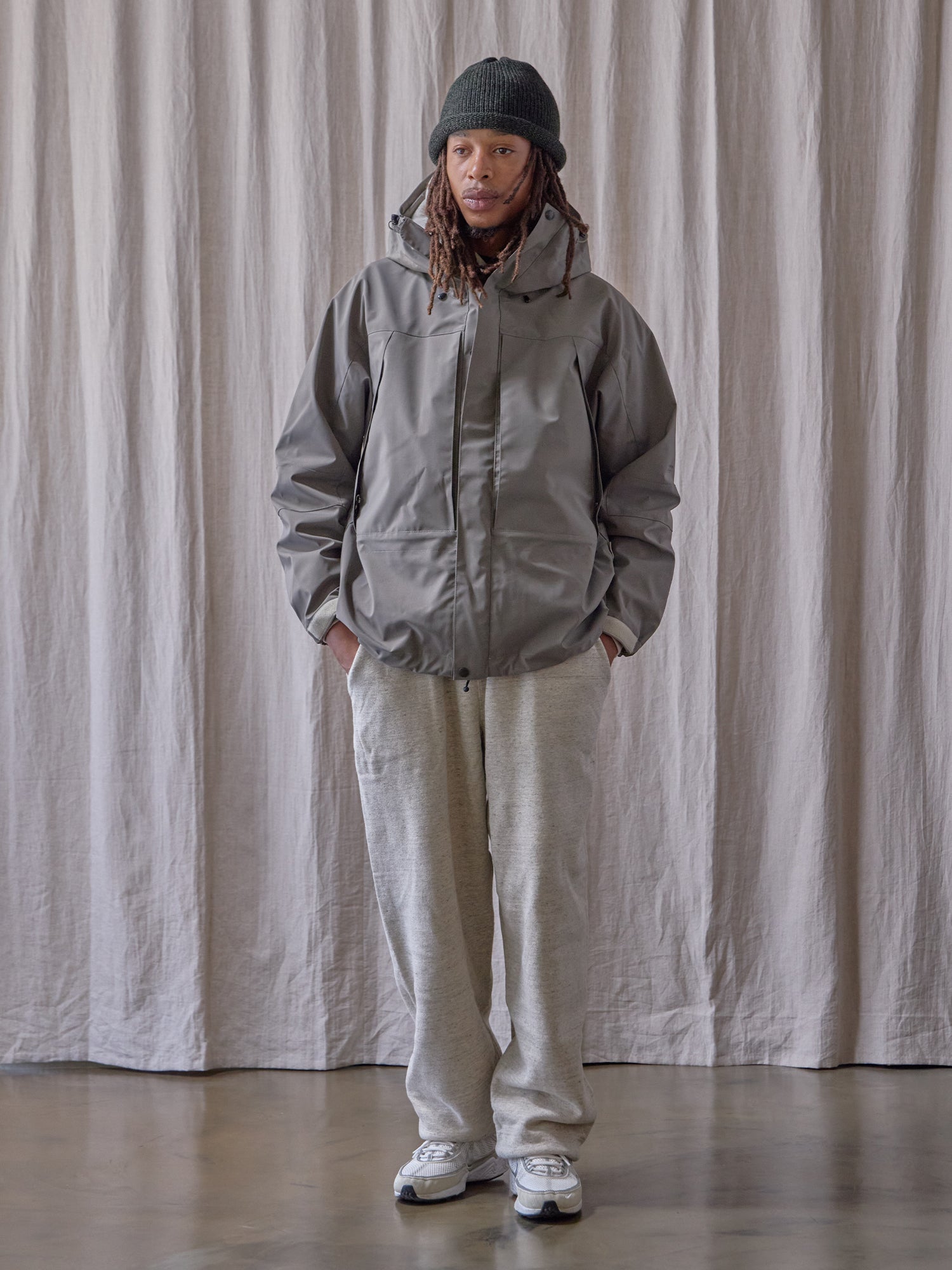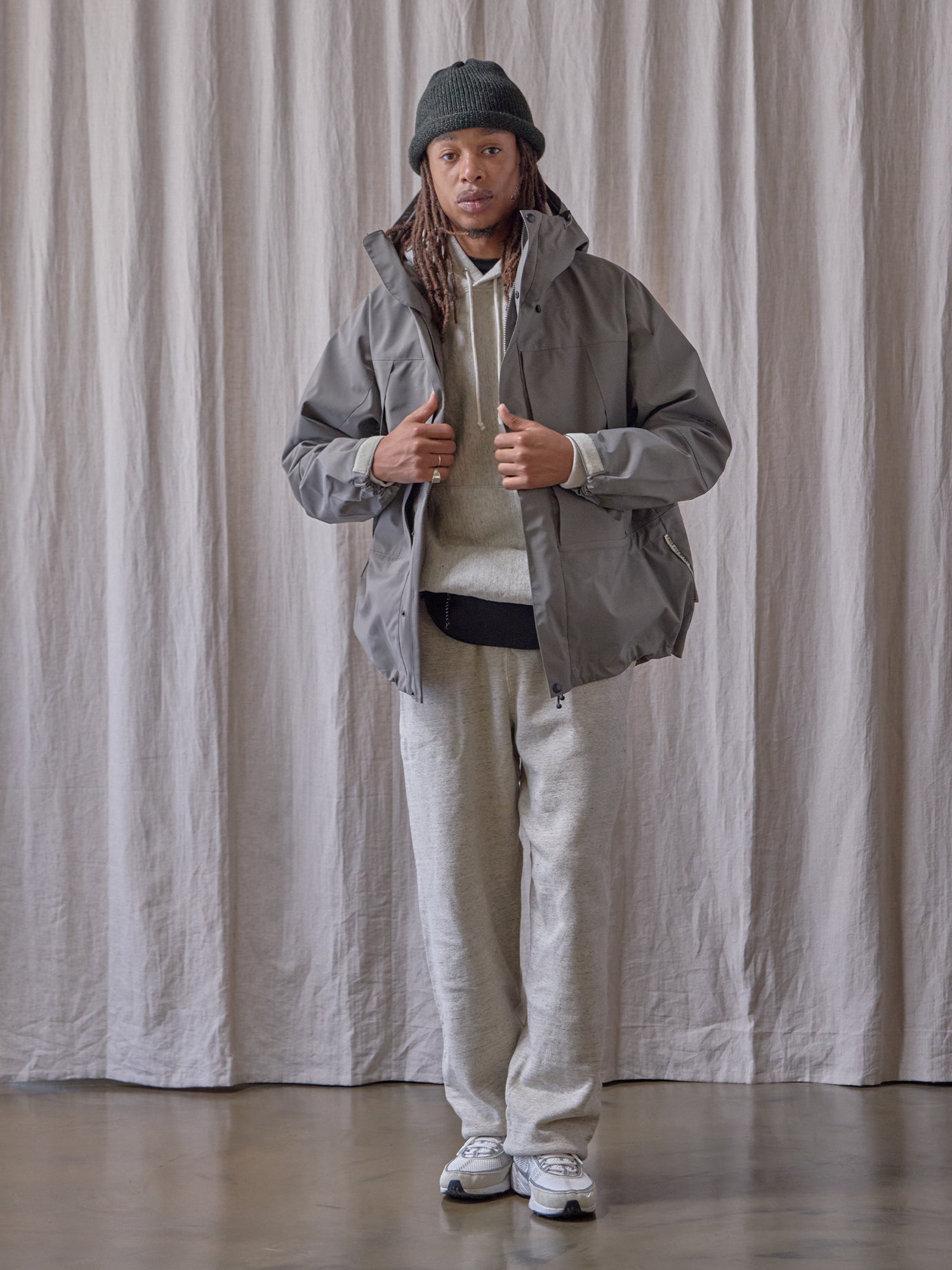 ウールxポリエステルの混紡生地を3レイヤー。ウールの艶感が独特な高級感を醸し出し、少しモードな雰囲気は見る角度によってタマムシのような色の変化を楽しめます。内側はリップストップとメッシュのポリエステル生地。脇はWジップによる開閉ベンチレーションを搭載。内外5つのポケット完備。機能的にも申し分ないディテールを搭載。フードの立ち、身幅、着丈のバランス感、着用時のシルエット、実用性などを数年研究し、影響を受けた90年代のアウトドアスタイルを細部に踏襲。EMの哲学を落とし込んだプロダクト。