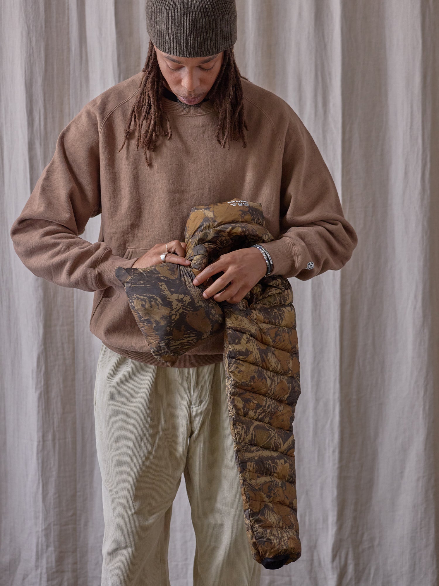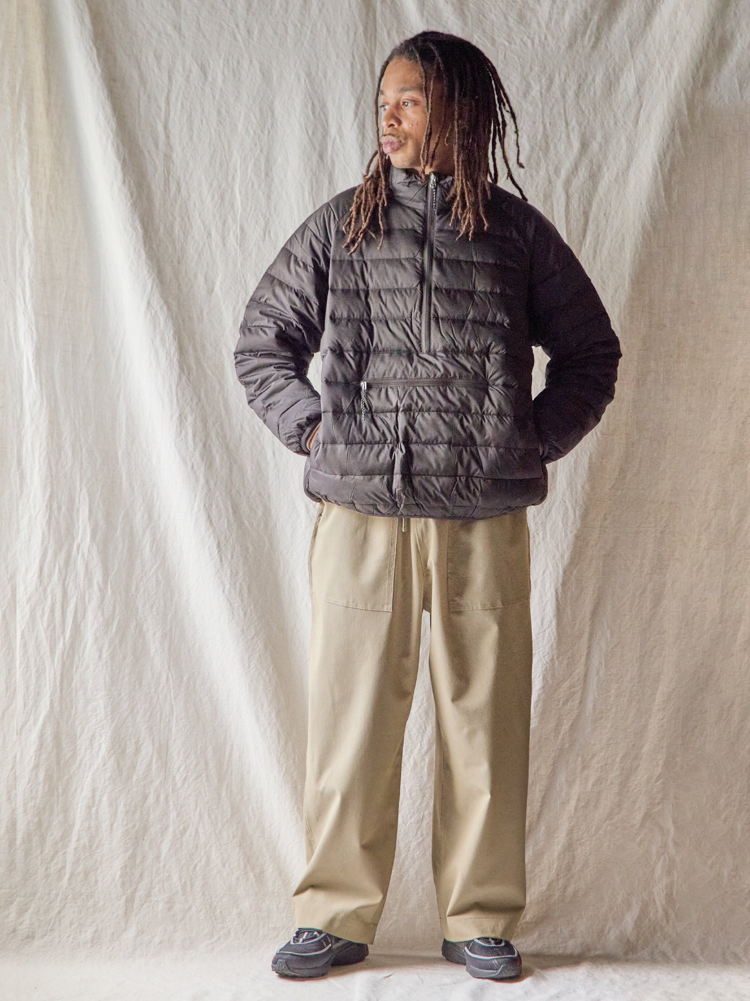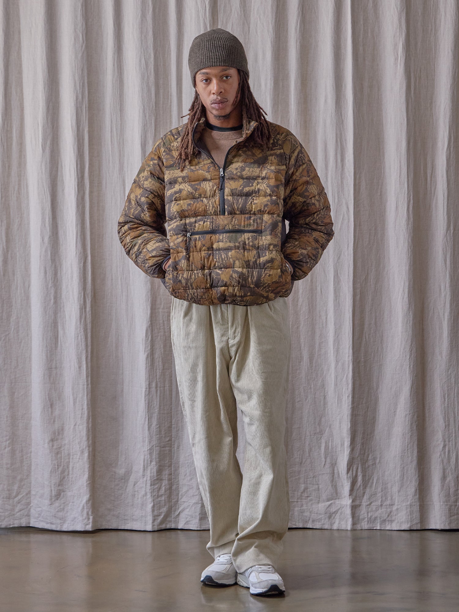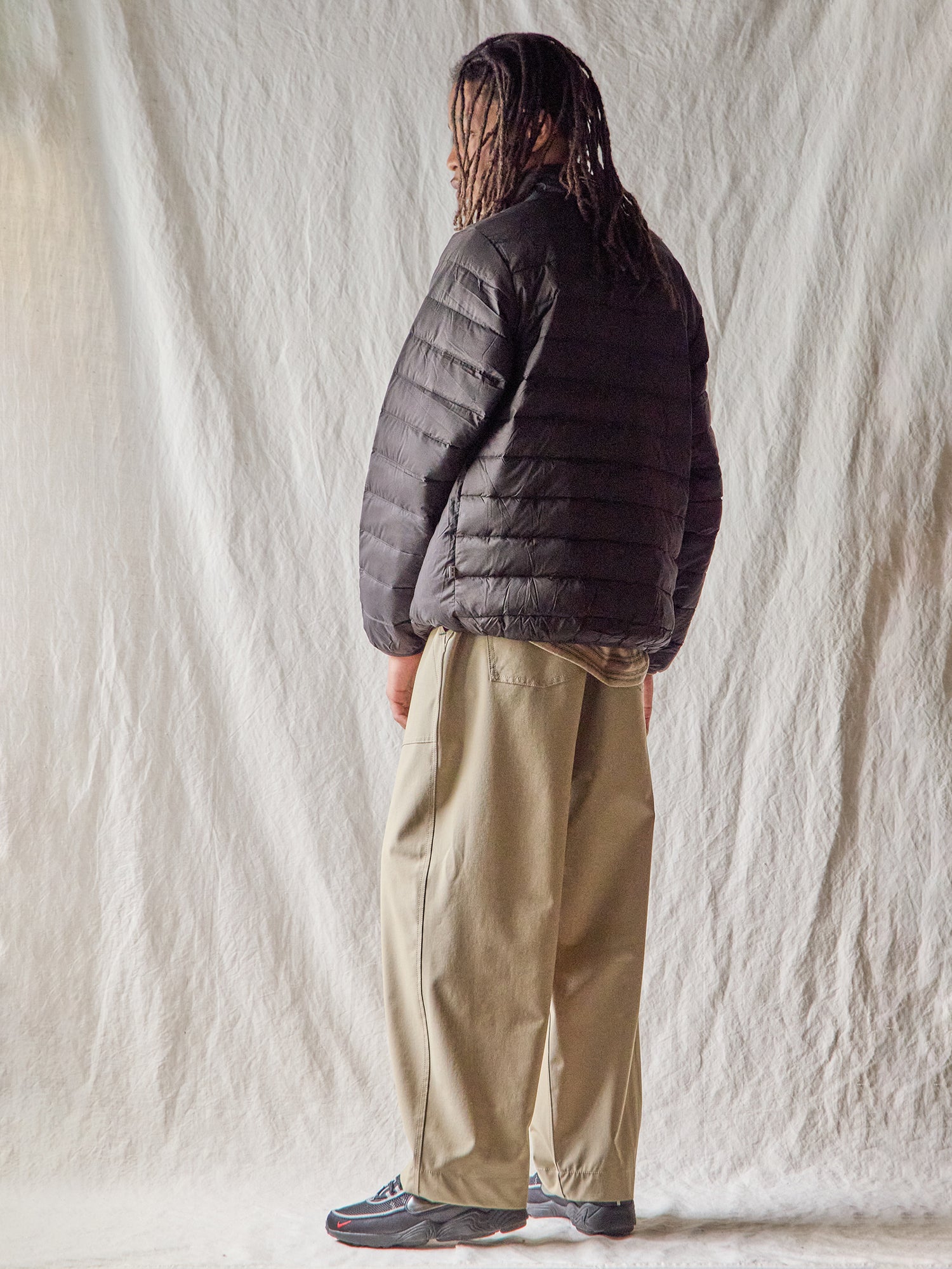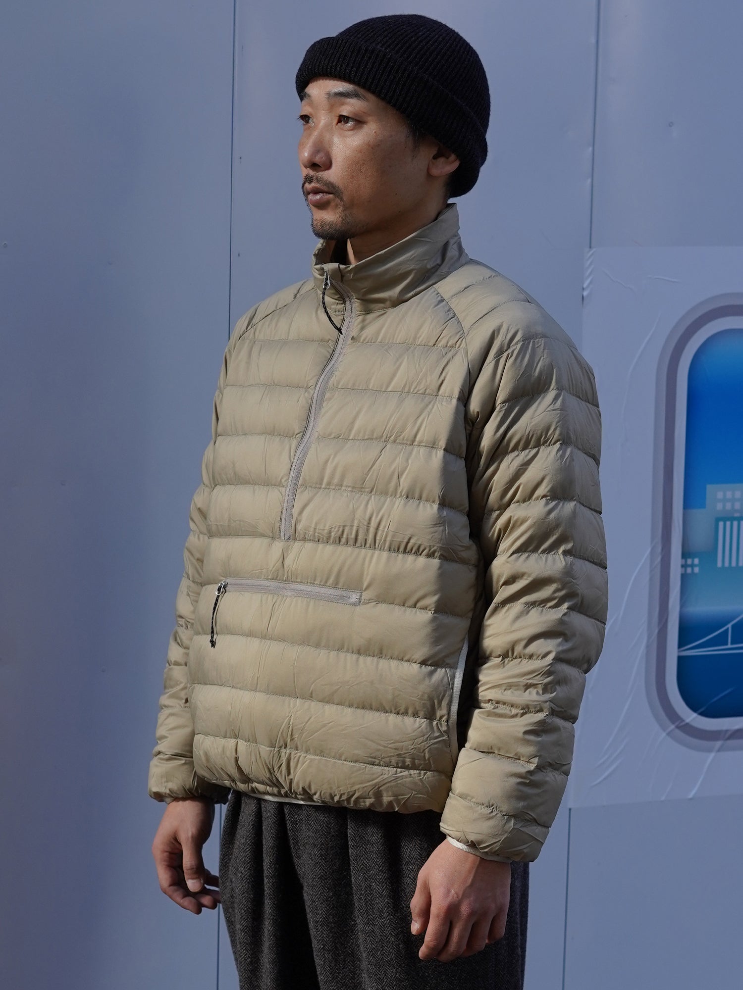 身幅に余裕を持たせ、薄手のマイクロリップストップを使用したEM初のLight Down Jacket。パッカブル仕様で旅行時や日常でも重宝する1着。