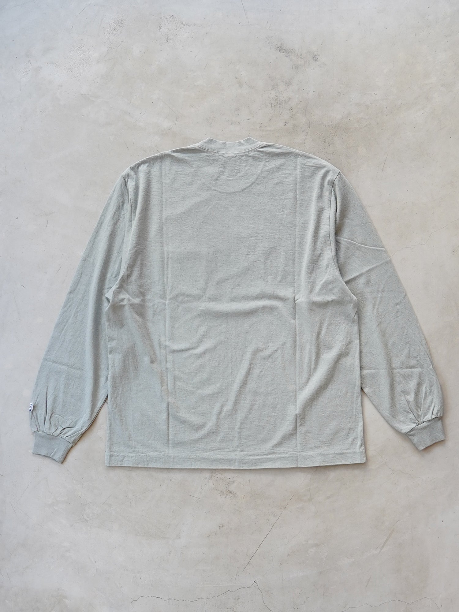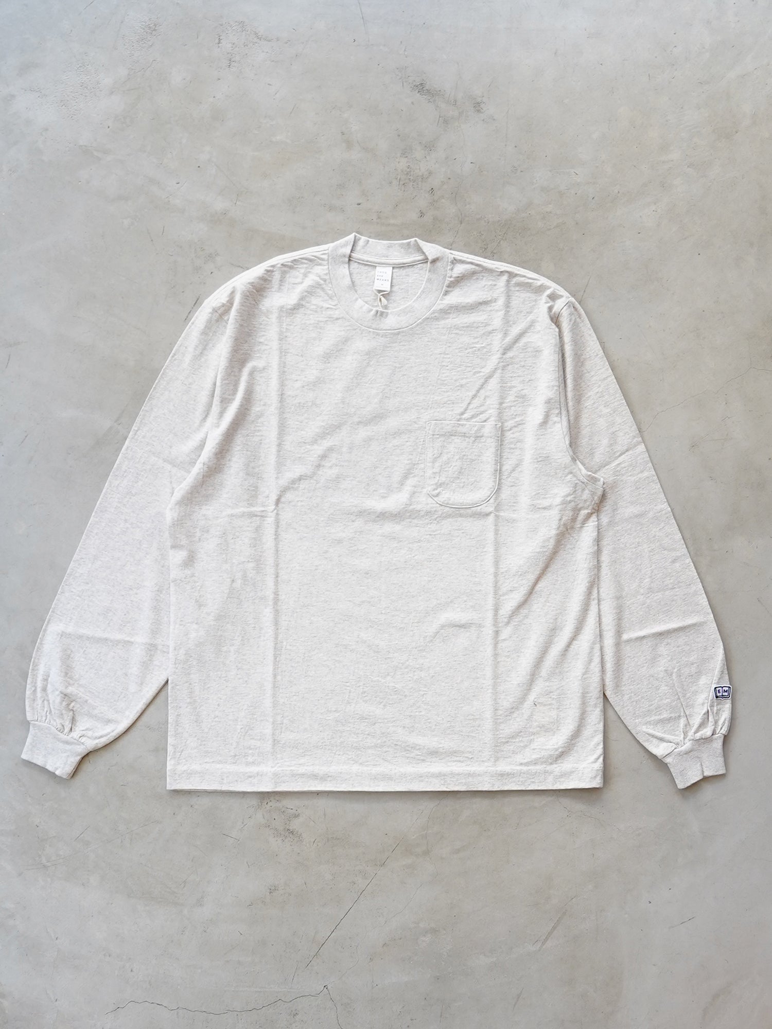 定番のポケットL/S tee。安心の流行り廃りのない形。拘りのネック部分は初めはタイトですが、着て行くうちに馴染むよう設計されております。