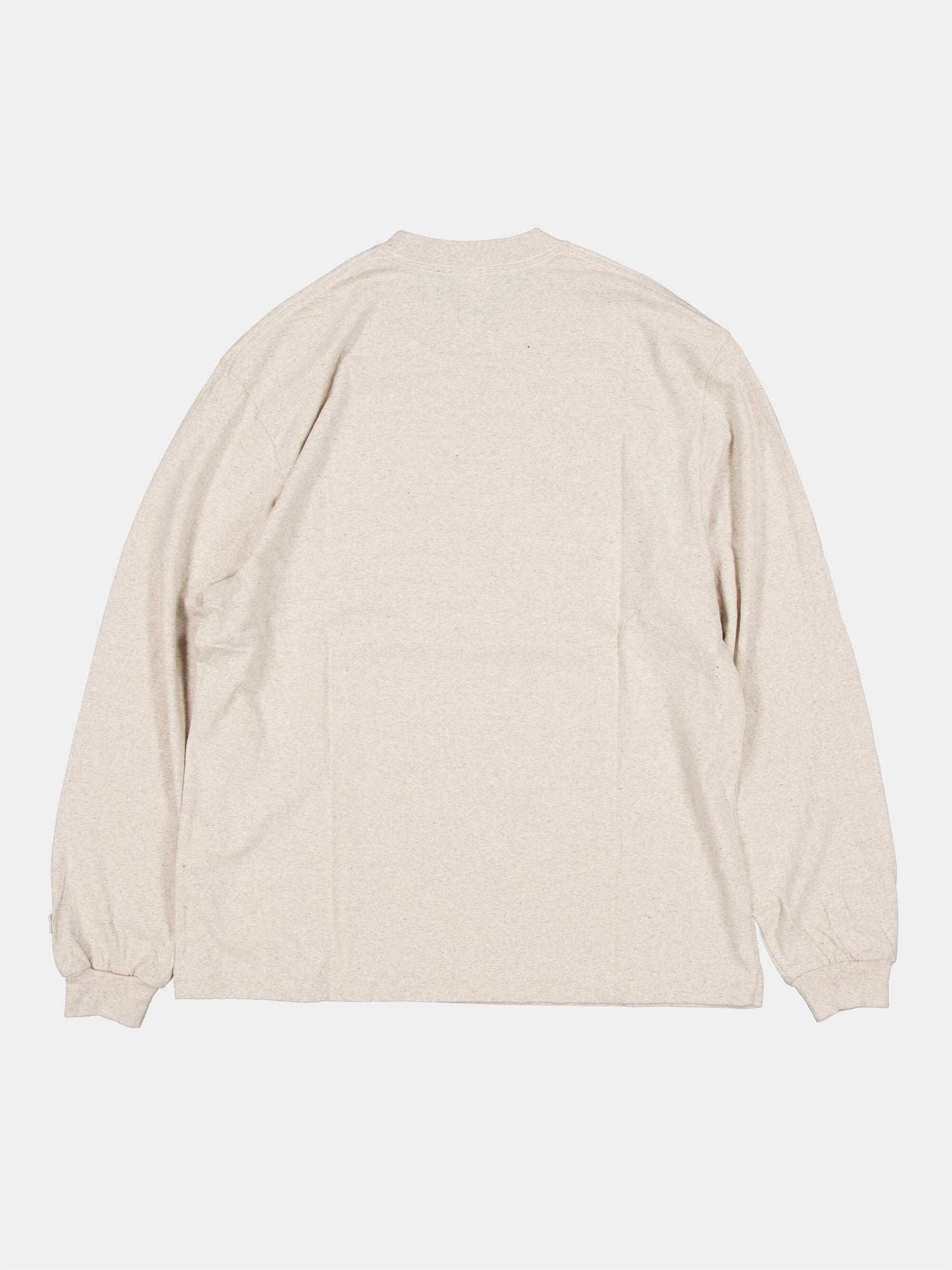 定番のポケットL/S tee。安心の流行り廃りのない形。拘りのネック部分は初めはタイトですが、着て行くうちに馴染むよう設計されております。オーガニックコットンとリサイクルコットンのブレンド糸使用。