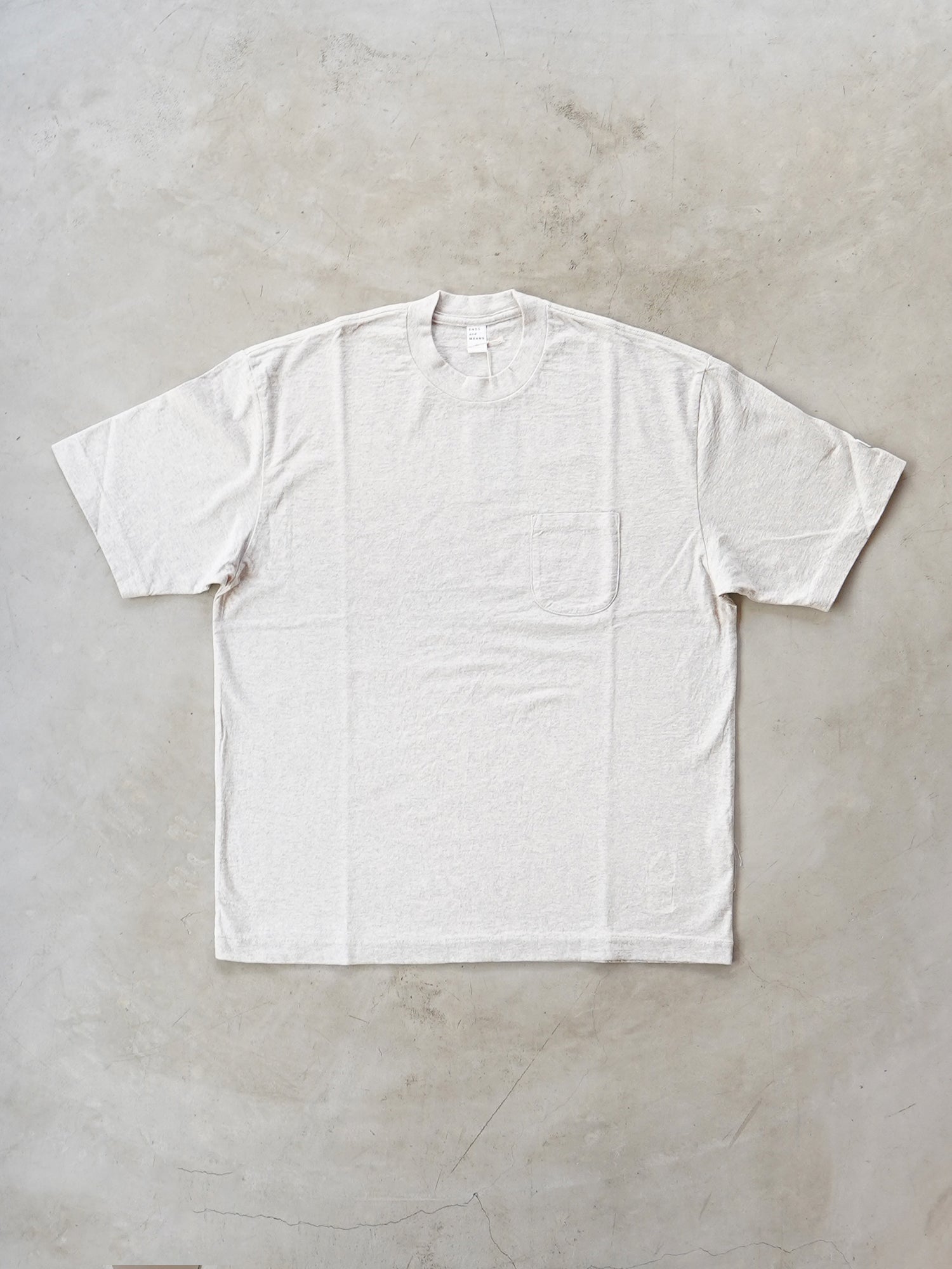 定番のポケットS/S tee。安心の流行り廃りのない形。拘りのネック部分は初めはタイトですが、着て行くうちに馴染むよう設計されております。