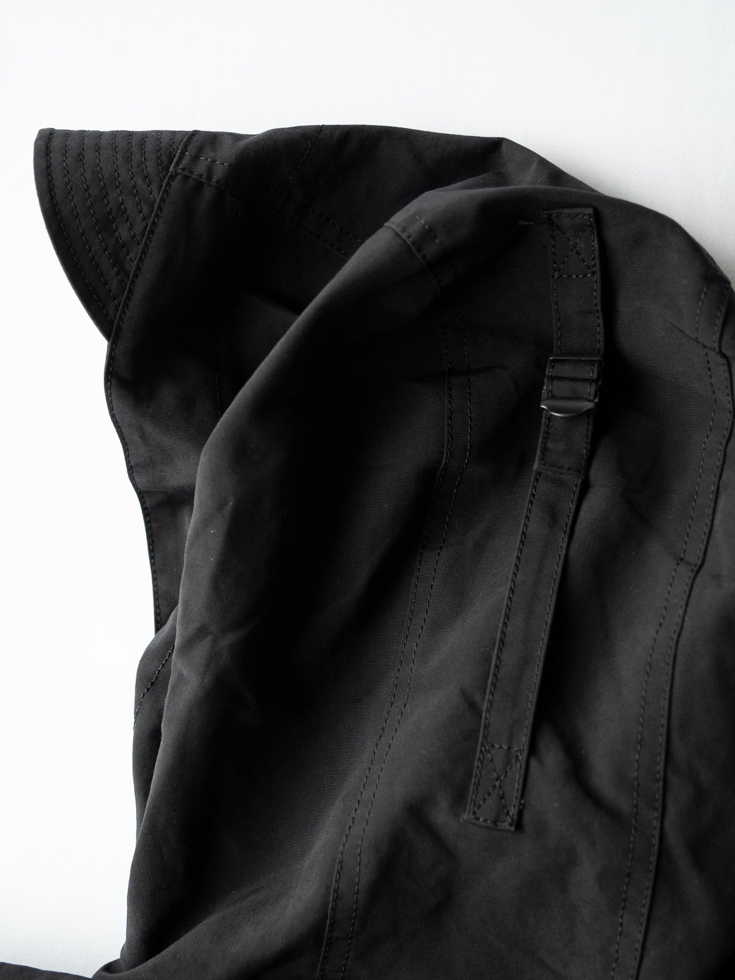 防寒性が高いので中に当社のQuilting vestや厚手のニットなどを着れば真冬でも快適に過ごせ、裾、腰などをスピンドルで絞れるので様々な着方が楽しめる1着。
