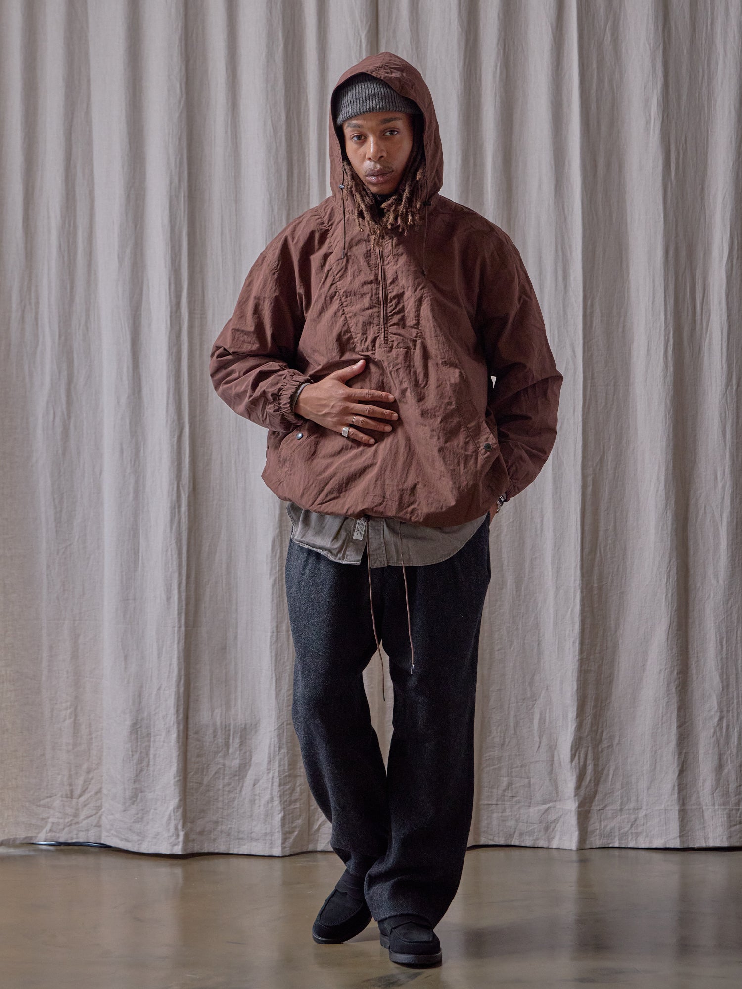 表地は張り感のあるコットンナイロン、裏地にはハイテクメッシュのOCTA CPCPを使用し、背面にジップ付きのポケットが追加されたアップデートされた秋冬バージョンのAnorak Jacket。
