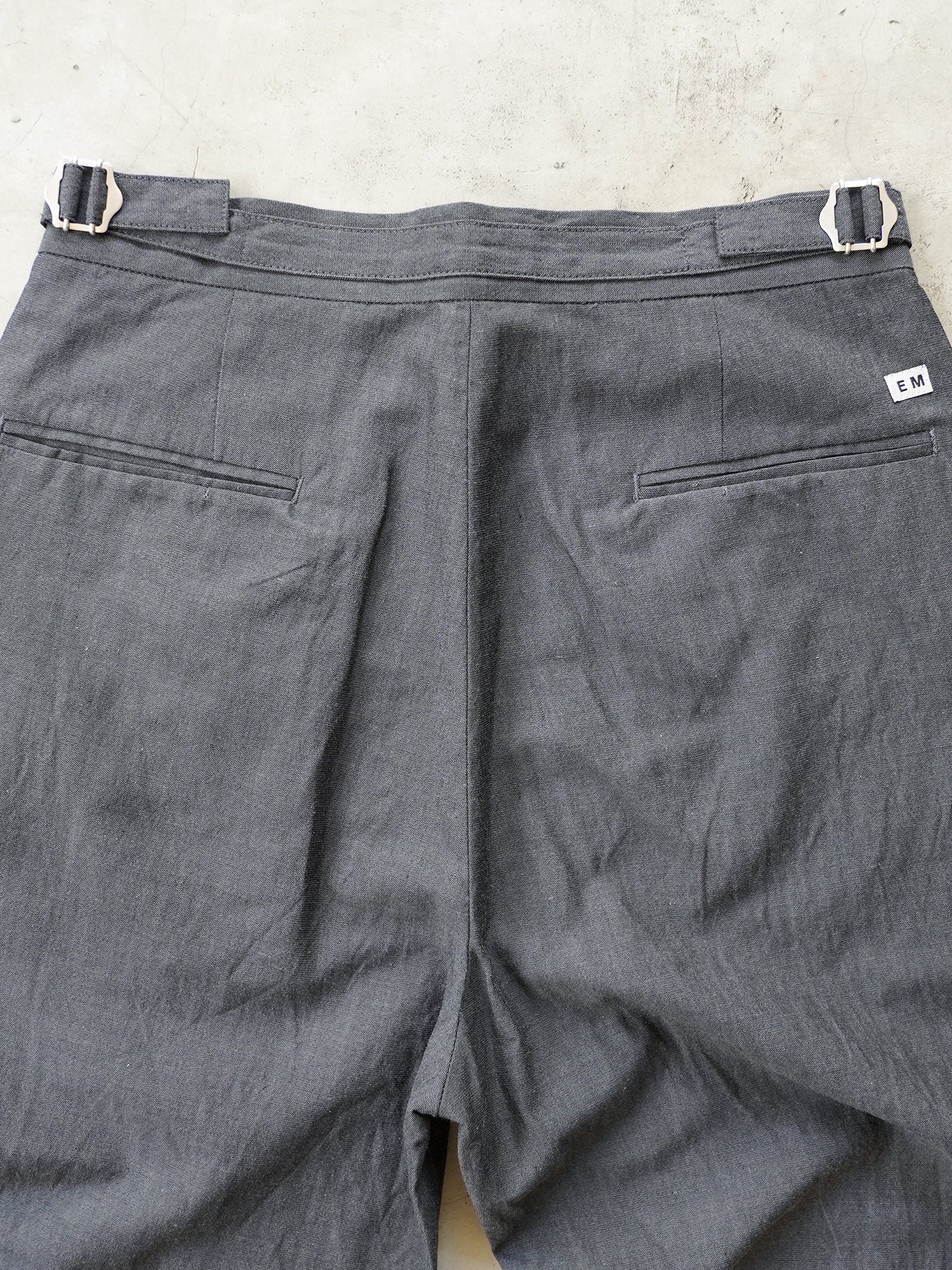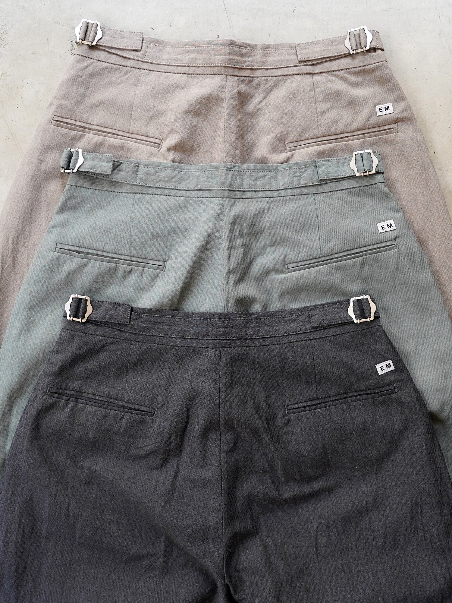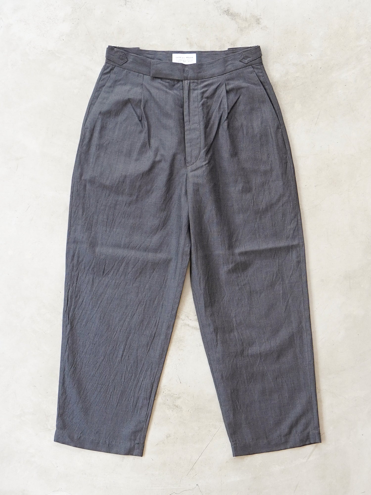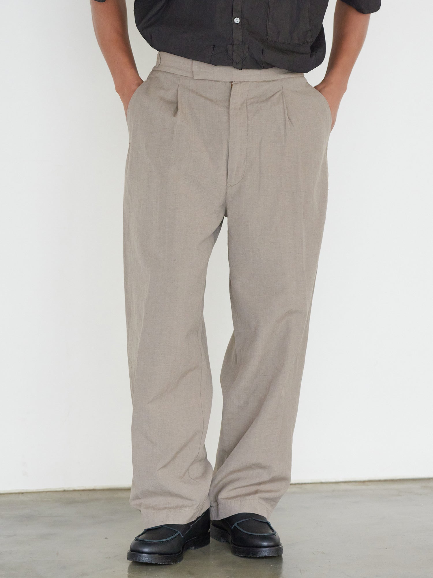 サイドアジャスターでサイズ調整可能なベルトレストラウザー。ワンタックで腰周り、ワタリに余裕のあるリラックスフィット。