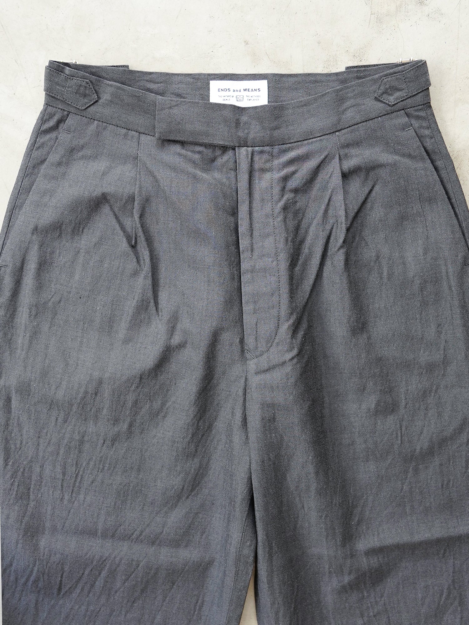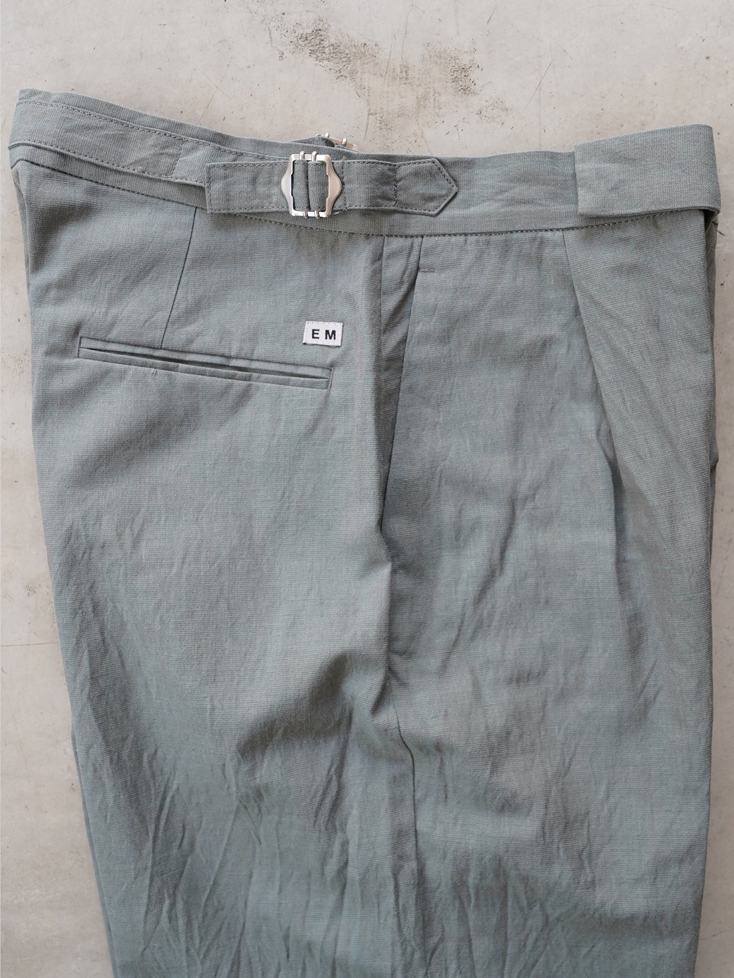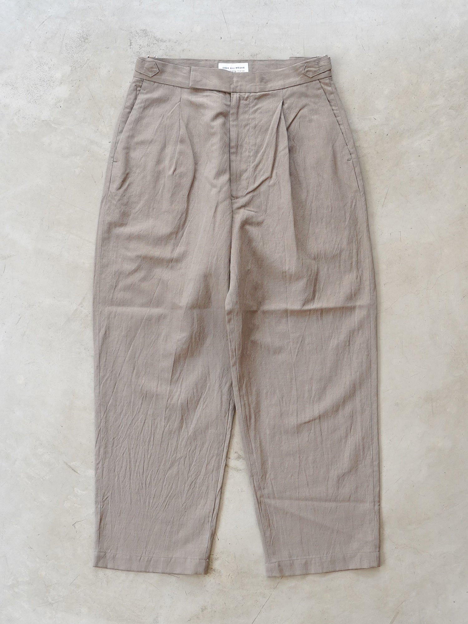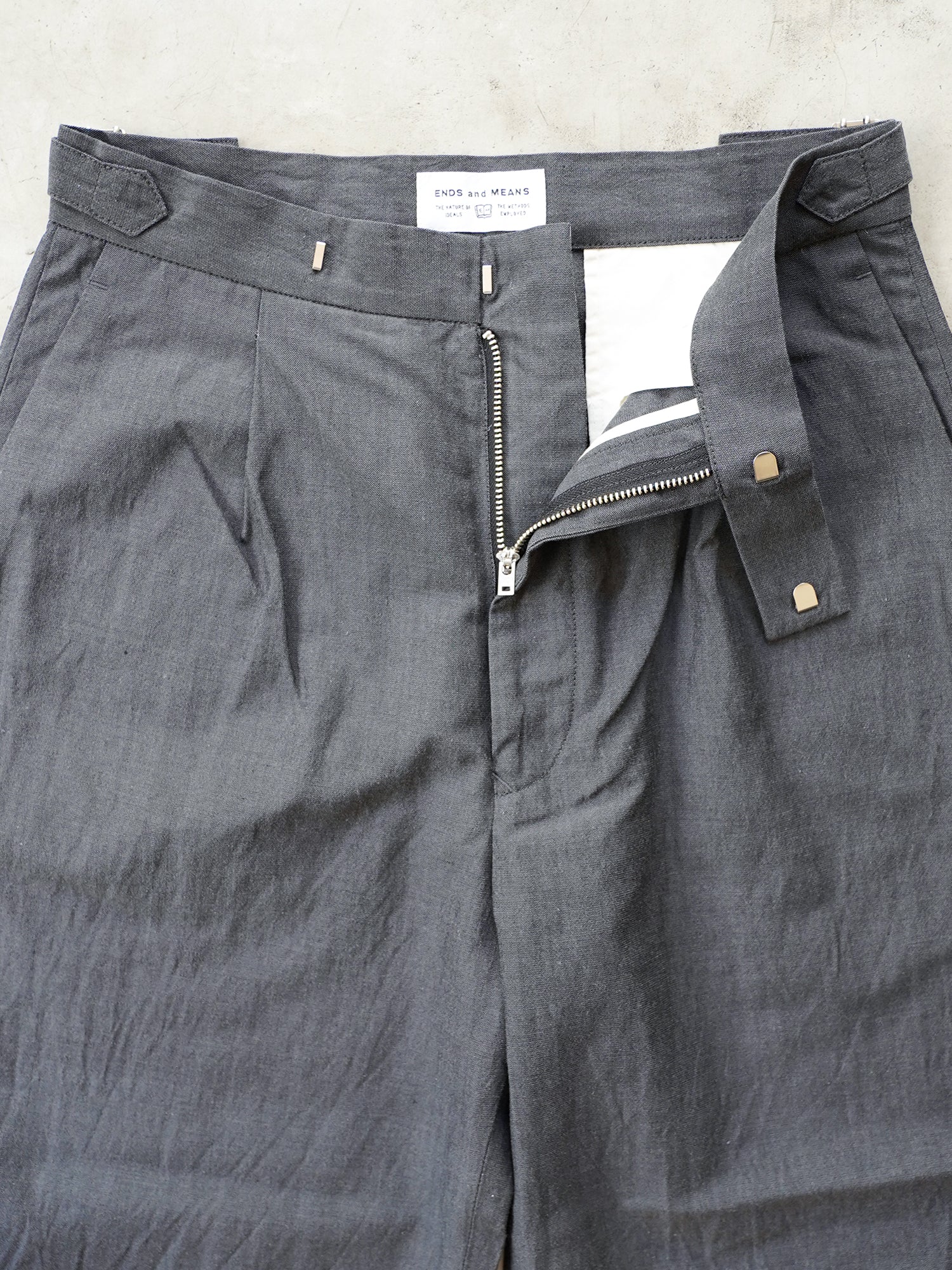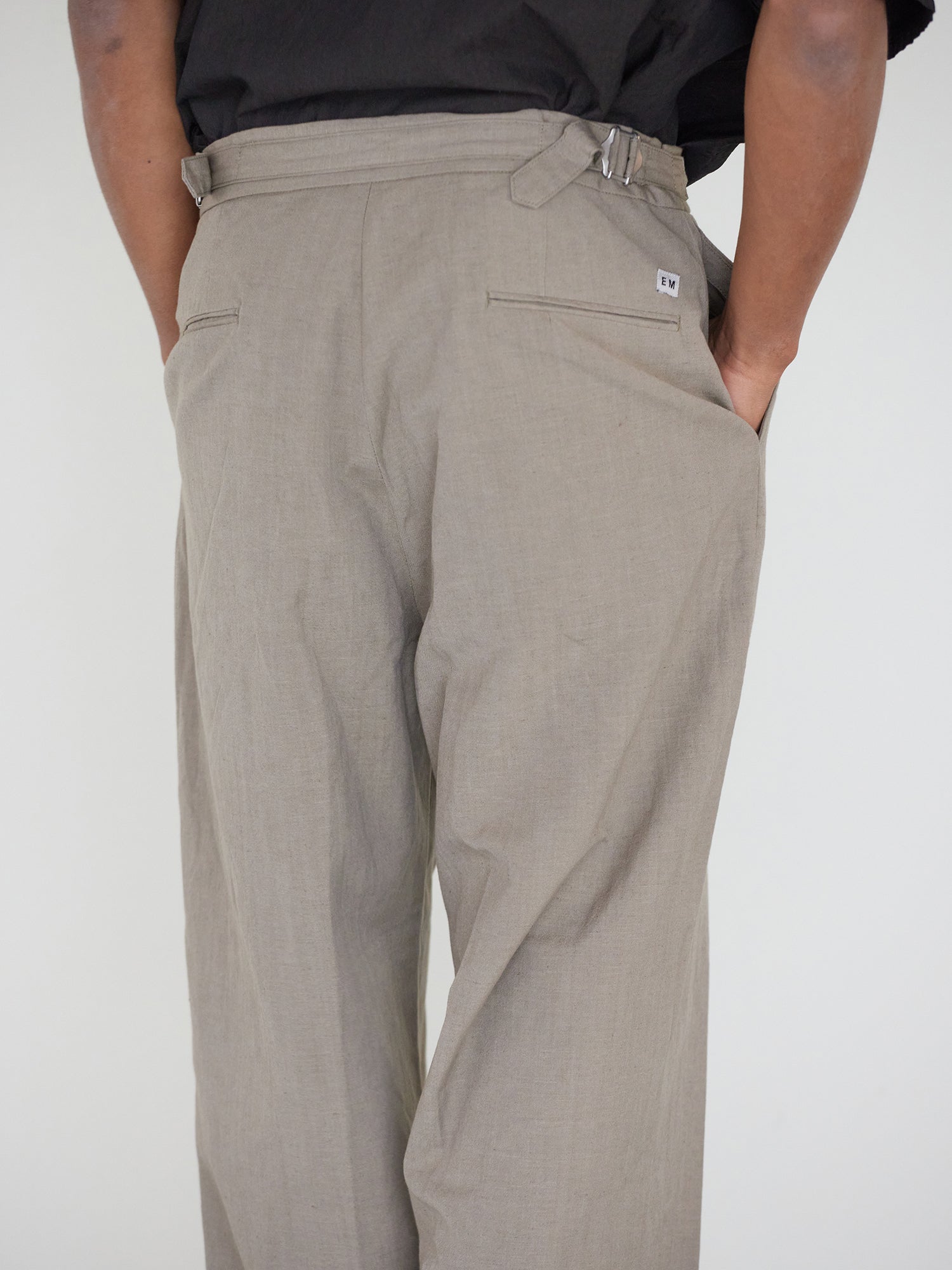 サイドアジャスターでサイズ調整可能なベルトレストラウザー。ワンタックで腰周り、ワタリに余裕のあるリラックスフィット。