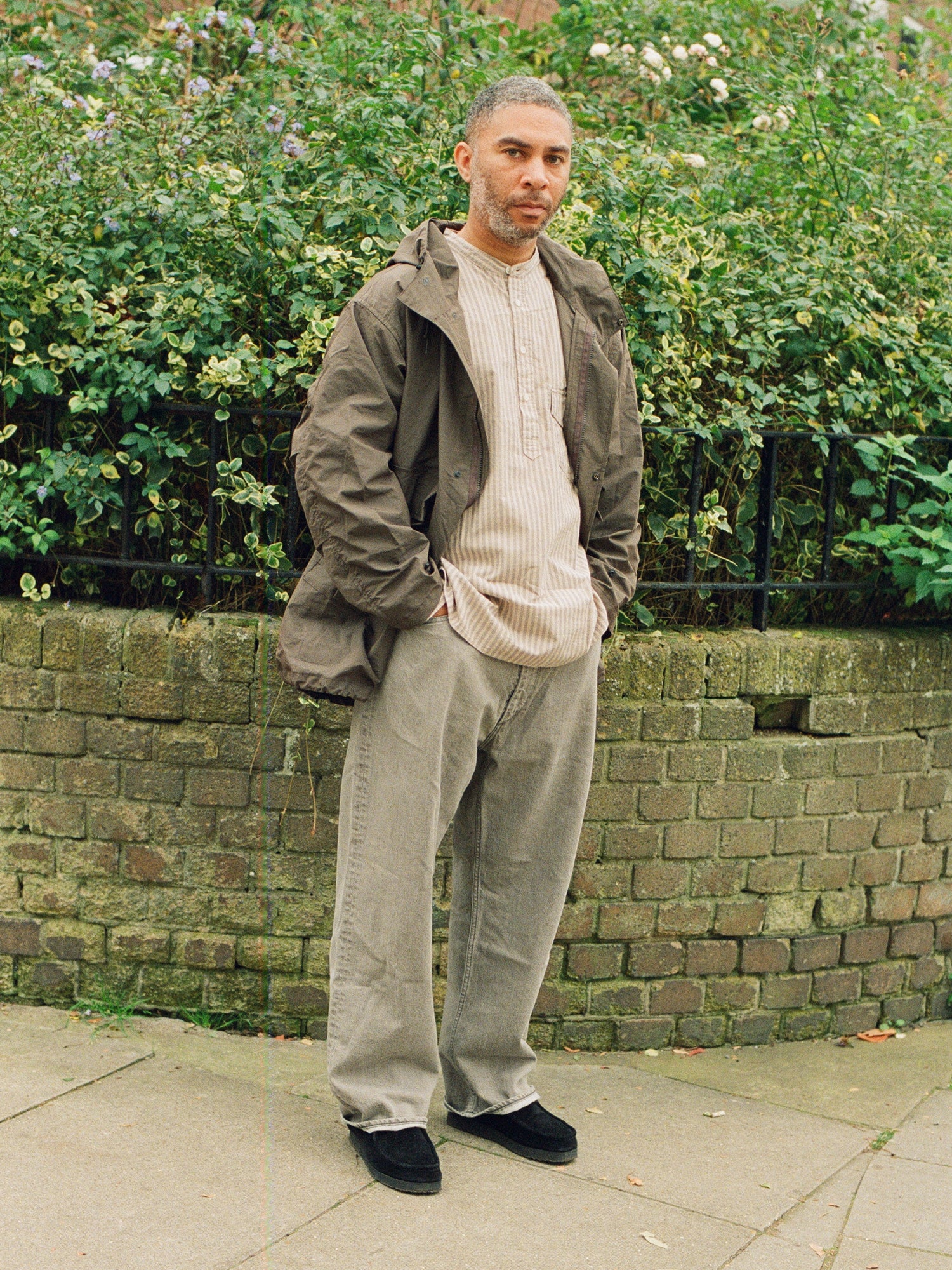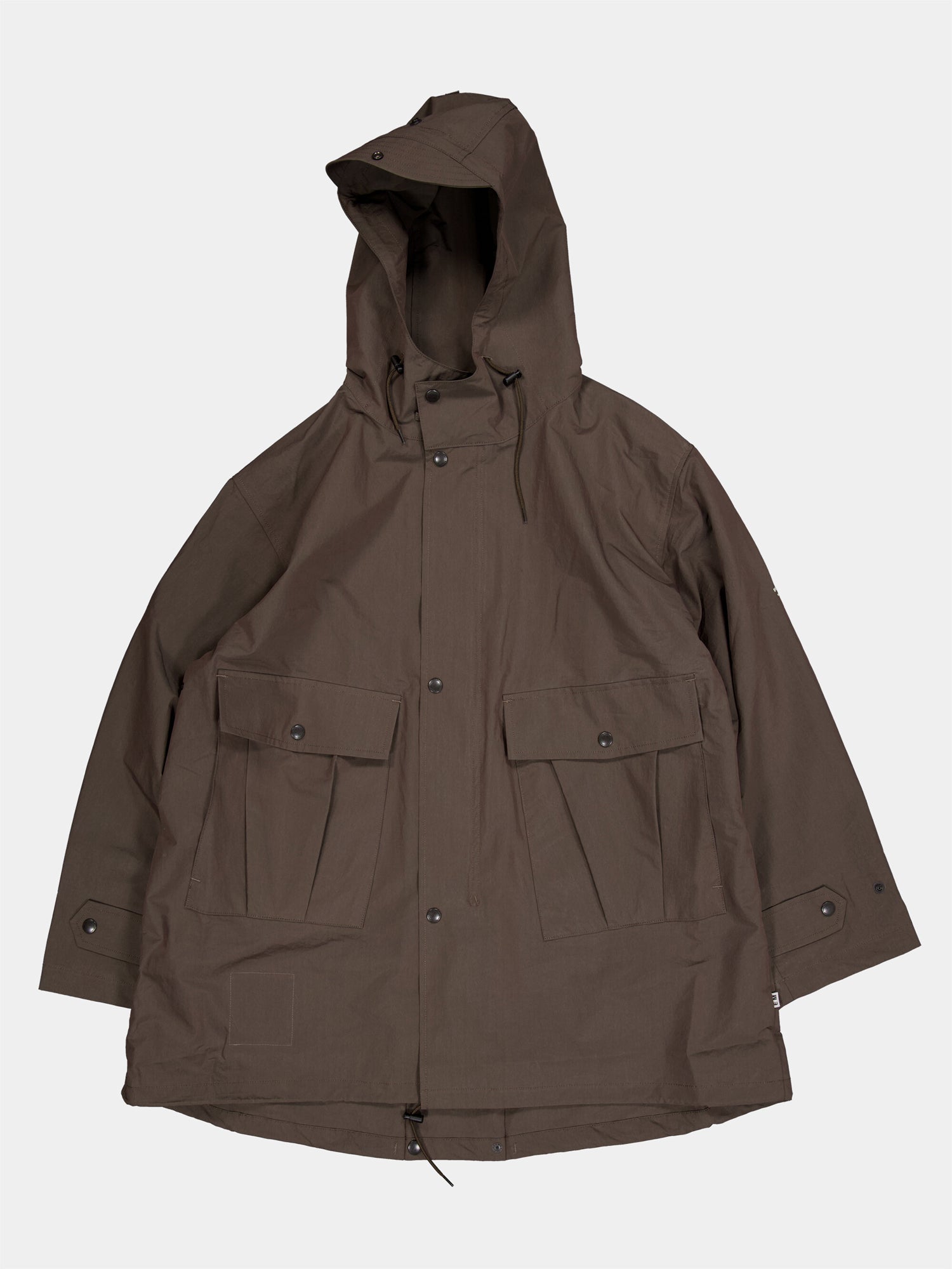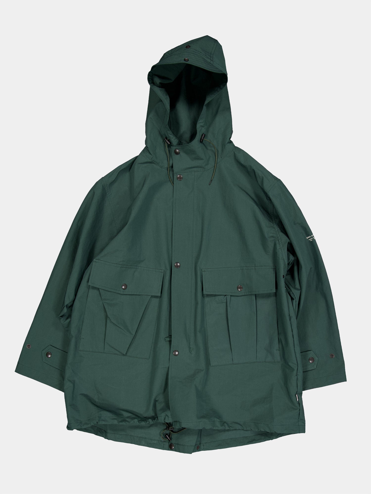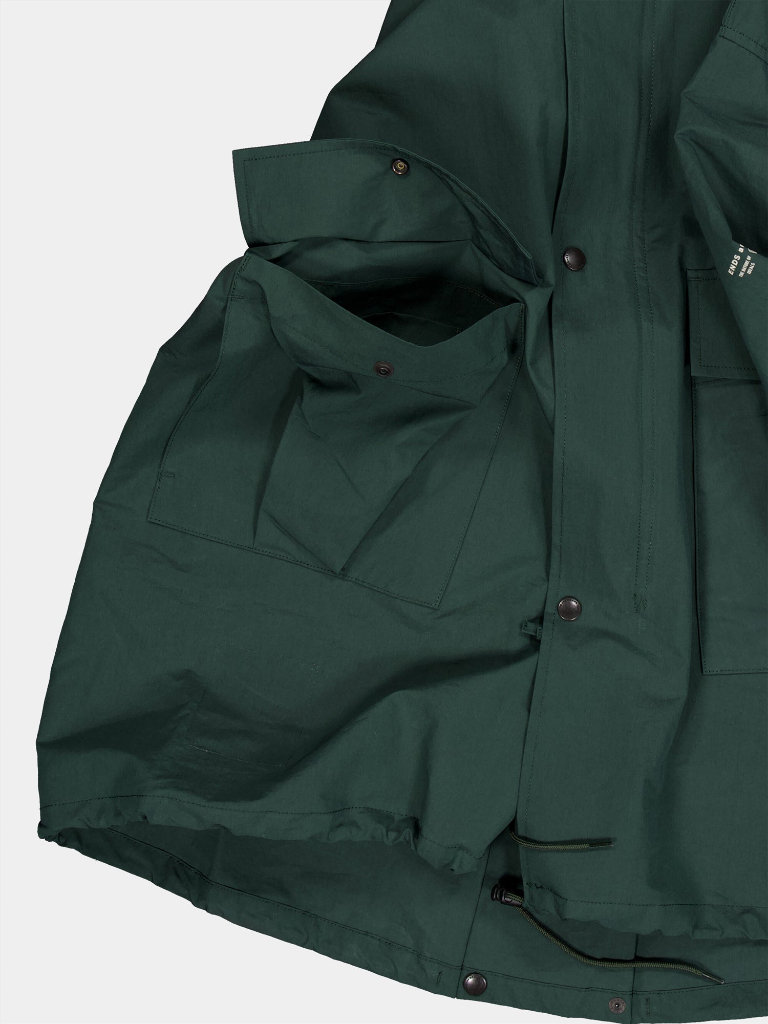 撥水加工したクリスピーな質感の高密度コットンナイロン60/40ウェザー生地を使用したハーフ丈パーカー。