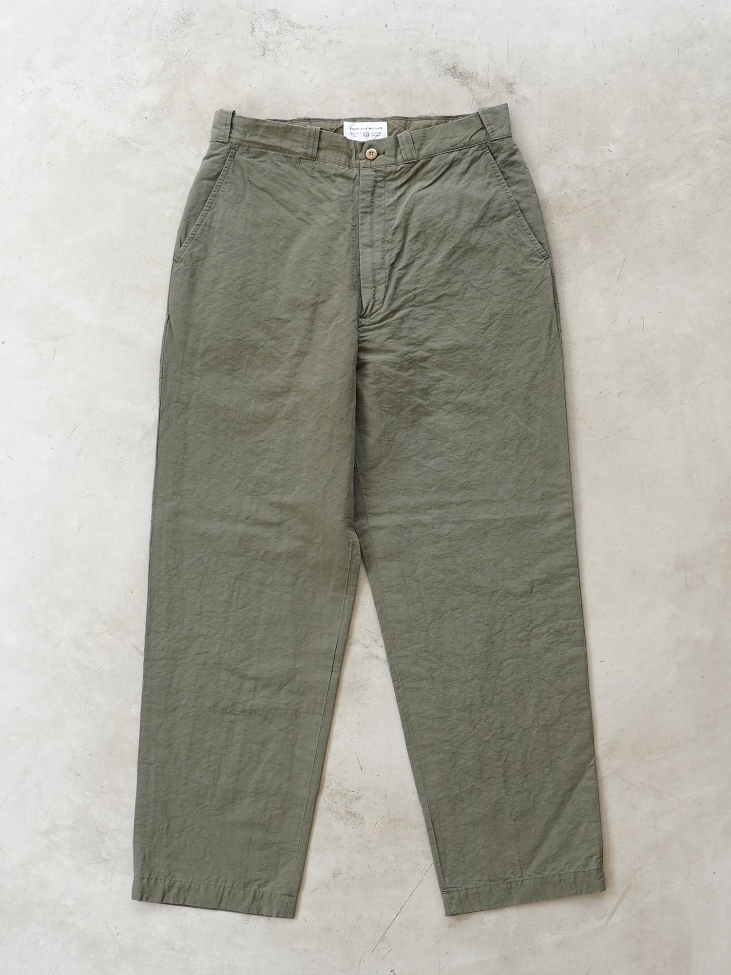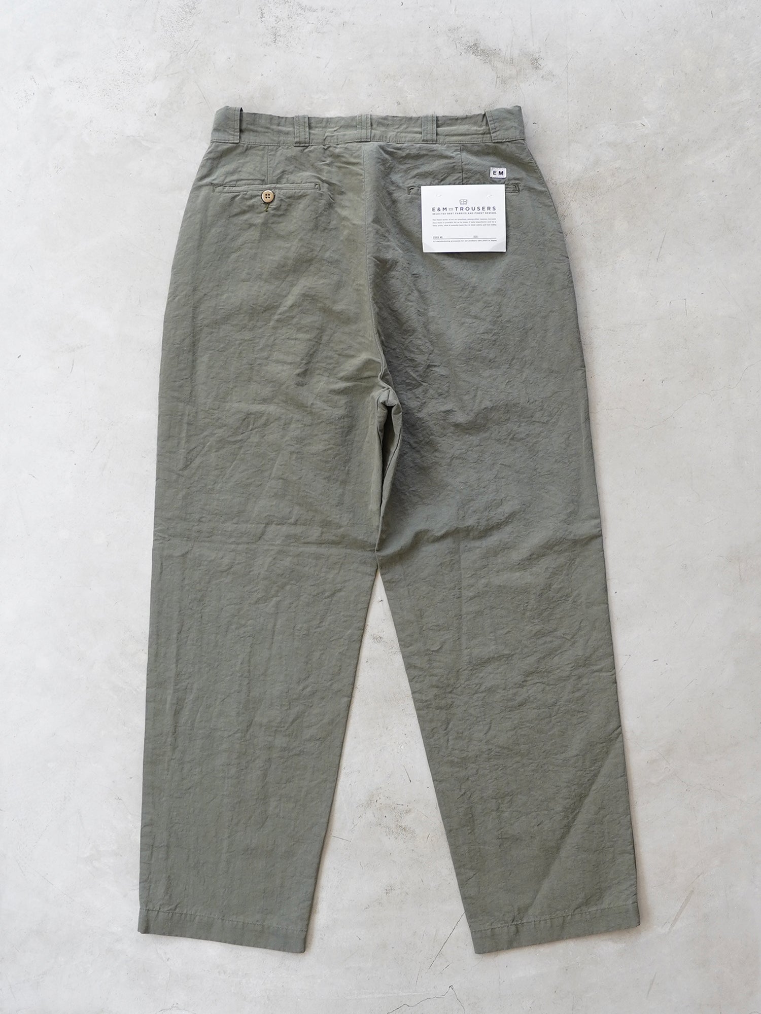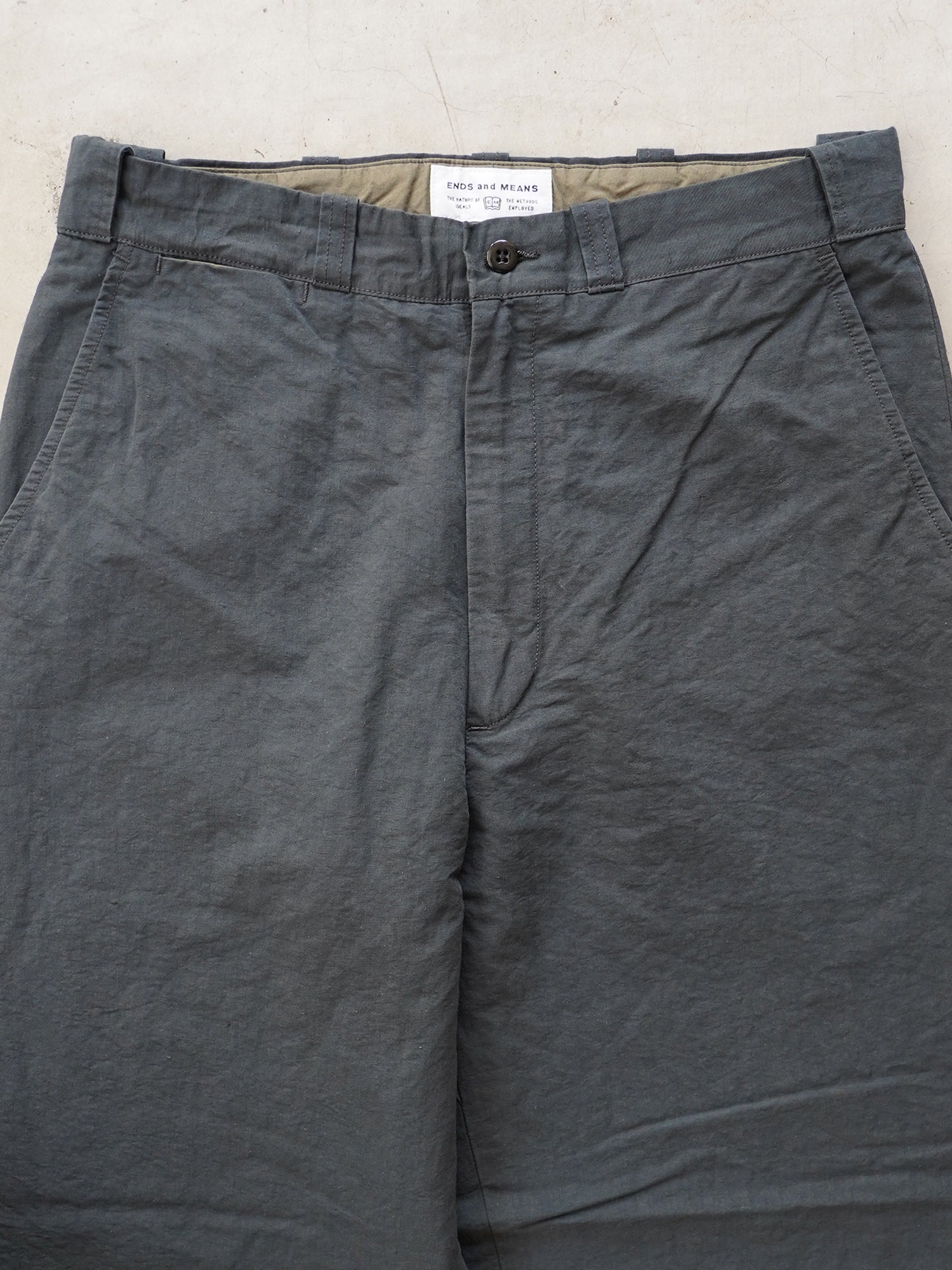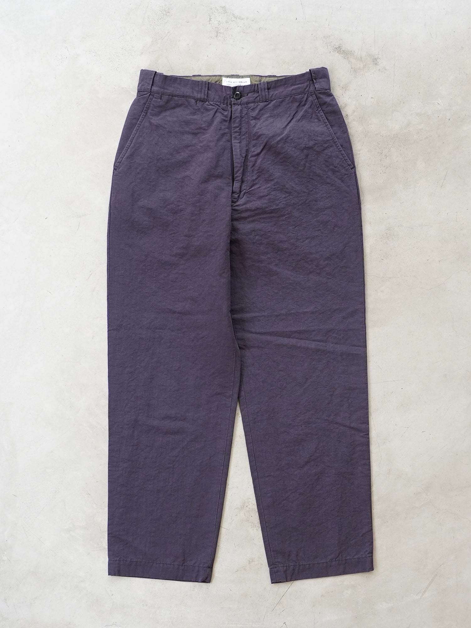 定番Work Chino。春夏バージョンは緯糸にリネン、縦糸にコットン、ナイロンの混紡糸を使用。サラッと風が抜けるような着心地は春夏シーズンにオススメです。若干撥水性もございます。ジップフライ仕様。